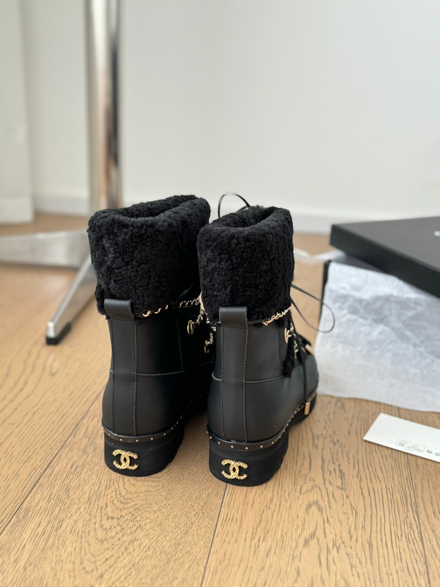 CC CHUNKY SKATEBOARDING BOOTS IN BLACK SMOOTH FLEECE AND CALFSKIN