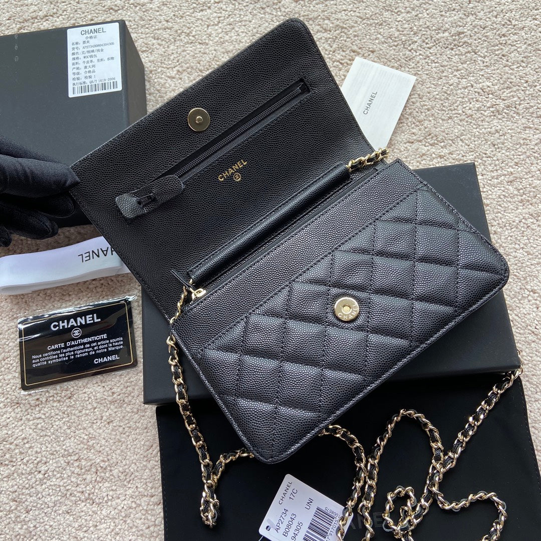CC Classic Woc 20cm Black Grained Calfskin Diamond Gold Hardware