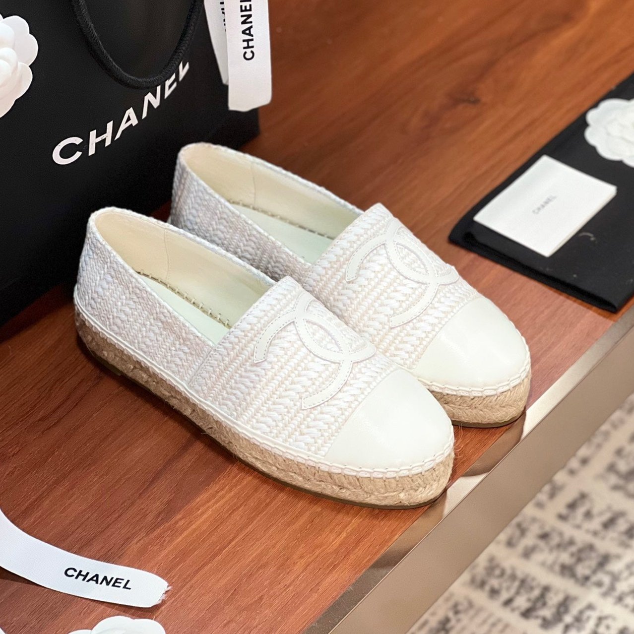 cc espadrilles white woolen cloth white lambskin