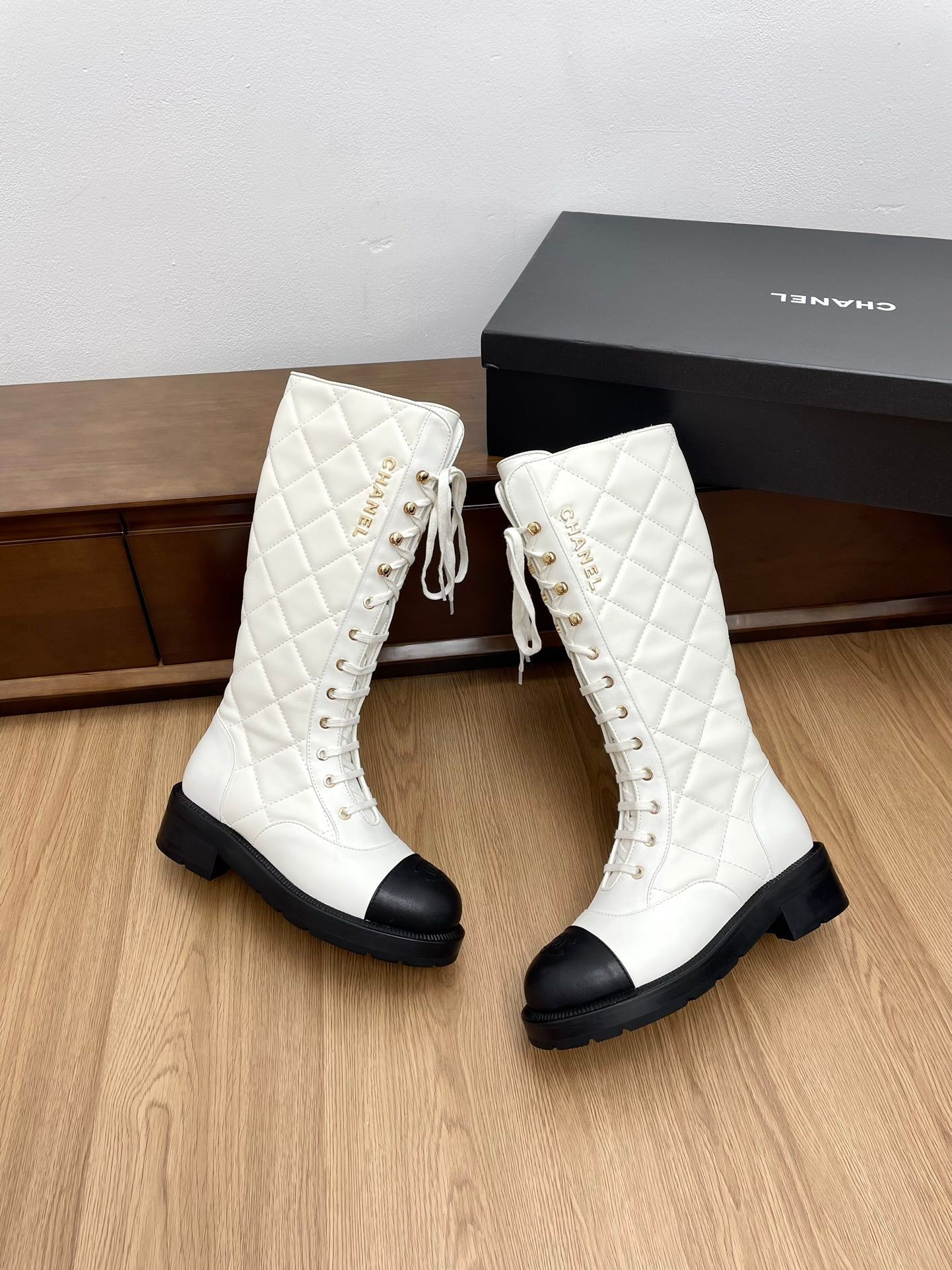 CC High Boots White Quilted Cowhide