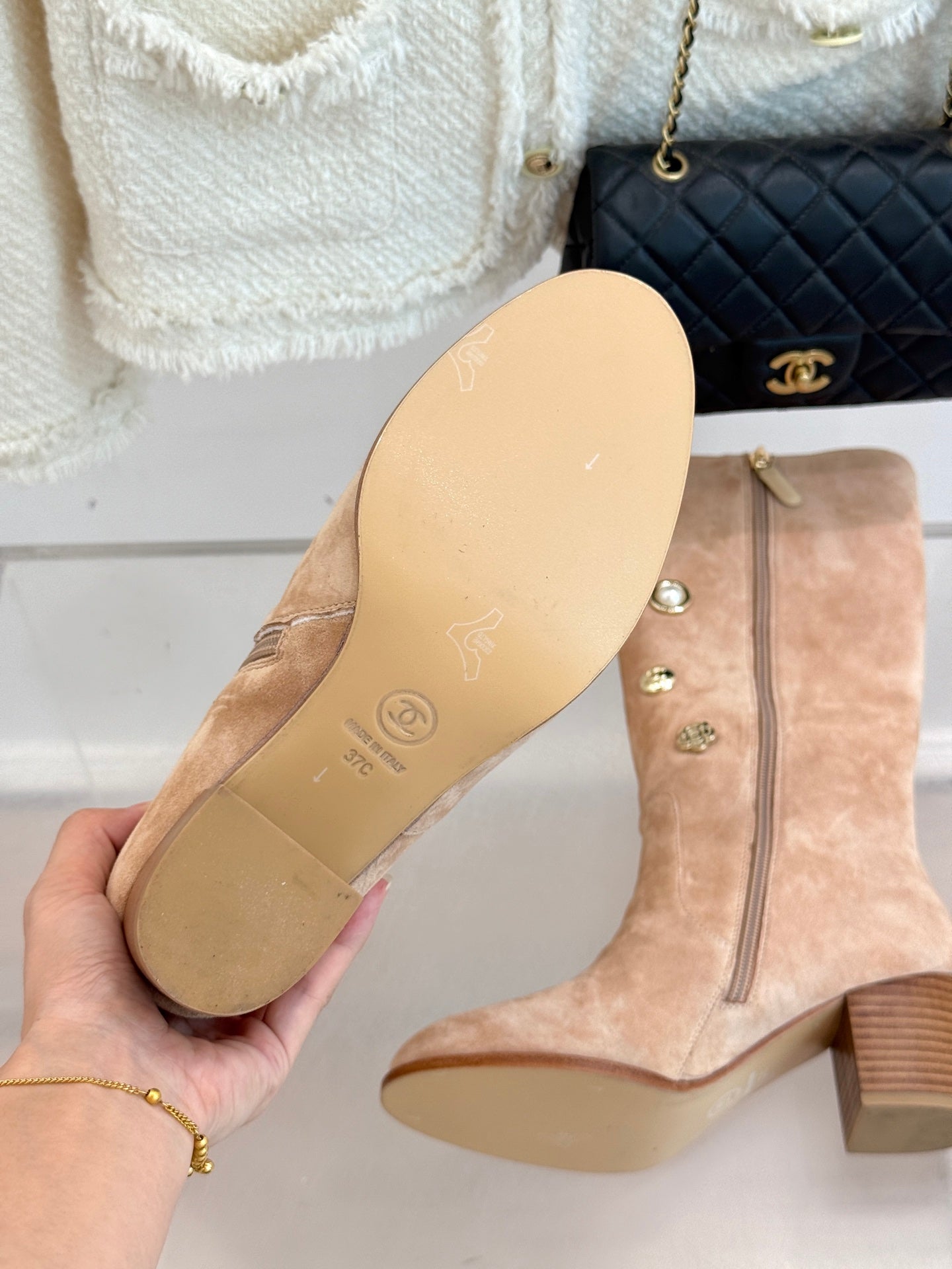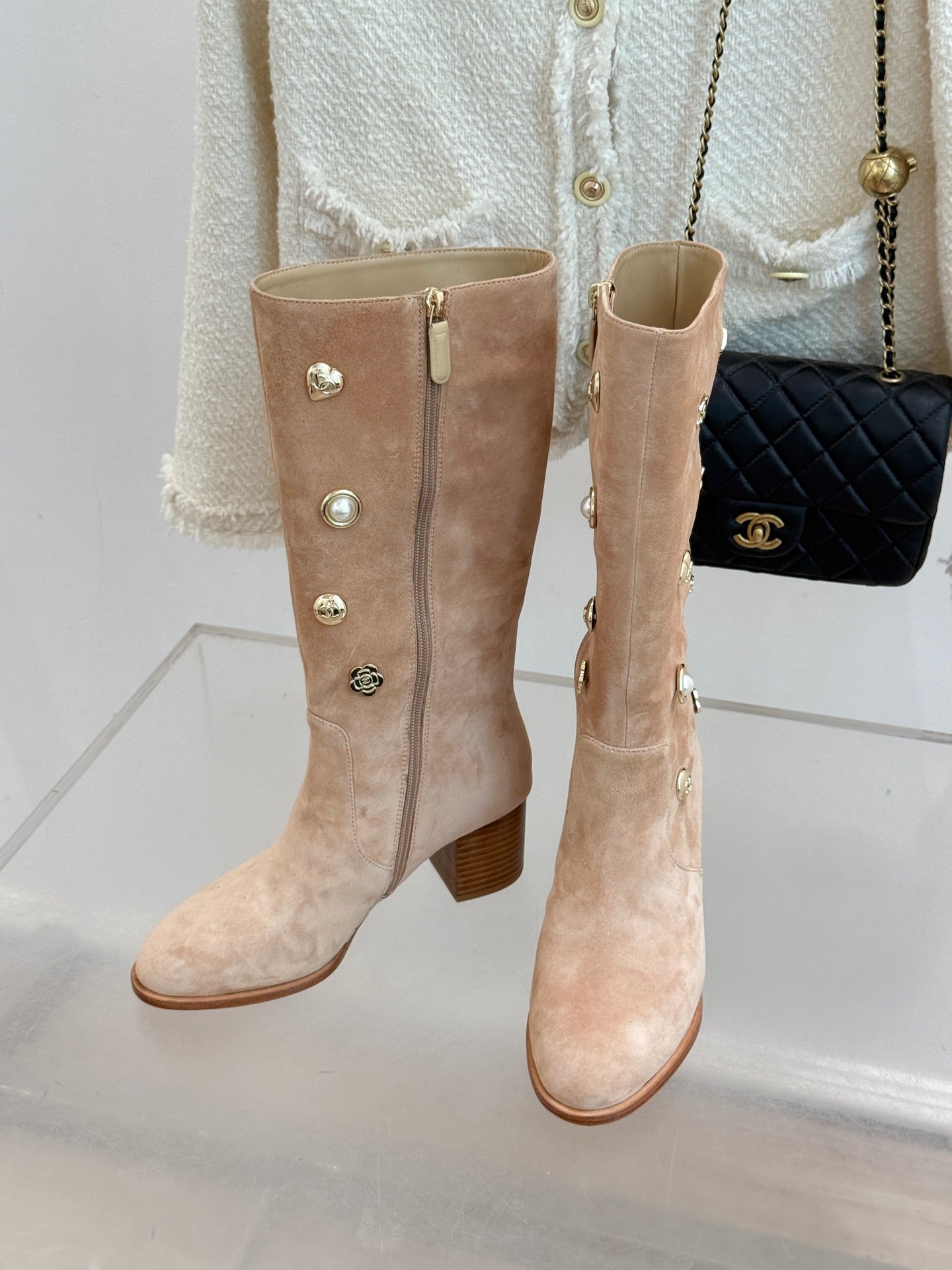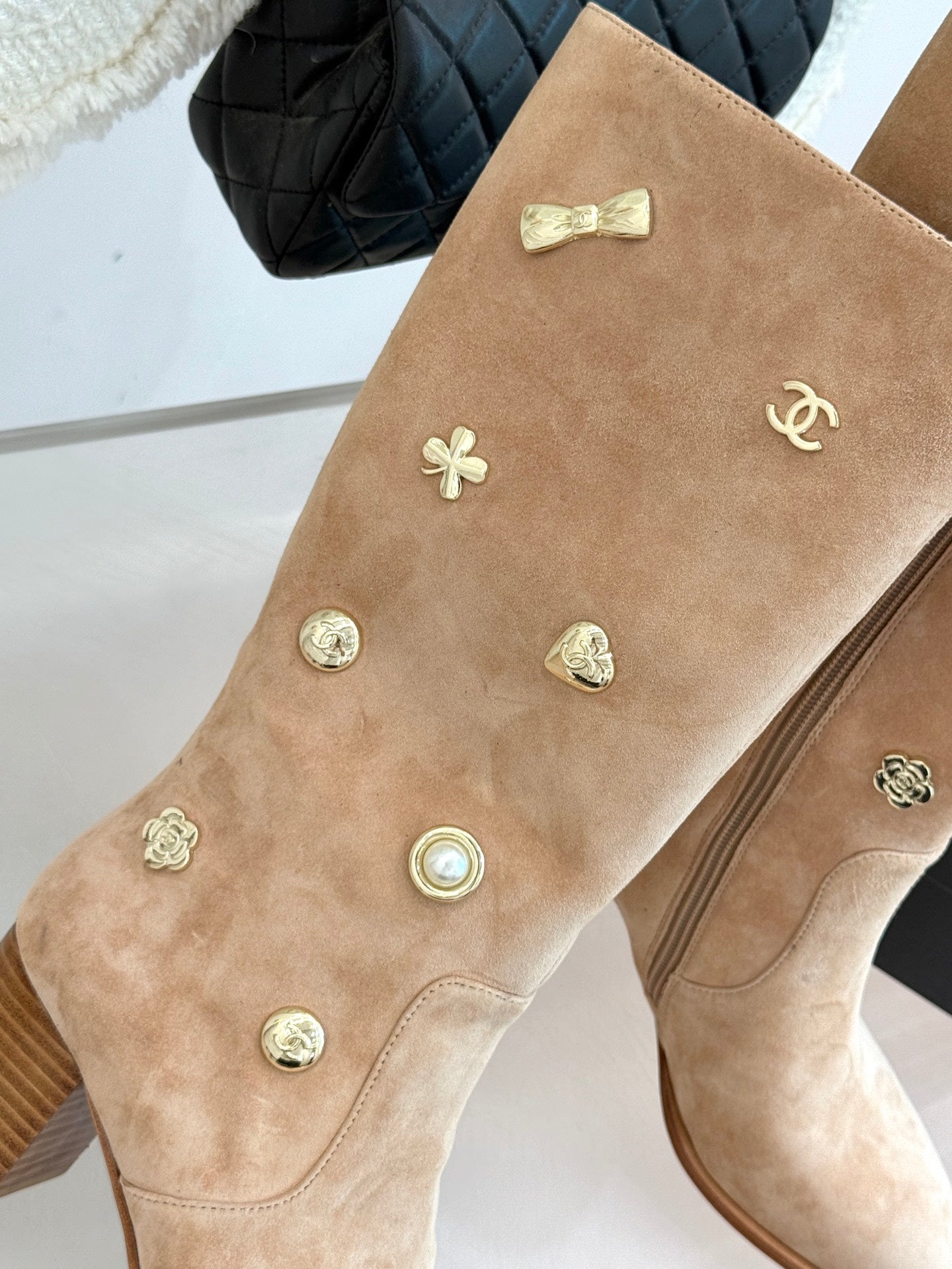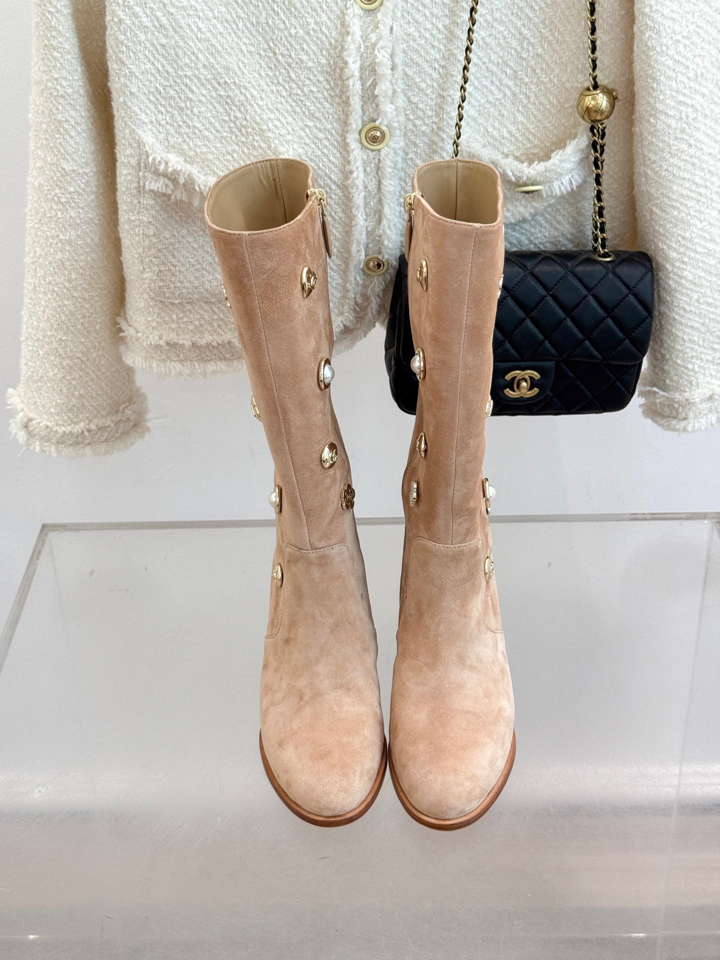CC High Heel Boots Beige Suede Mix Charm 512033