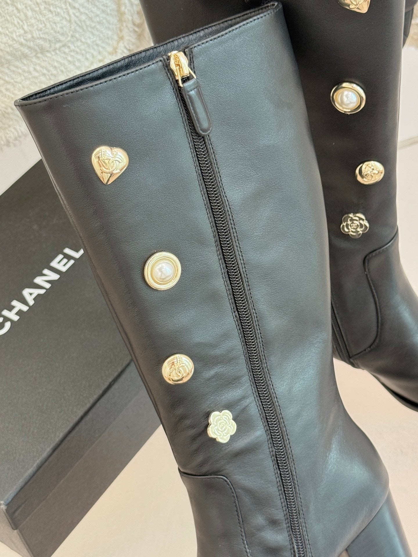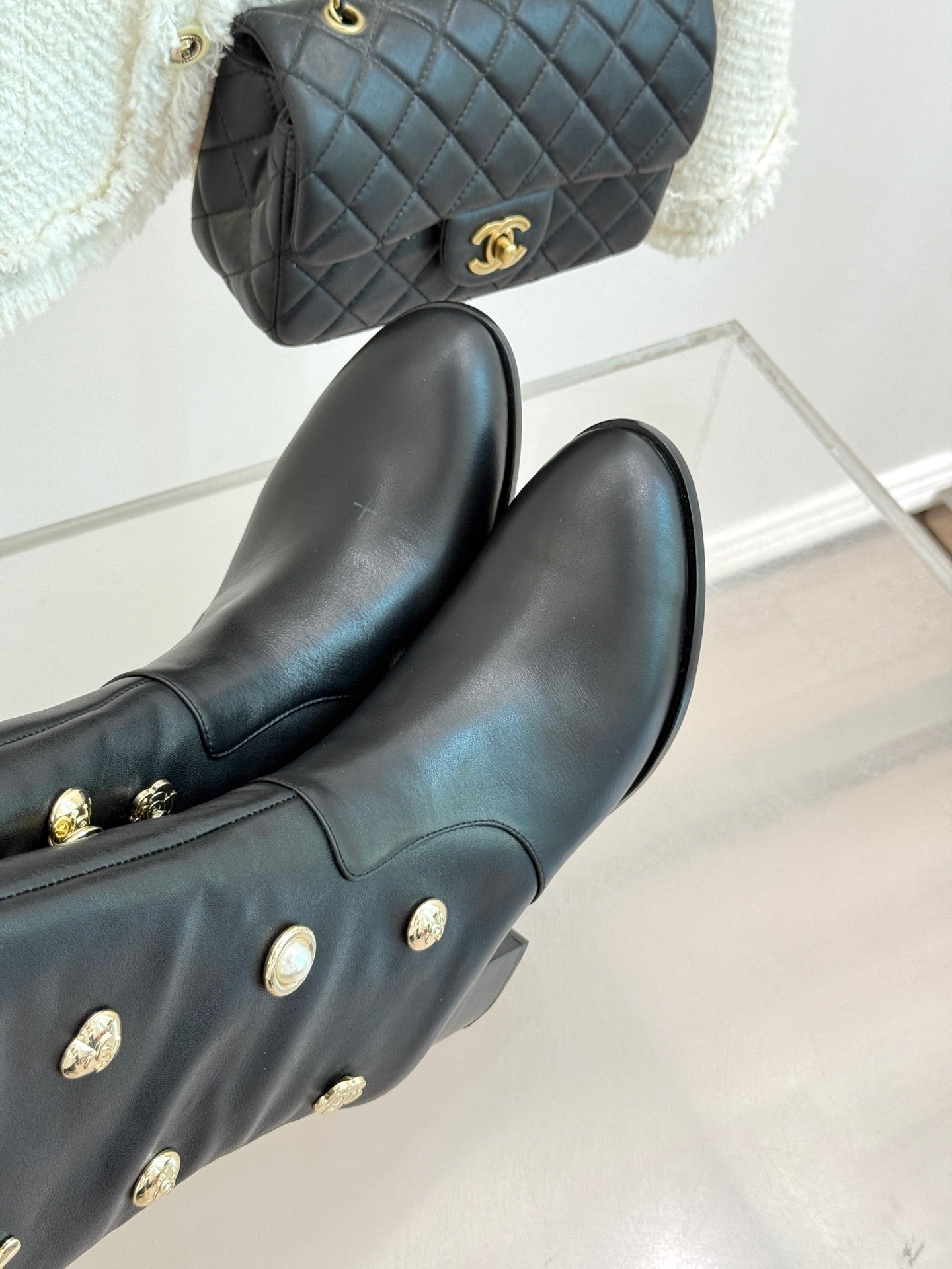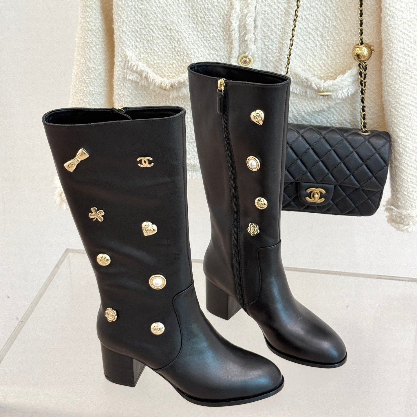 CC High Heel Boots Black Sheepskin Mix Charm 512034