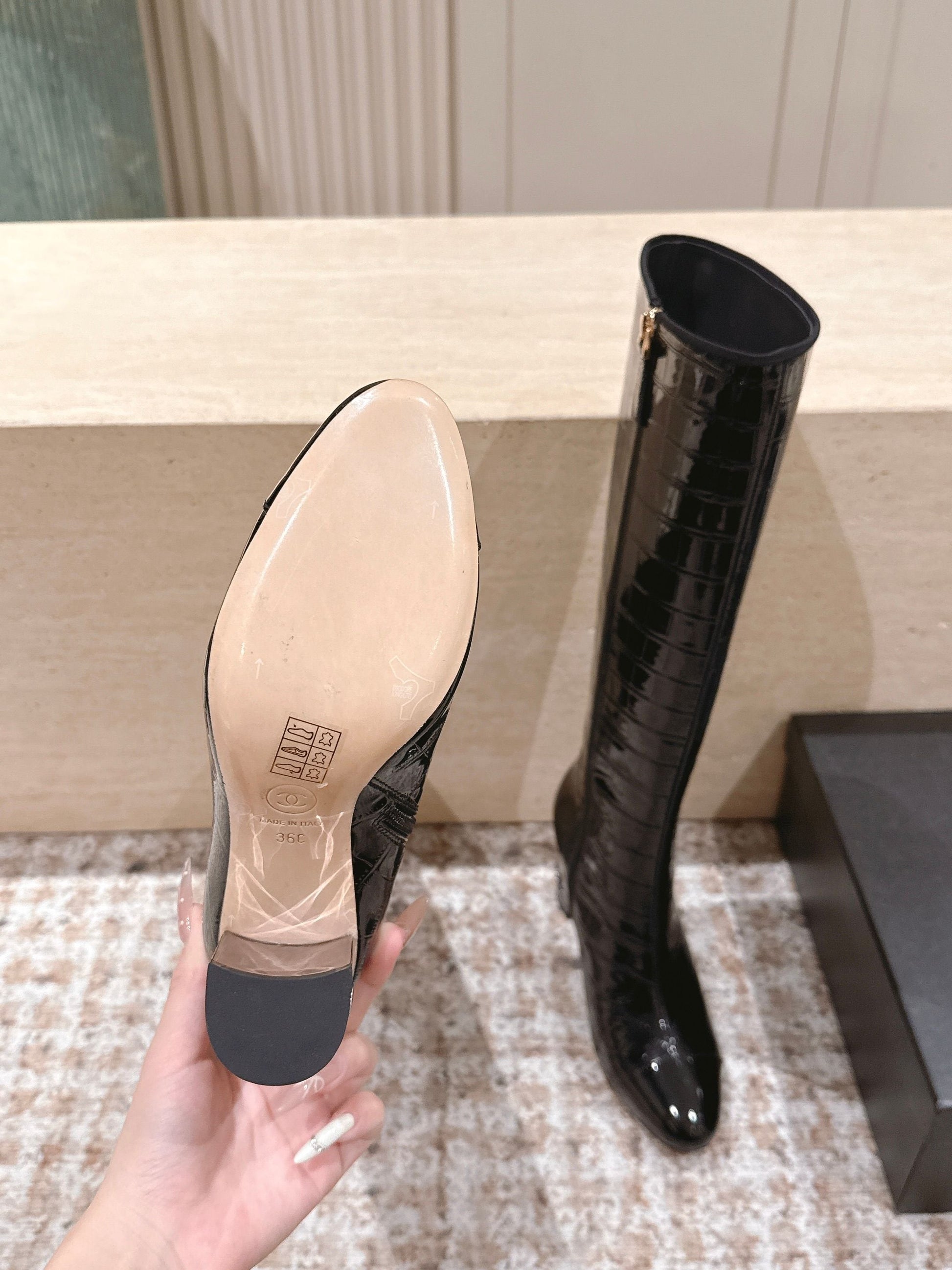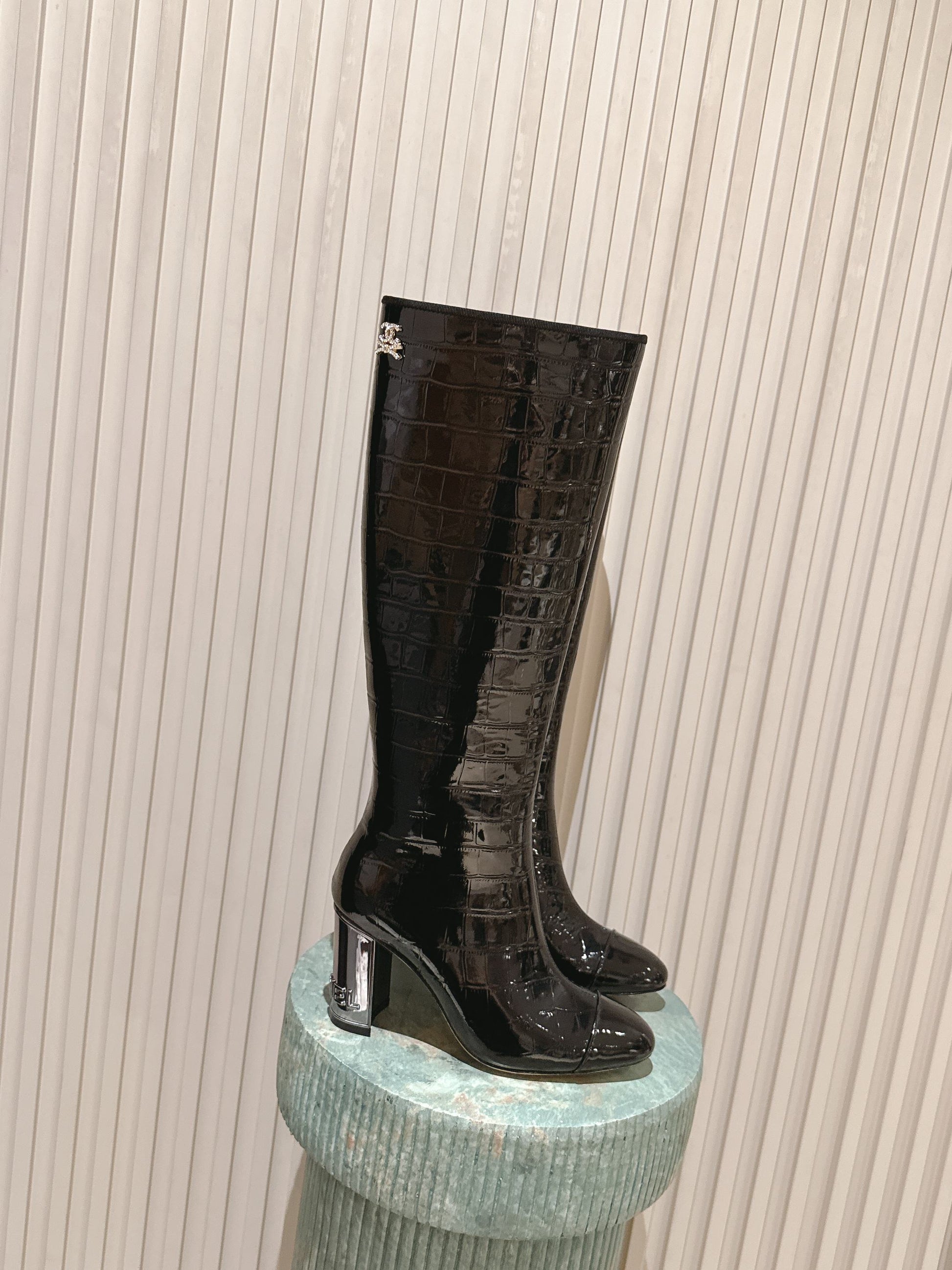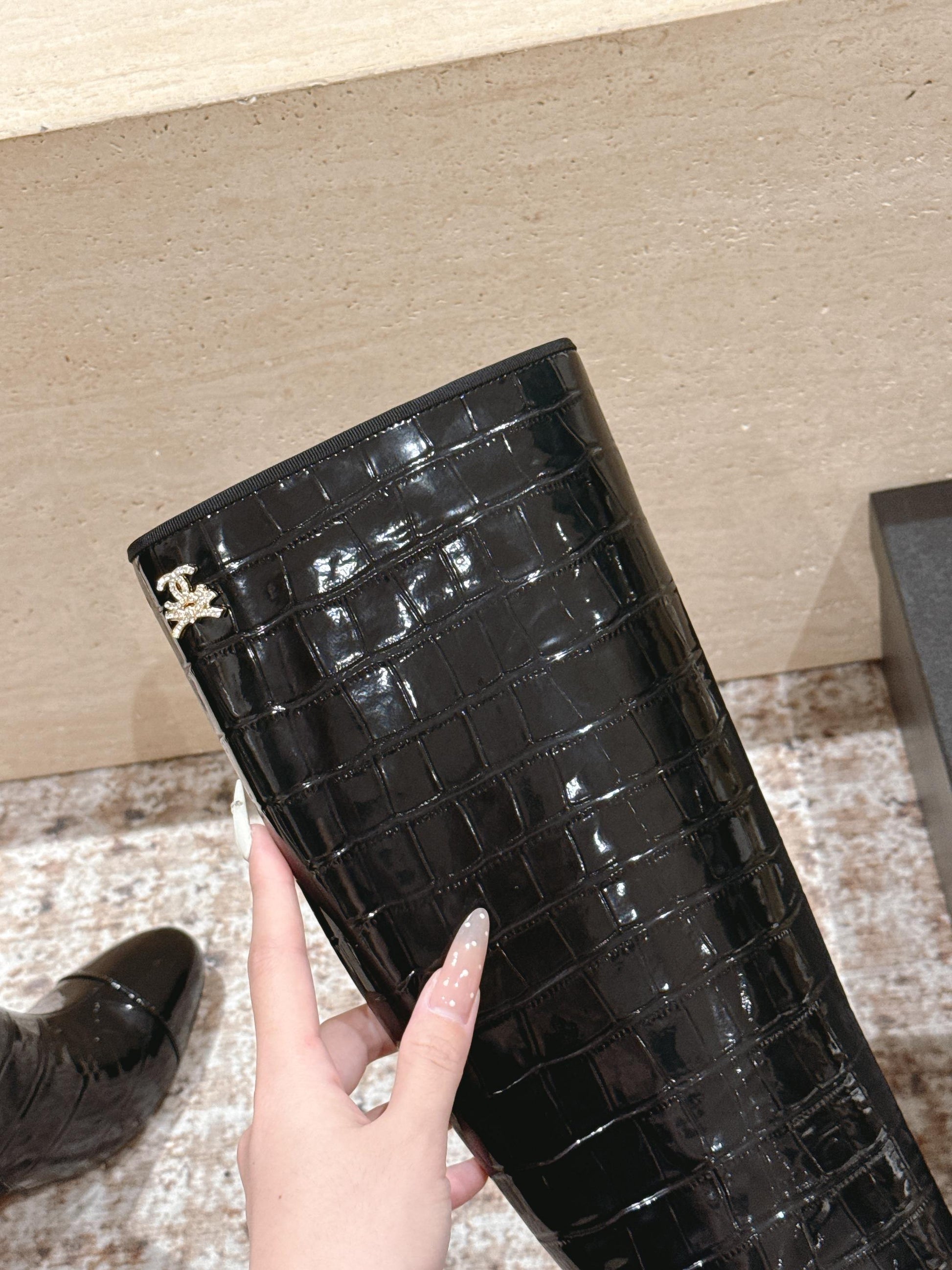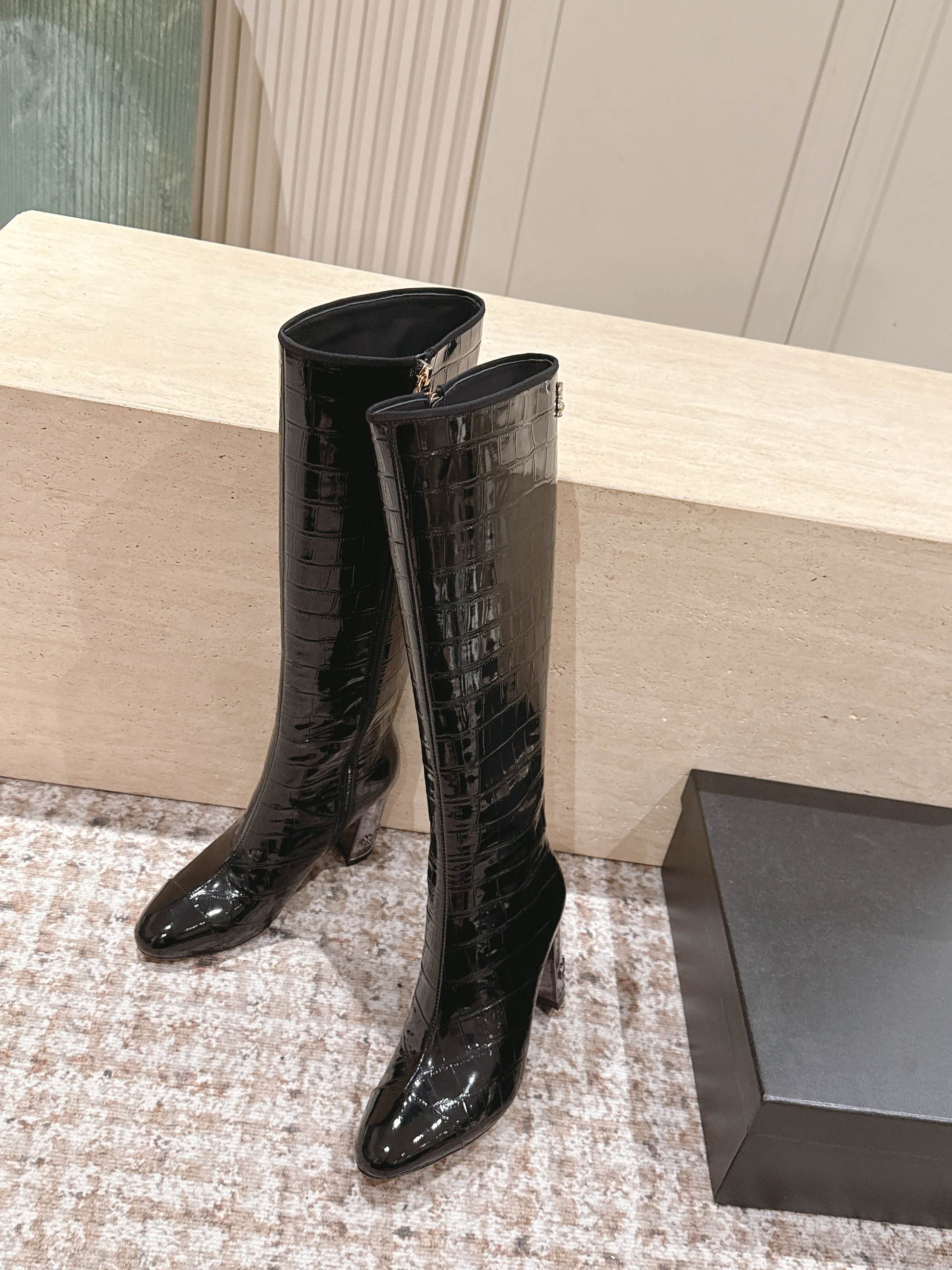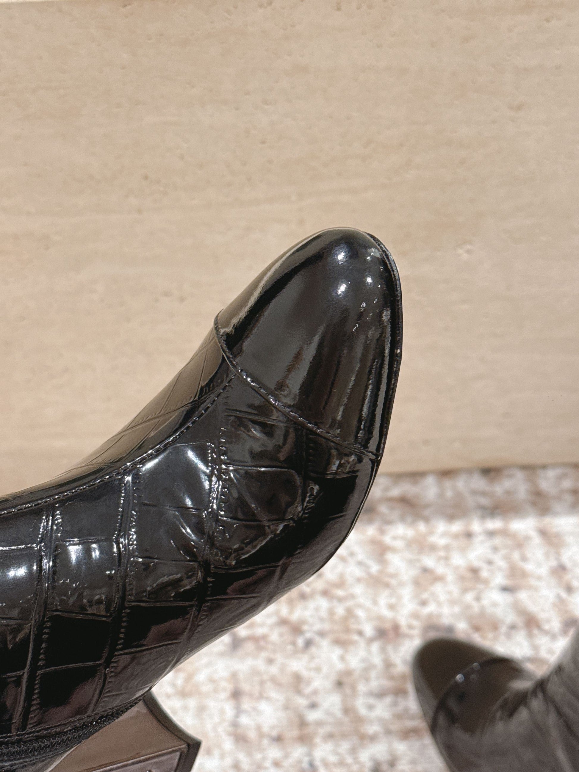 CC high-heeled boots black patent calfskin 532833