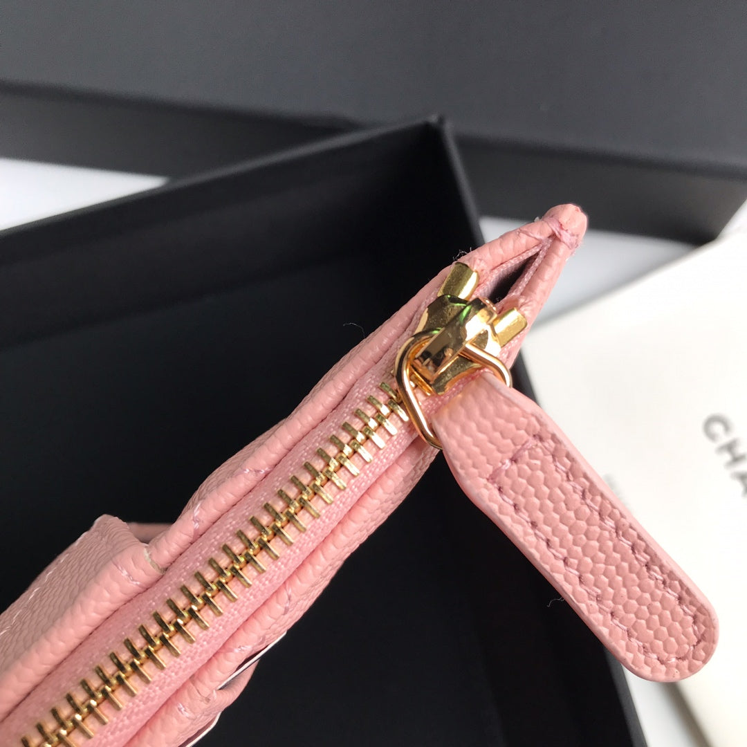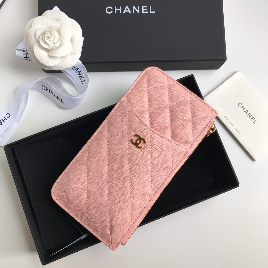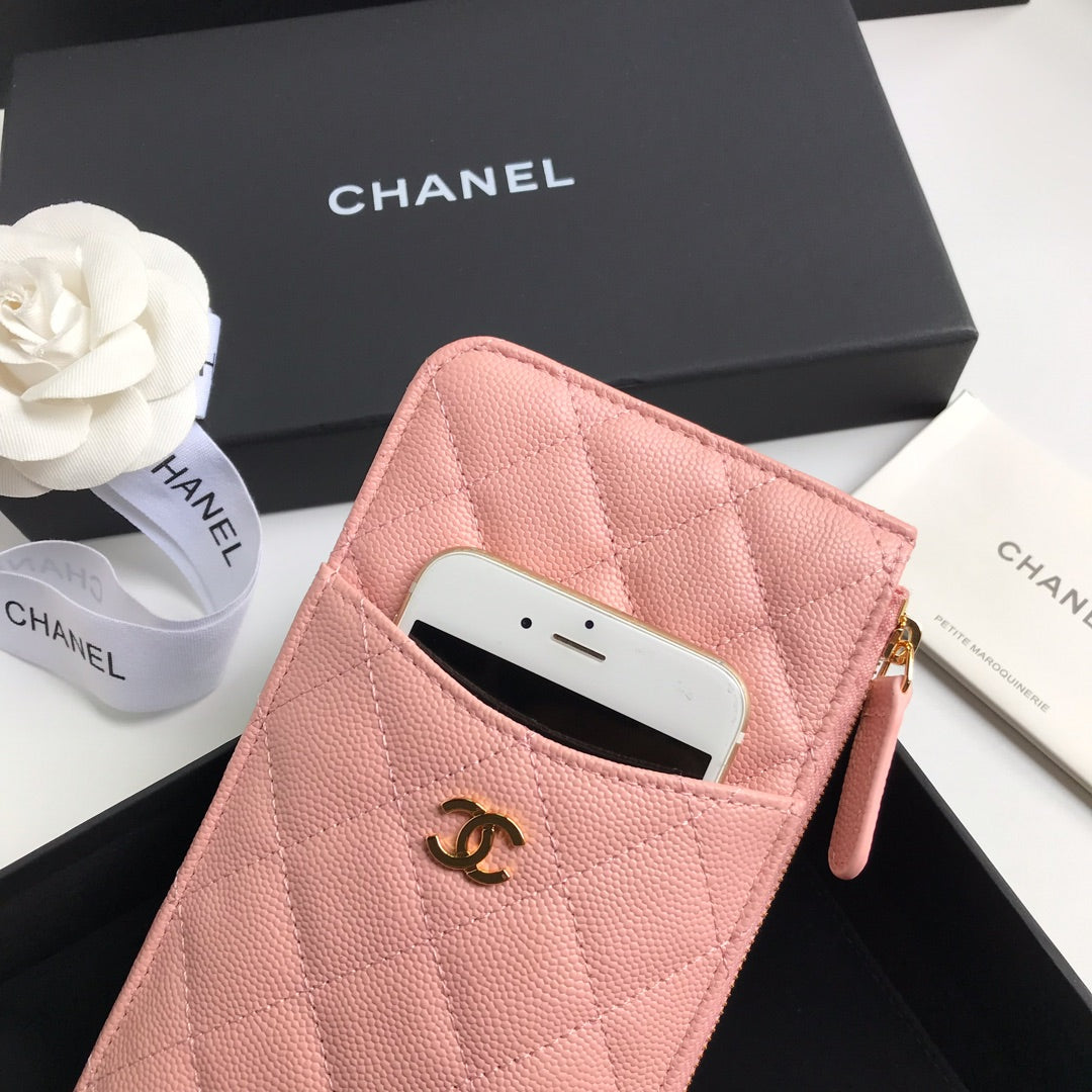 CC MOBILE PURSE 19.5 PEACH GRAINED CALFSKIN GOLD ICON