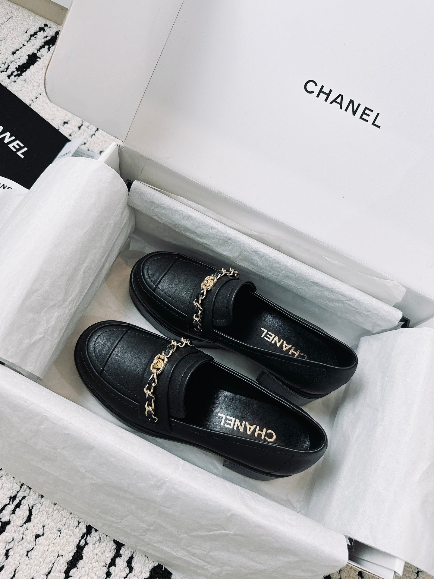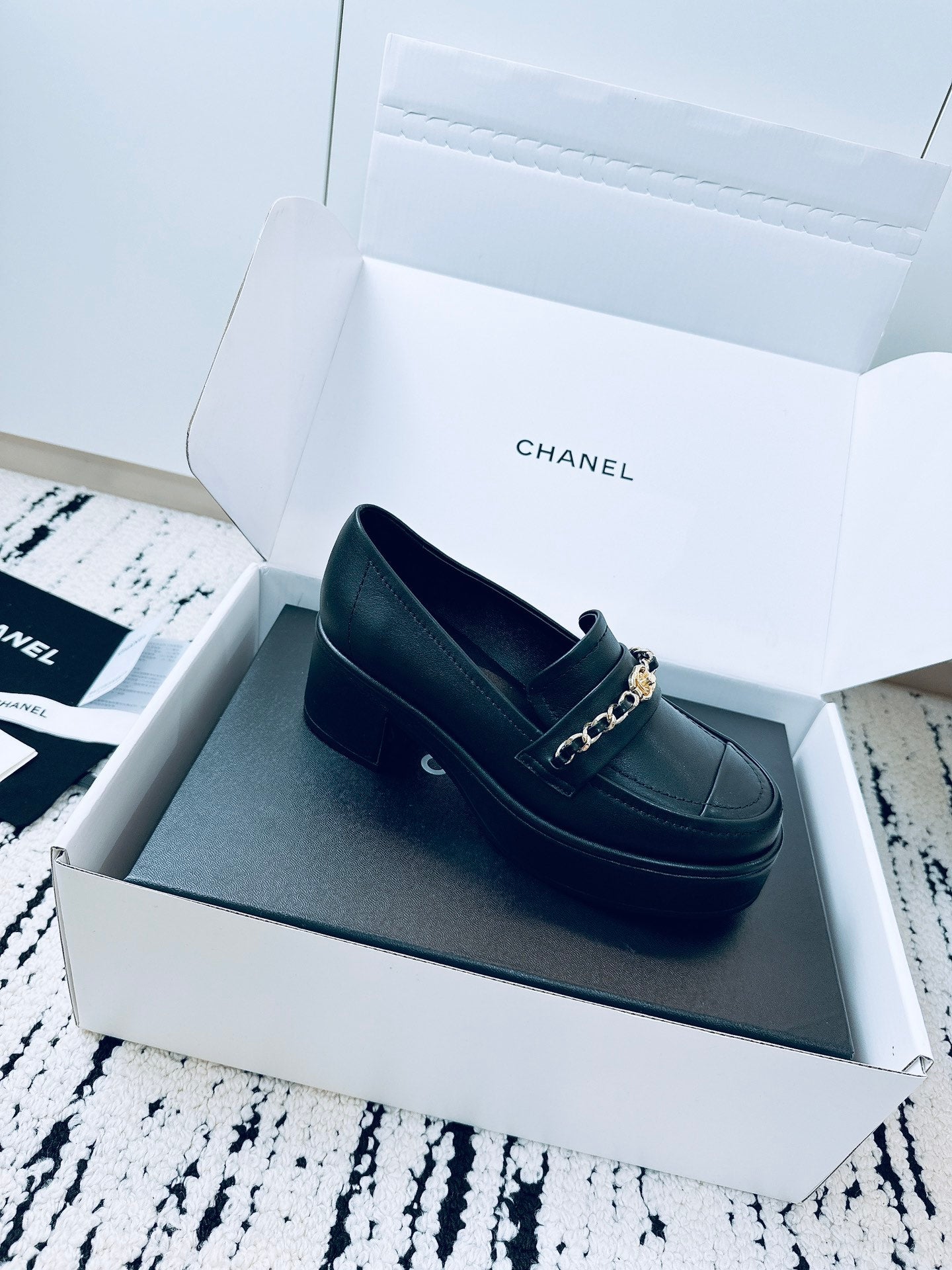 CC Moccasins 55mm In Black Lambskin With Chain 144479