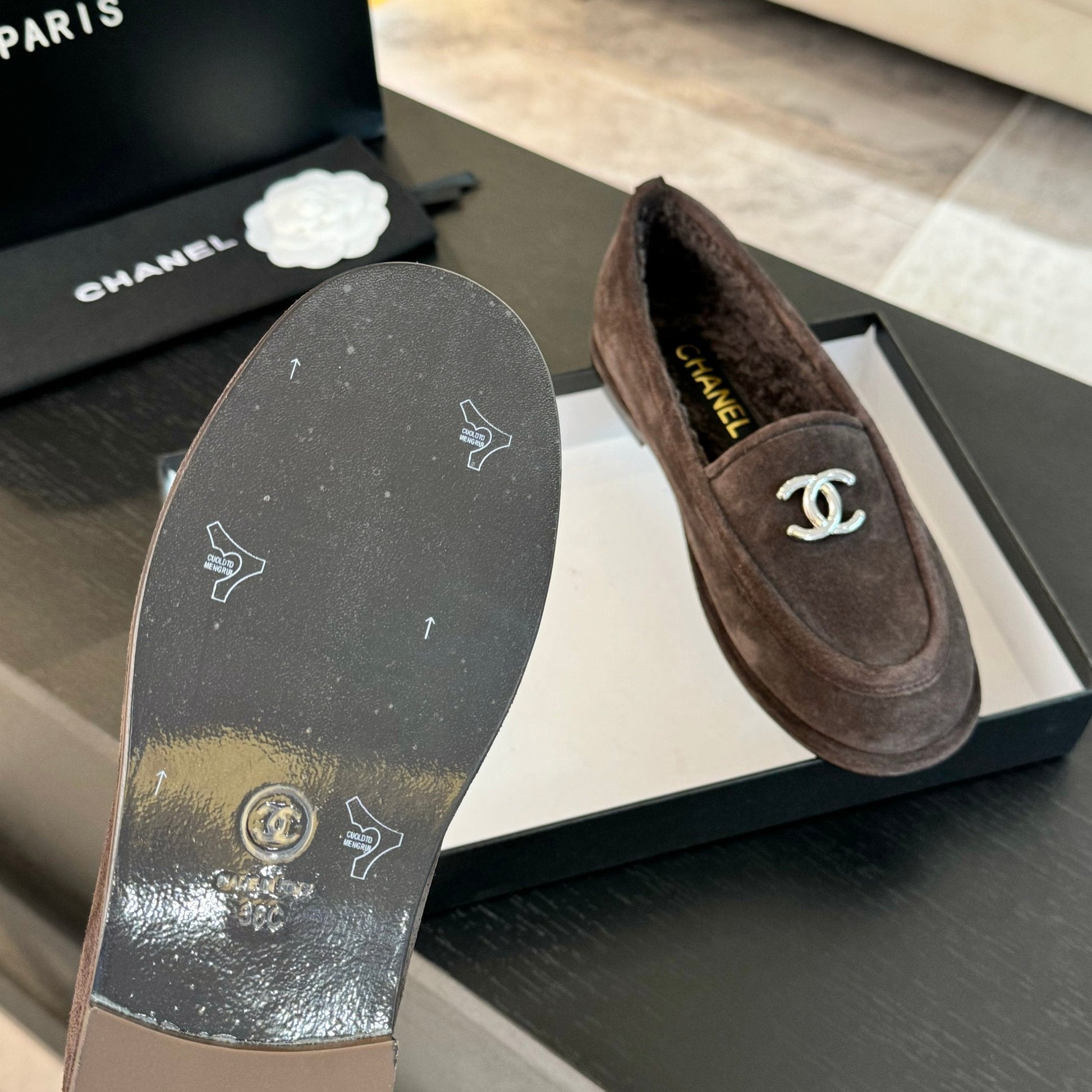 CC Moccasins Gray Brown Suede And Wool