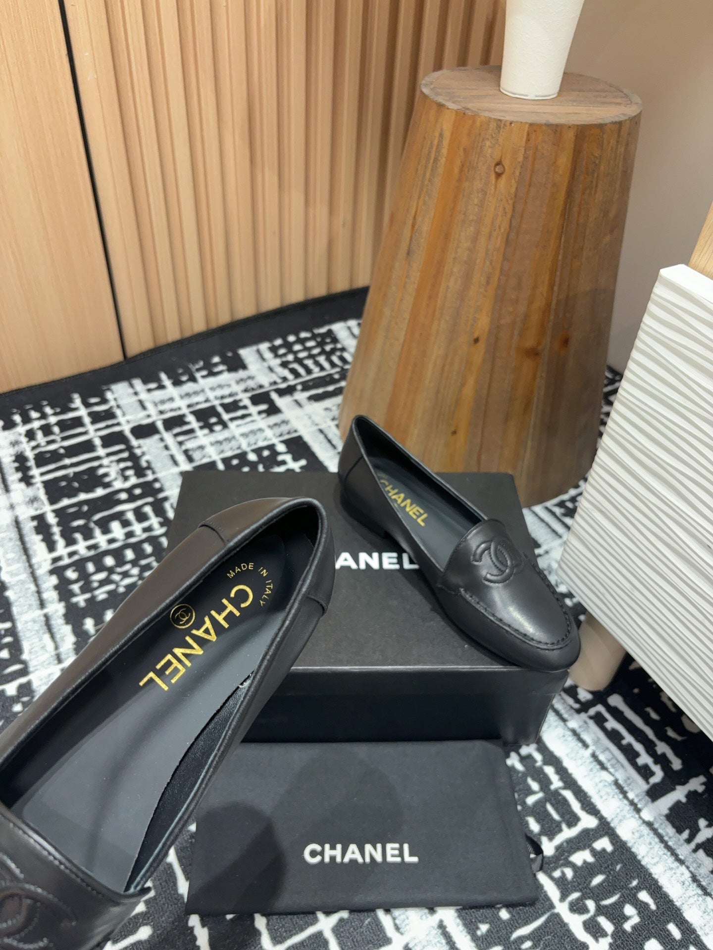 CC Moccasins Plain Black Lambskin