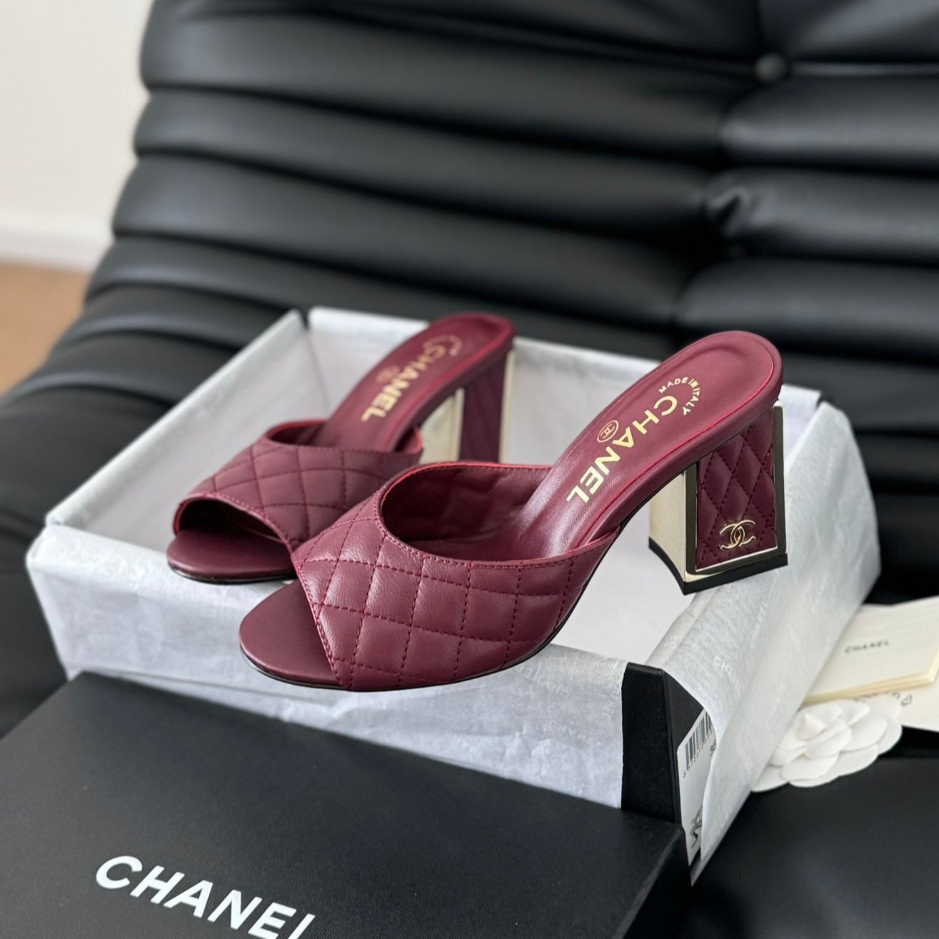 cc sandal 70 burgundy quilted calfskin