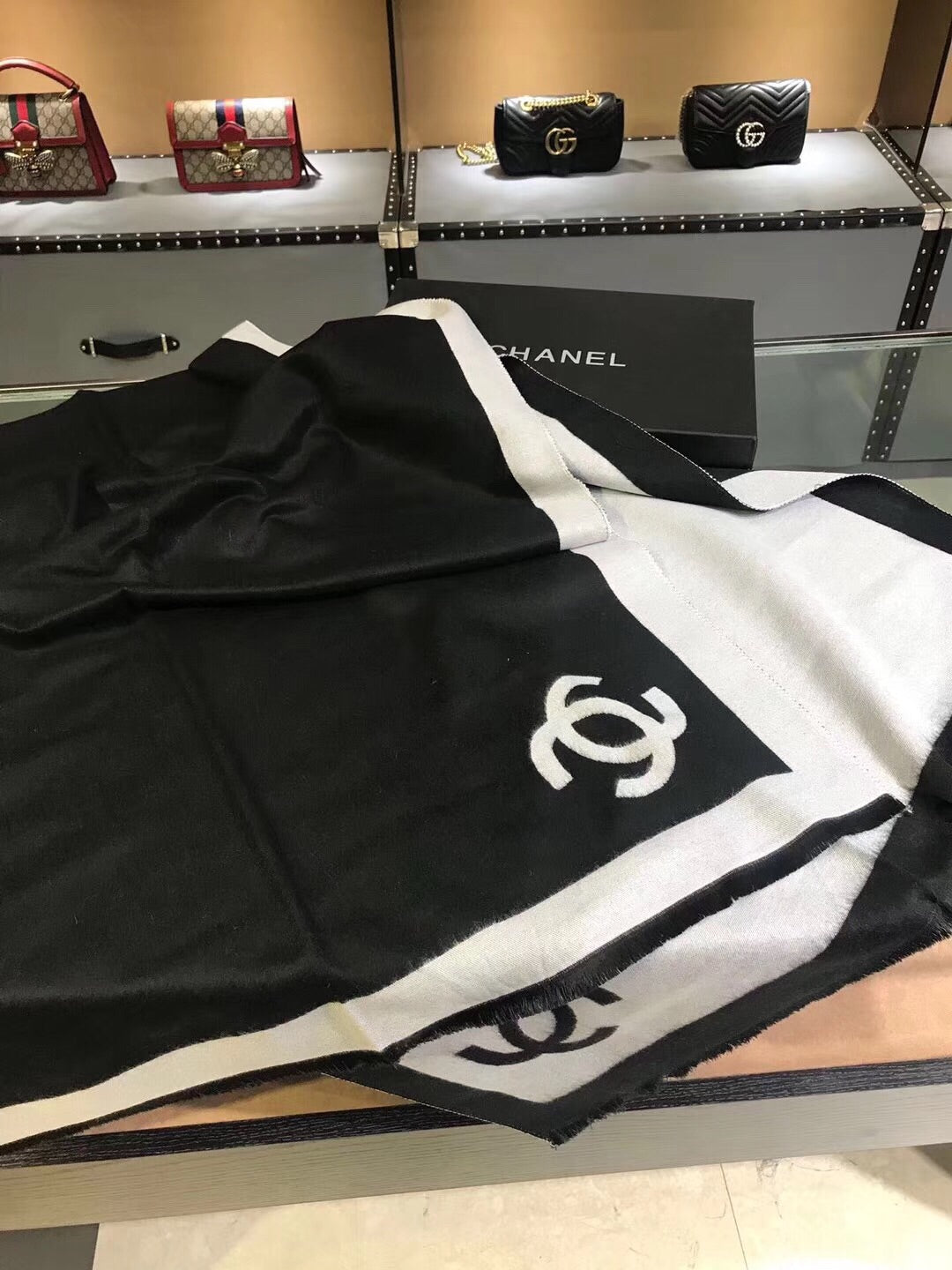 CC Scarf 180 CM In Black Mix White Cashmere 360523