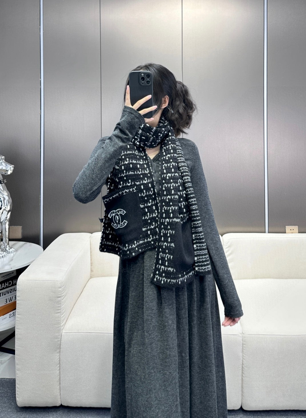 CC Scarf 180 CM In Black White Cashmere 421359
