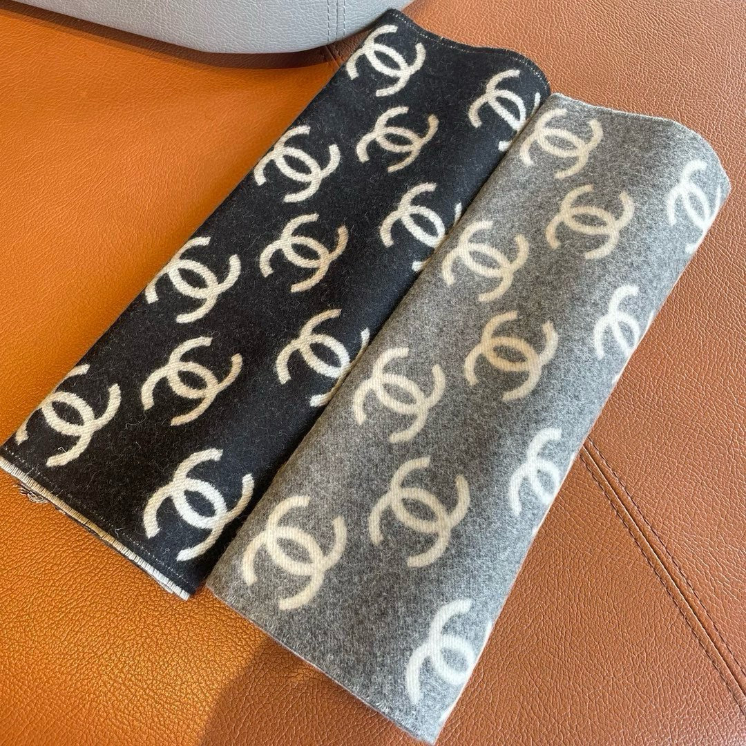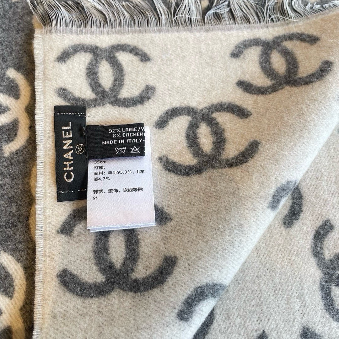 CC Scarf 180 CM In Grey Mix White Print Logo Cashmere And Wool 413632