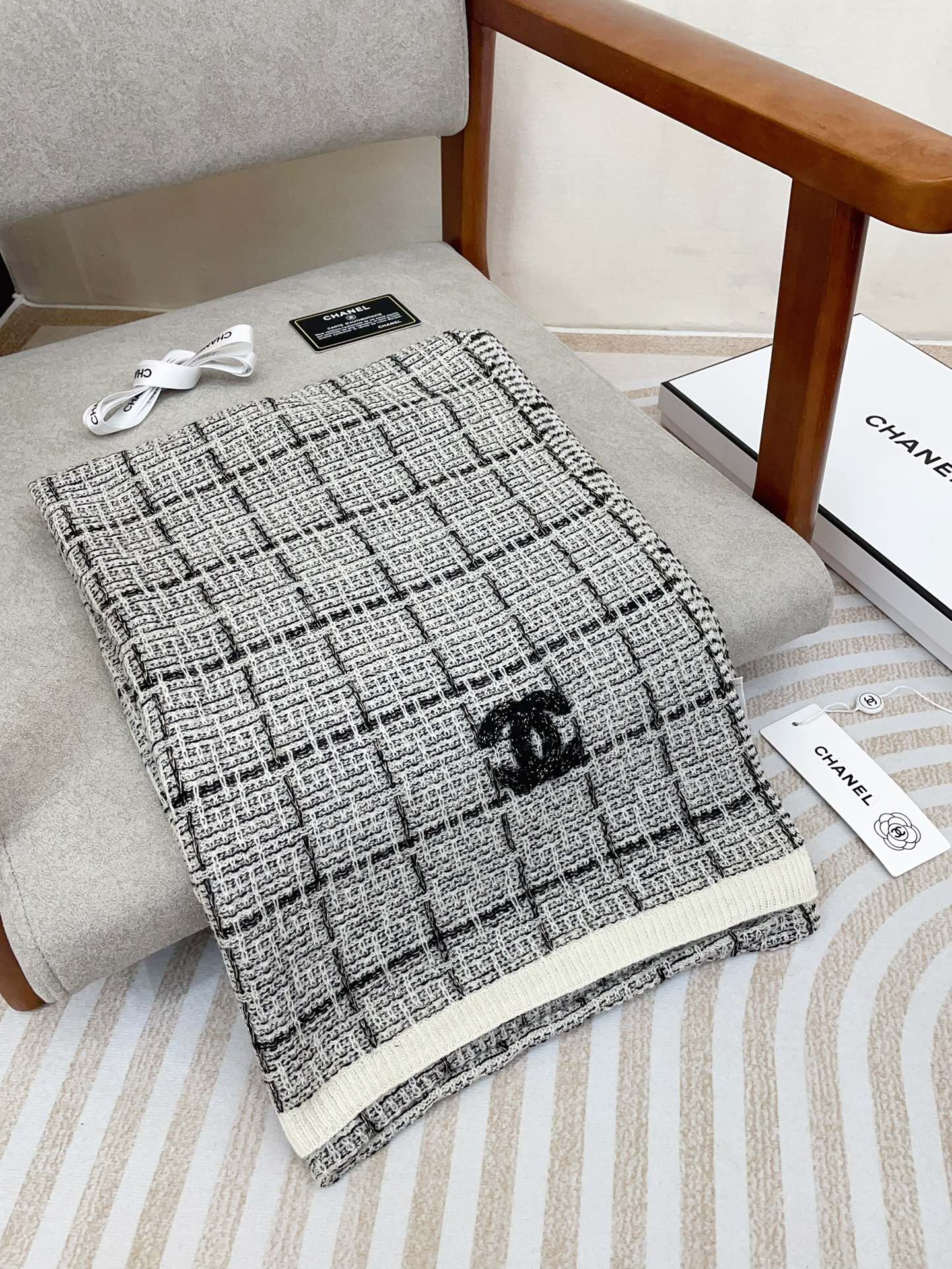 CC Scarf 180 CM In Grey With Black Stripes Cashmere 415180