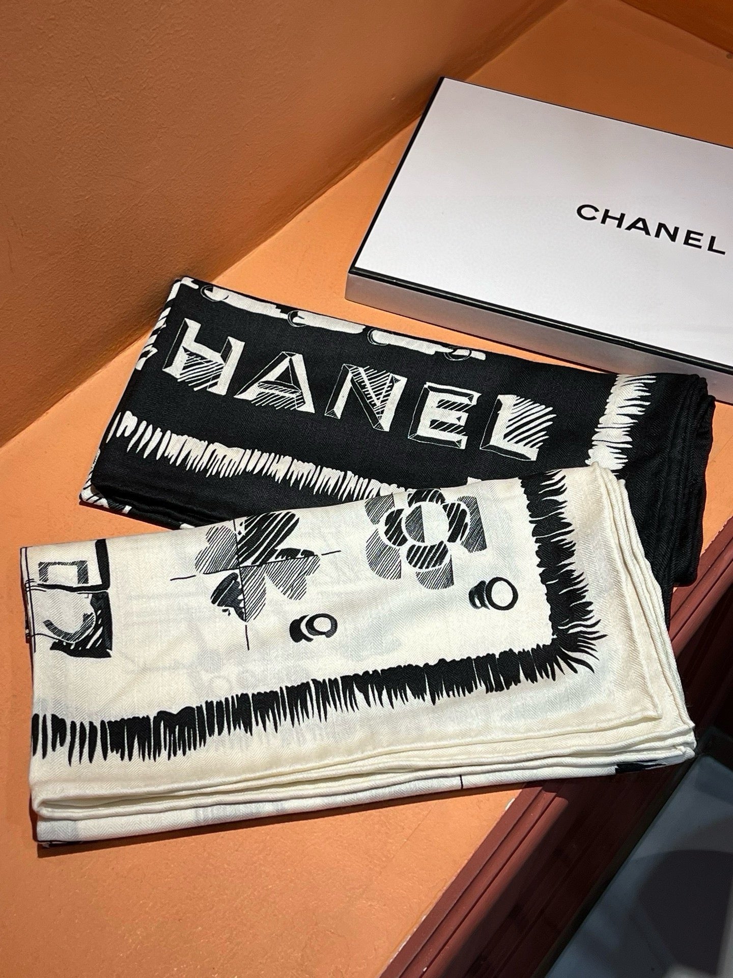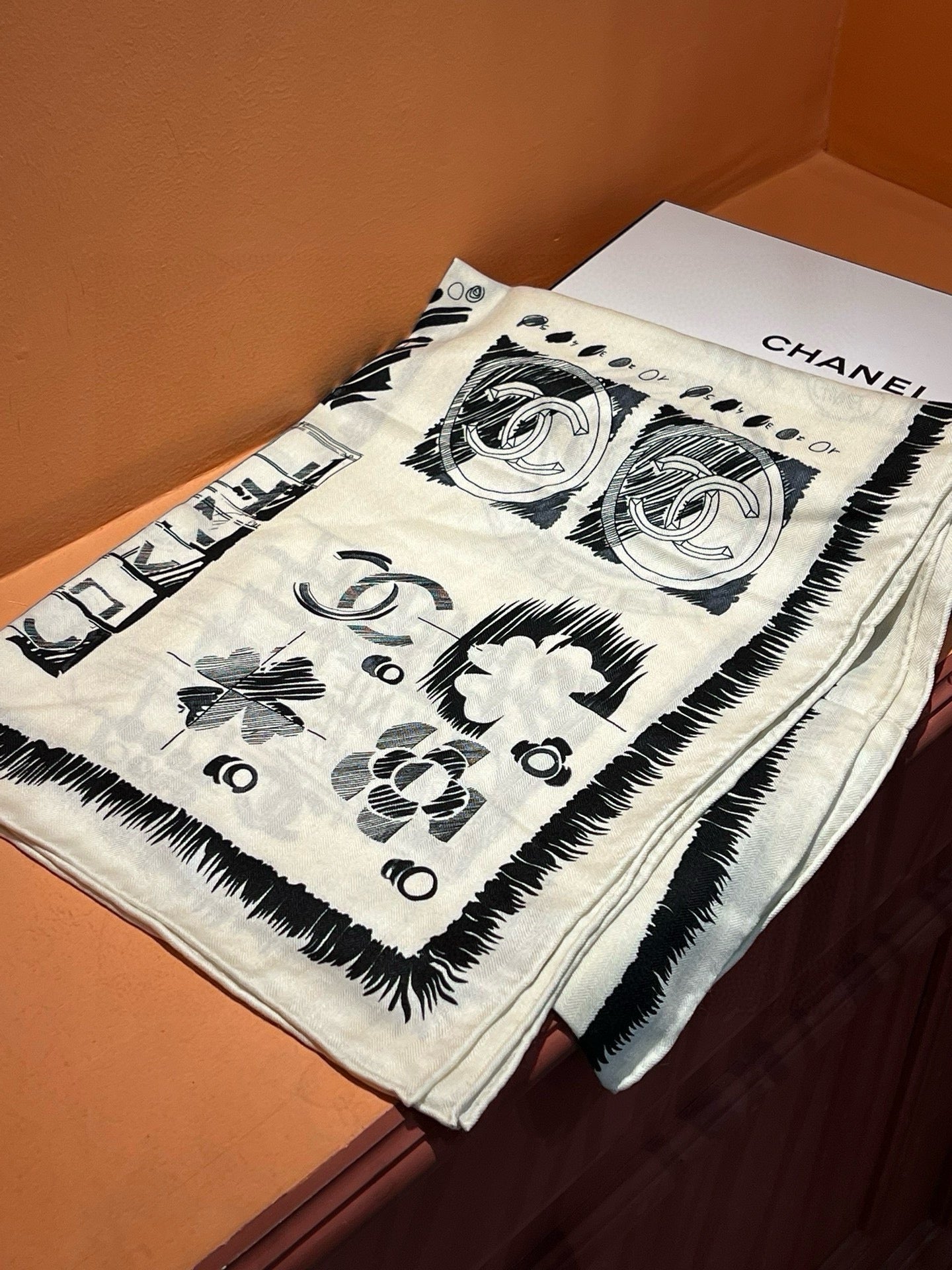 CC Scarf 185 CM In White Black Cashmere Silk 182460