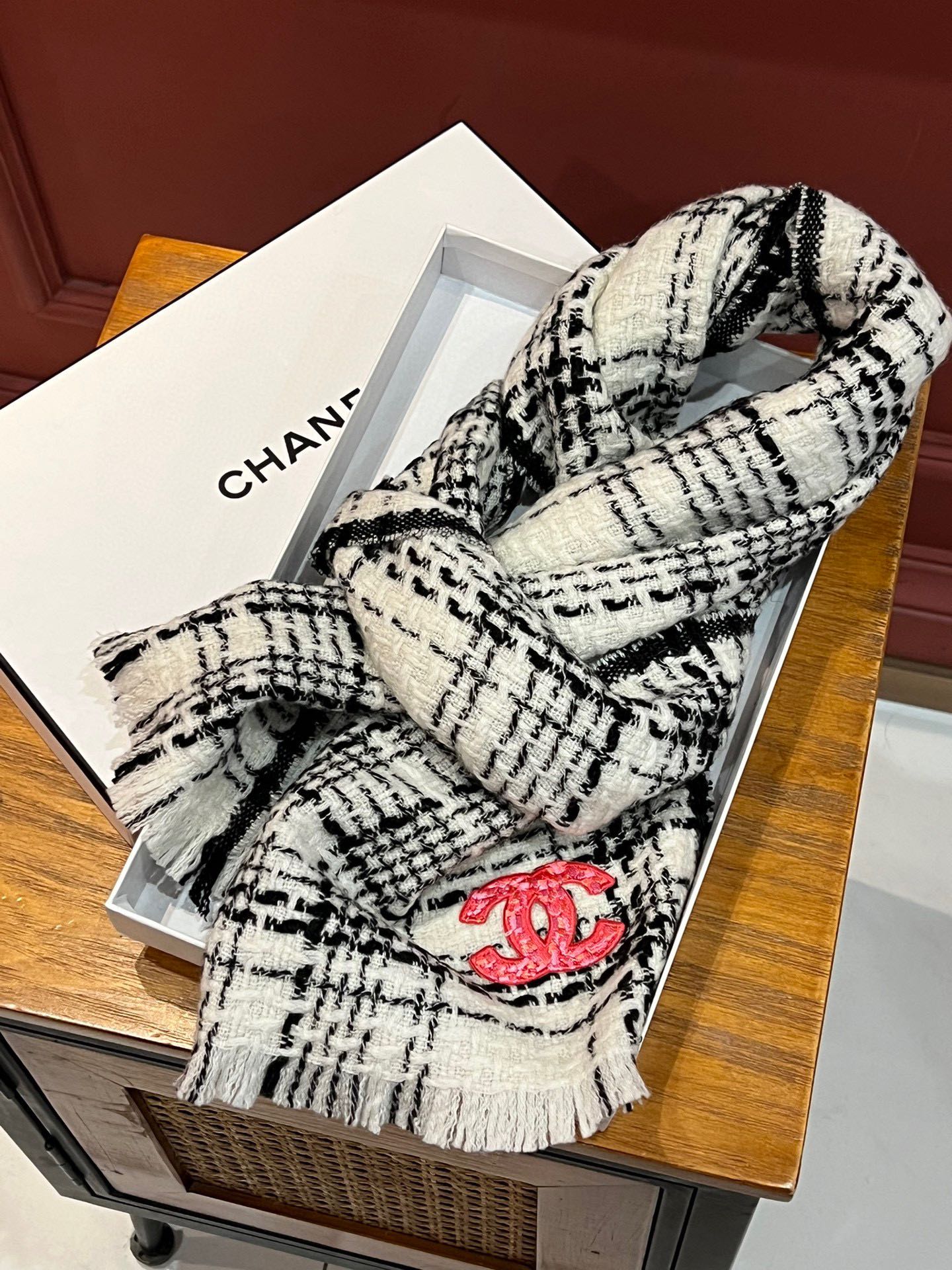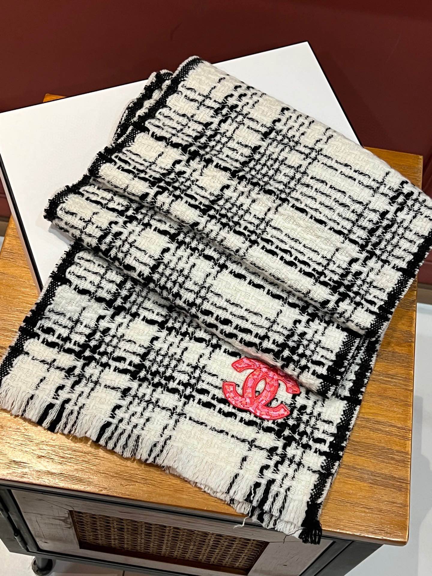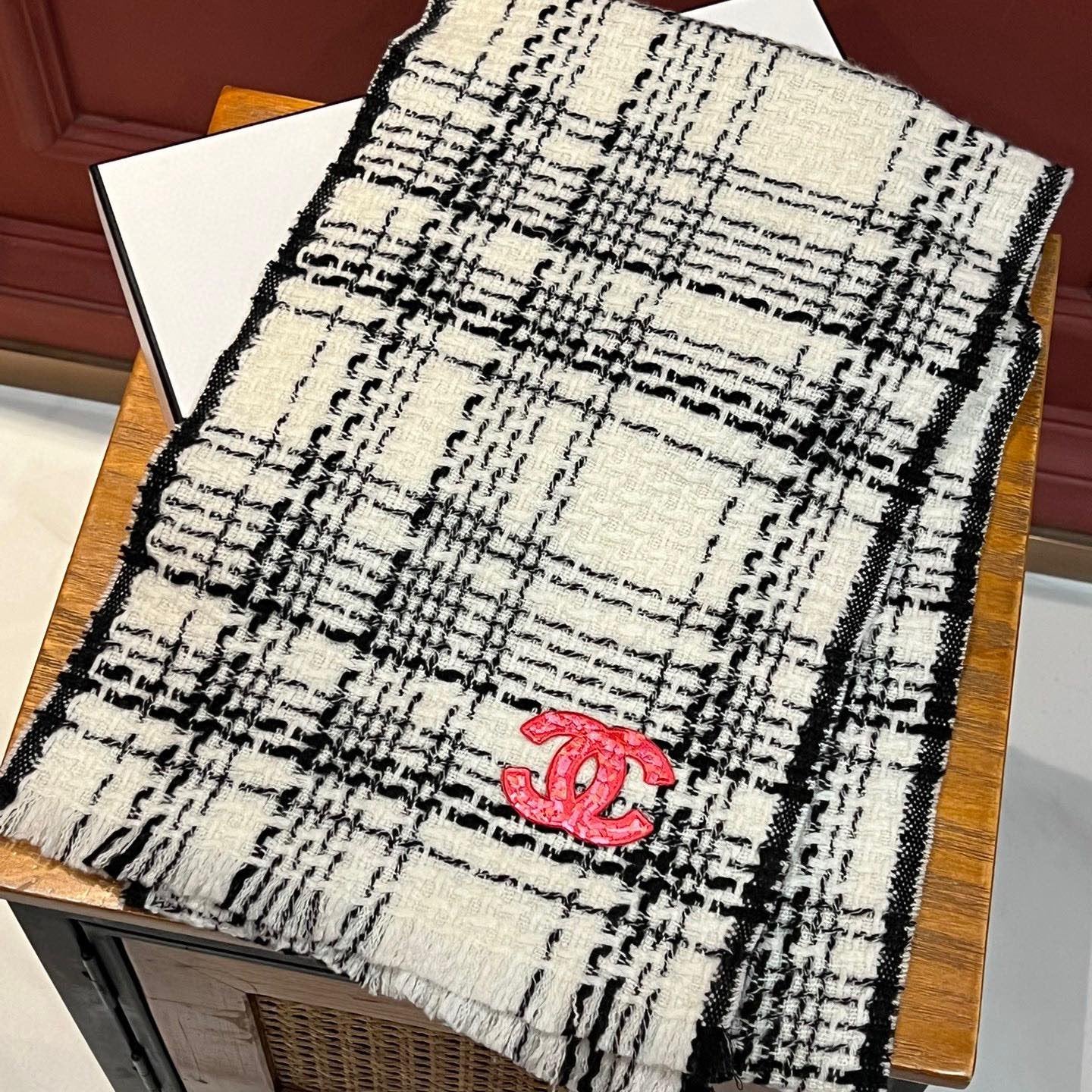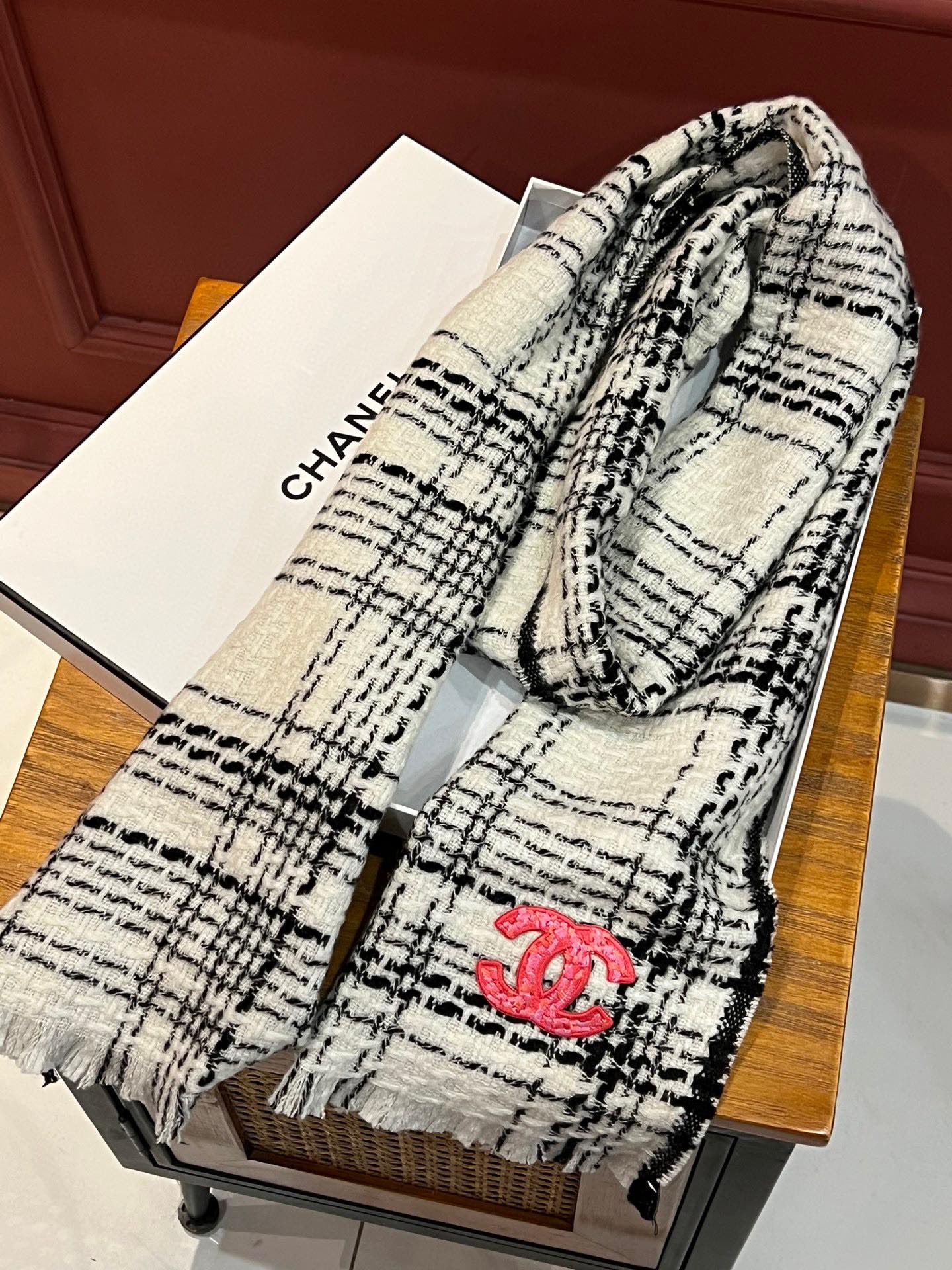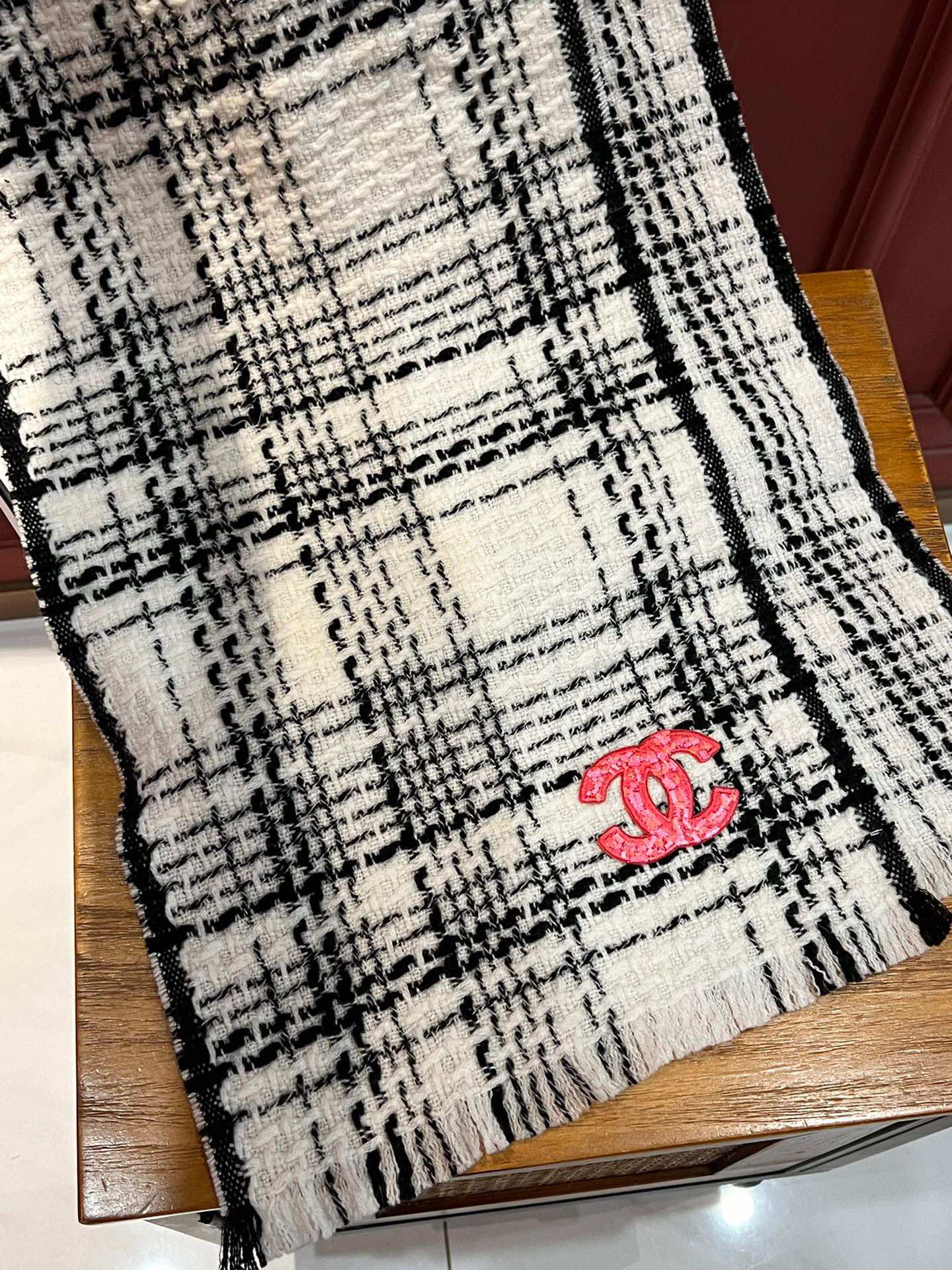 CC Scarf 185 CM White With Black Stripes Cashmere 422920