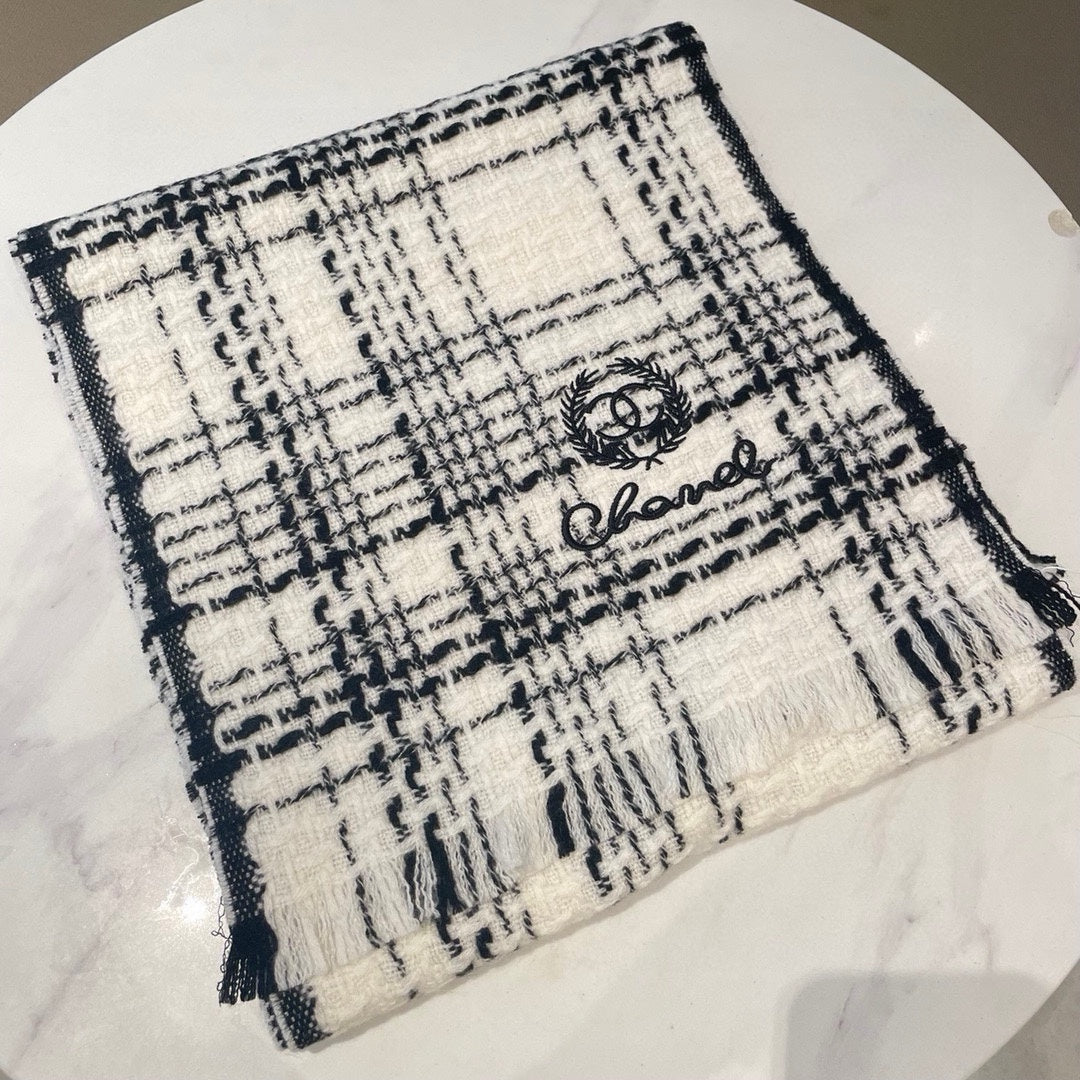 CC Scarf 186 CM In White With Black Stripes Fleece Wool 418245