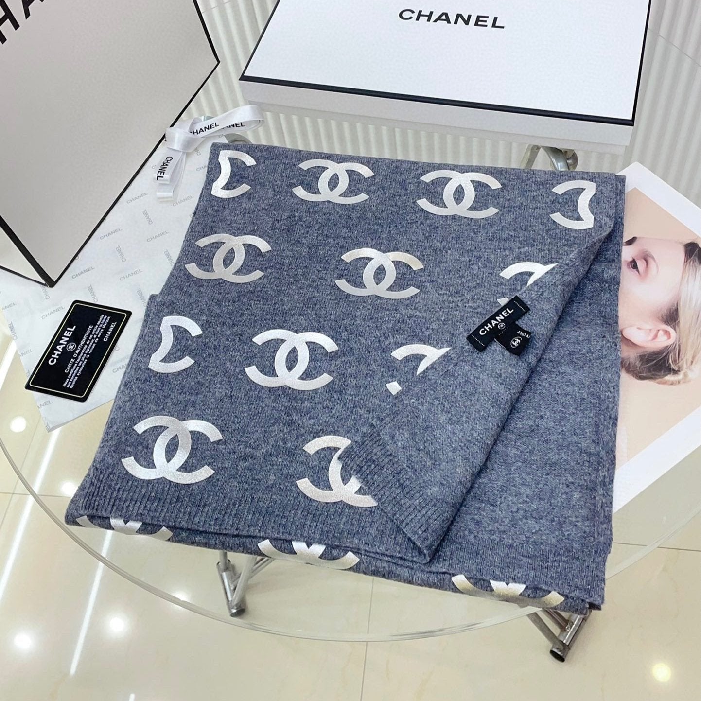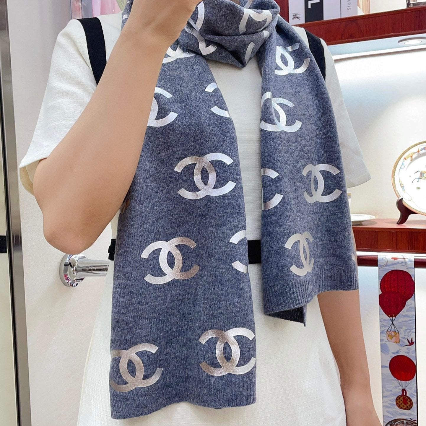 CC Scarf 190 CM In Grey Logo Print Cashmere 401170