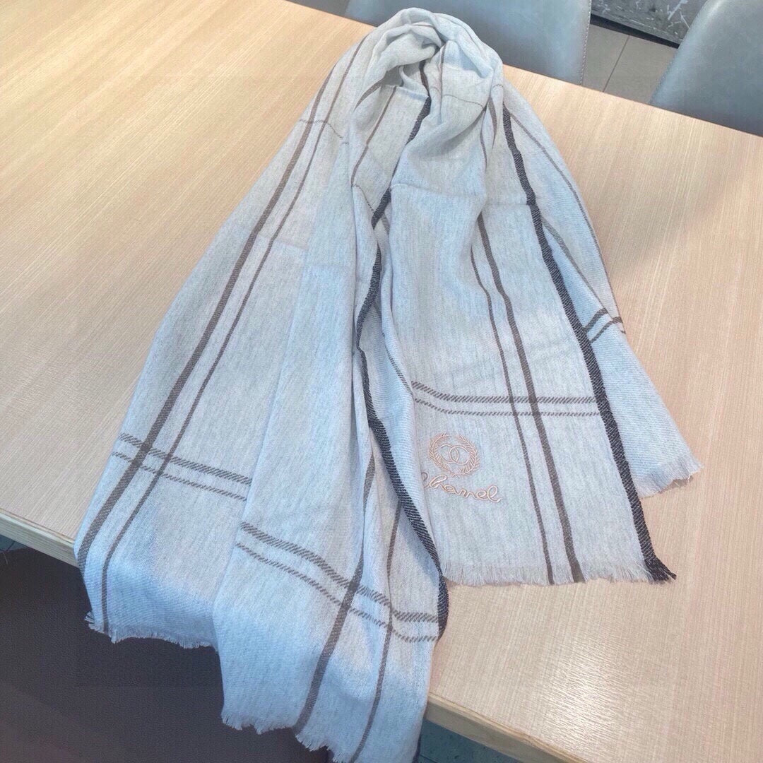 CC Scarf 190 CM In Light Grey With Brown Stripes Cashmere 411650
