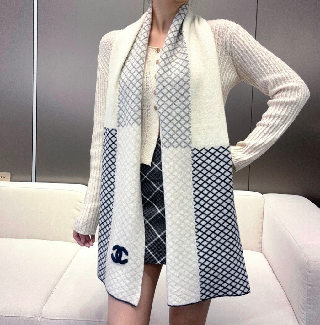 CC Scarf 190 CM In White Mix Black Cashmere 408543