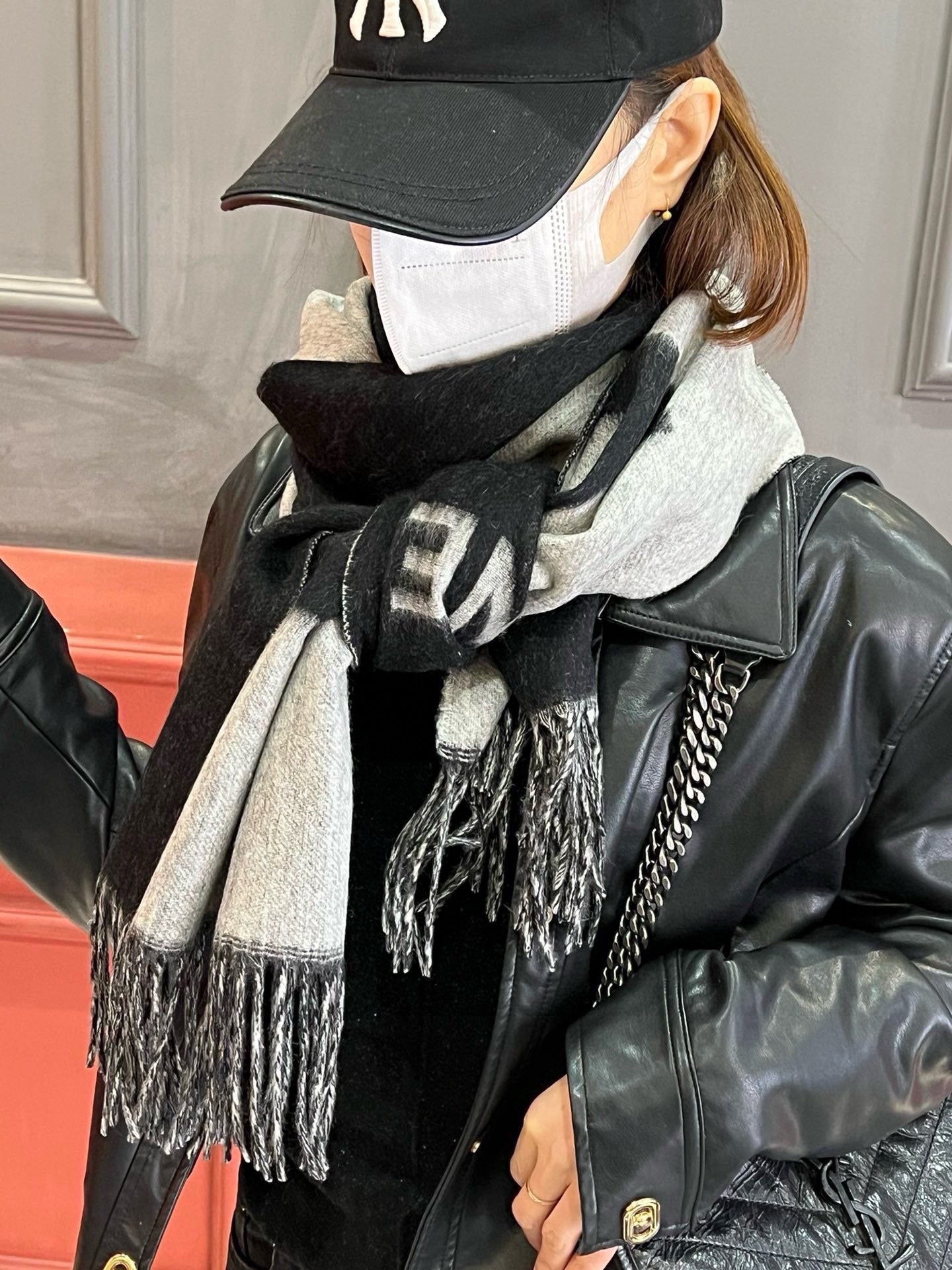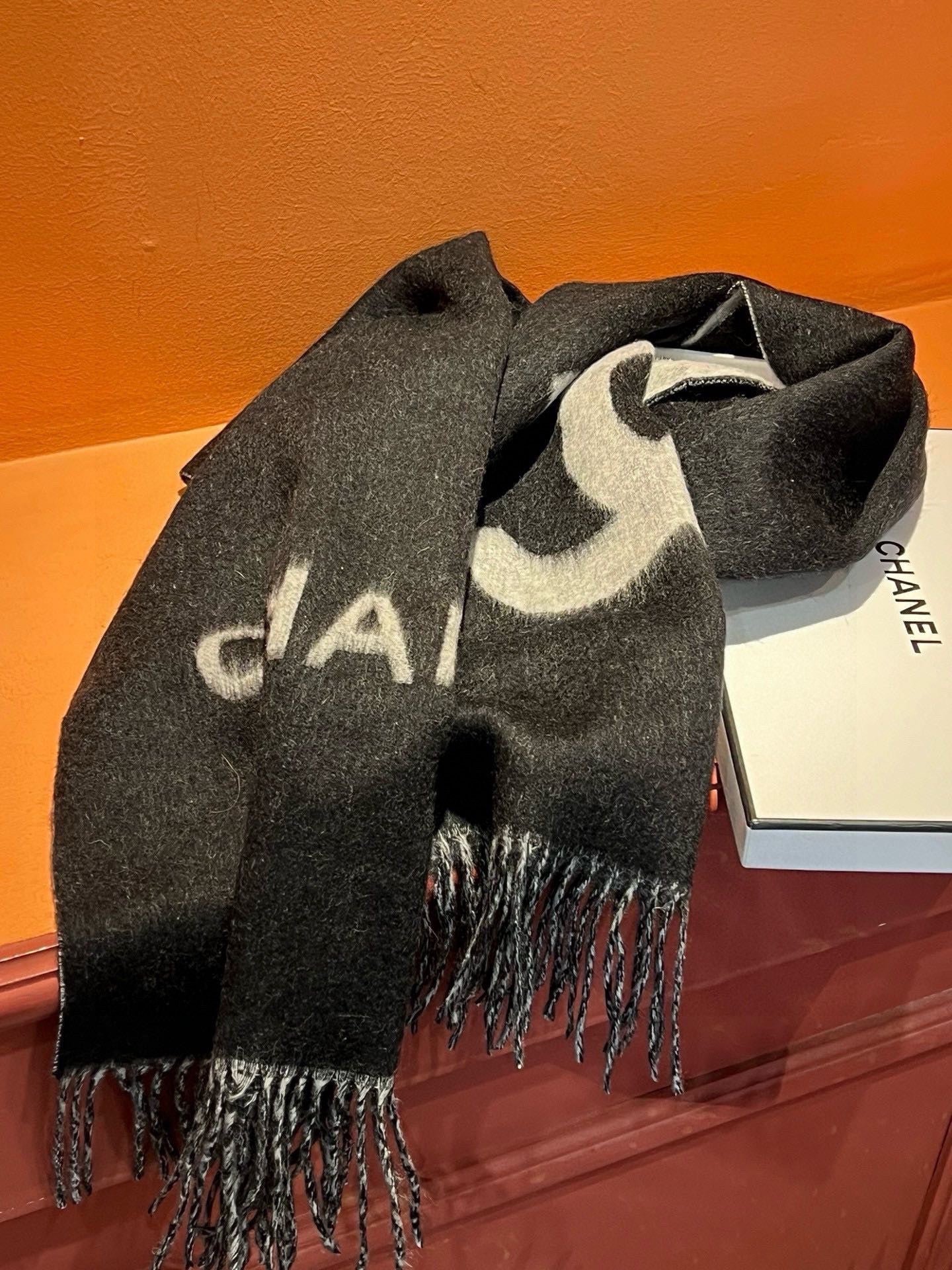 CC Scarf 200 CM In Black Mix Grey Cashmere 304302