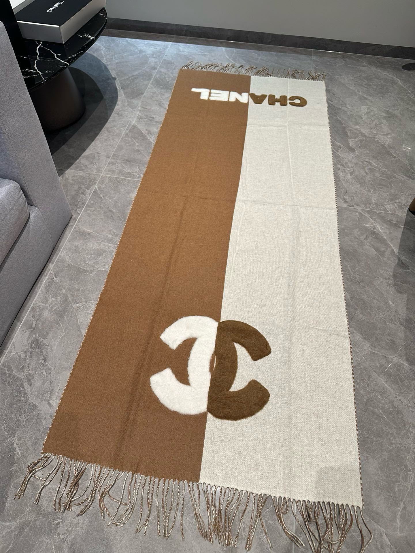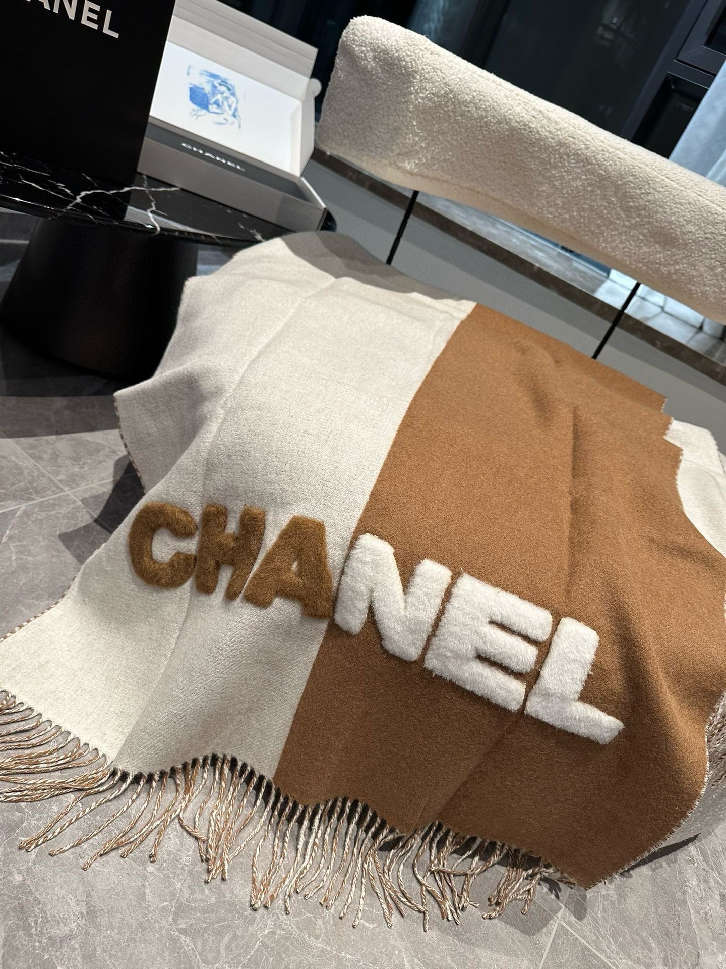 CC Scarf 200 CM In Brown Mix White Fleece Wool 405154