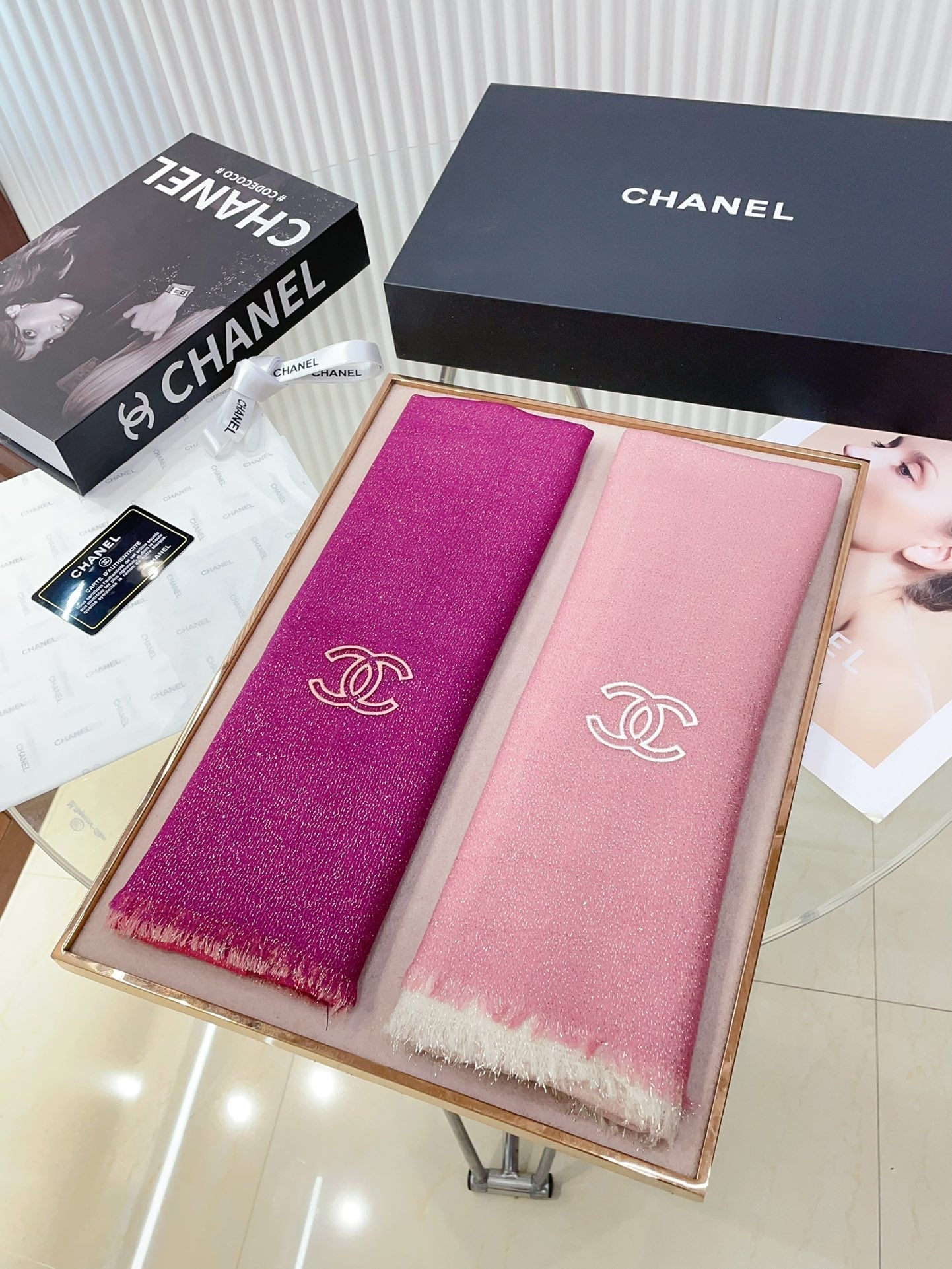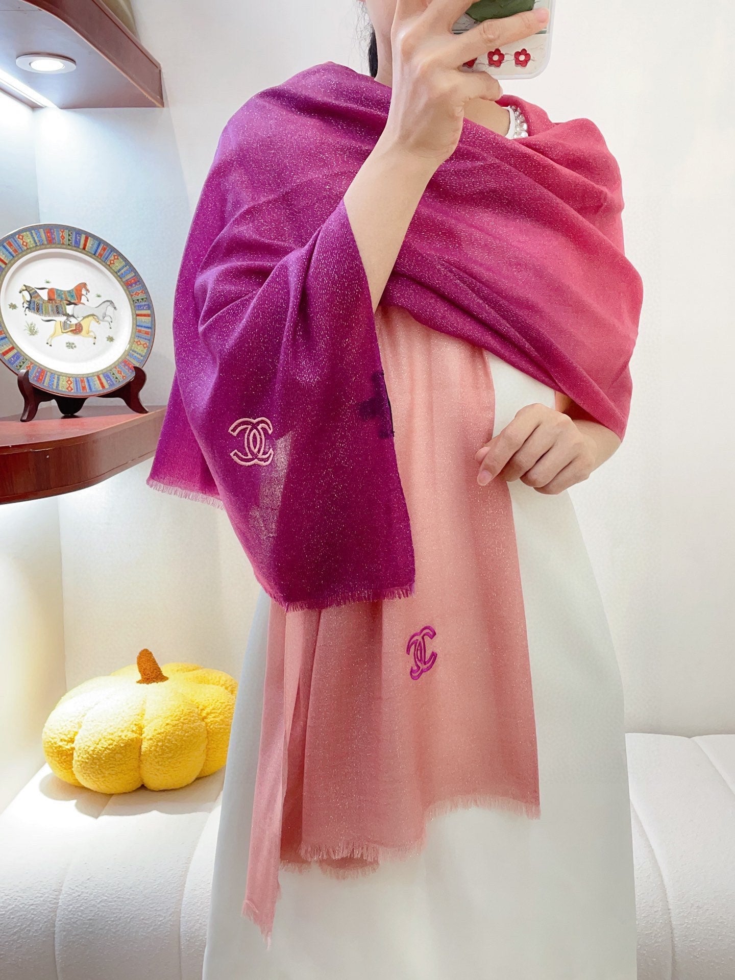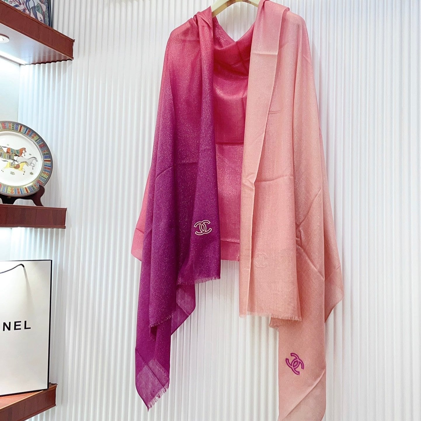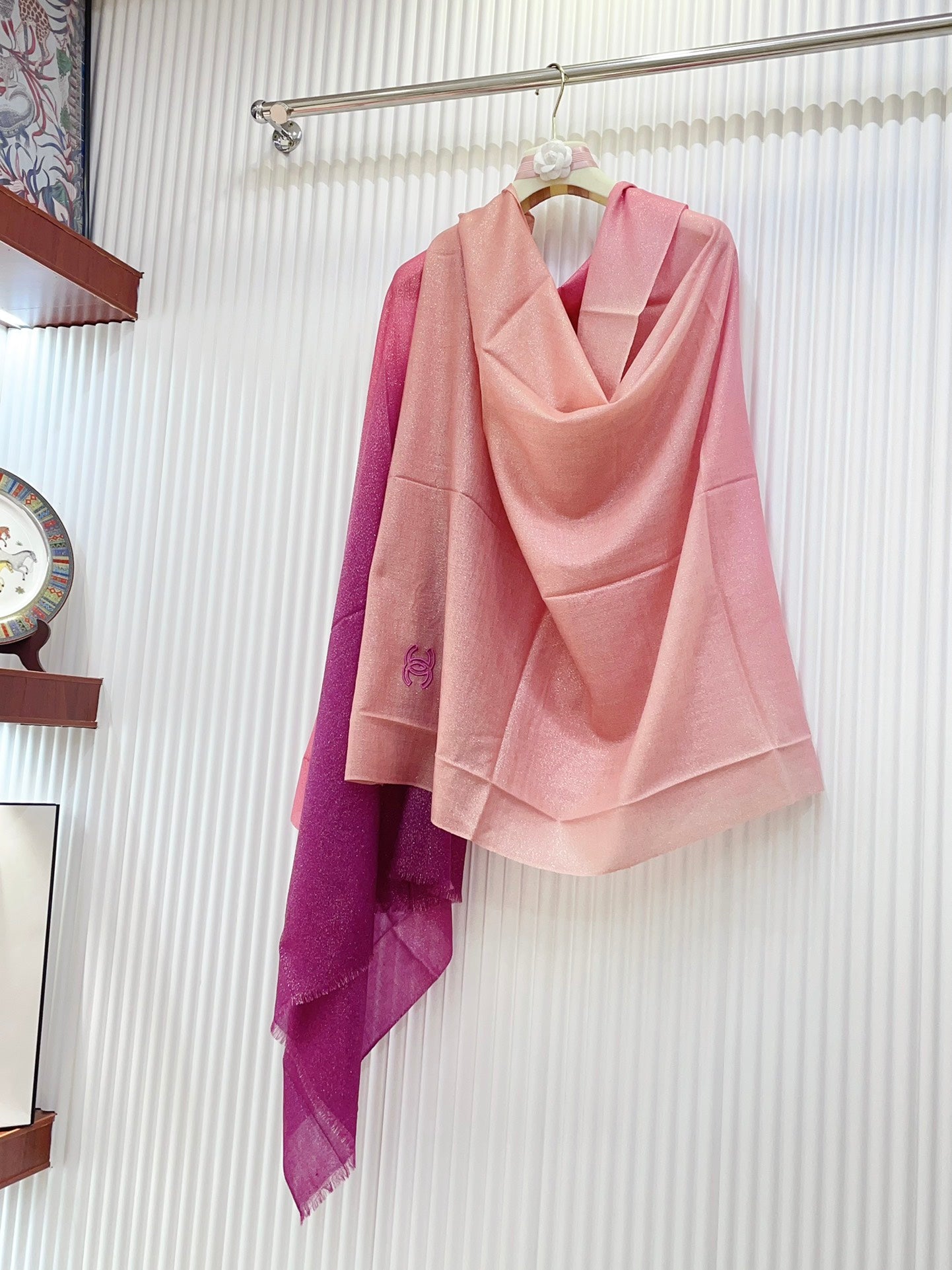 CC Scarf 200 CM In Dark Pink Mix Light Pink Linen Fabric 249937