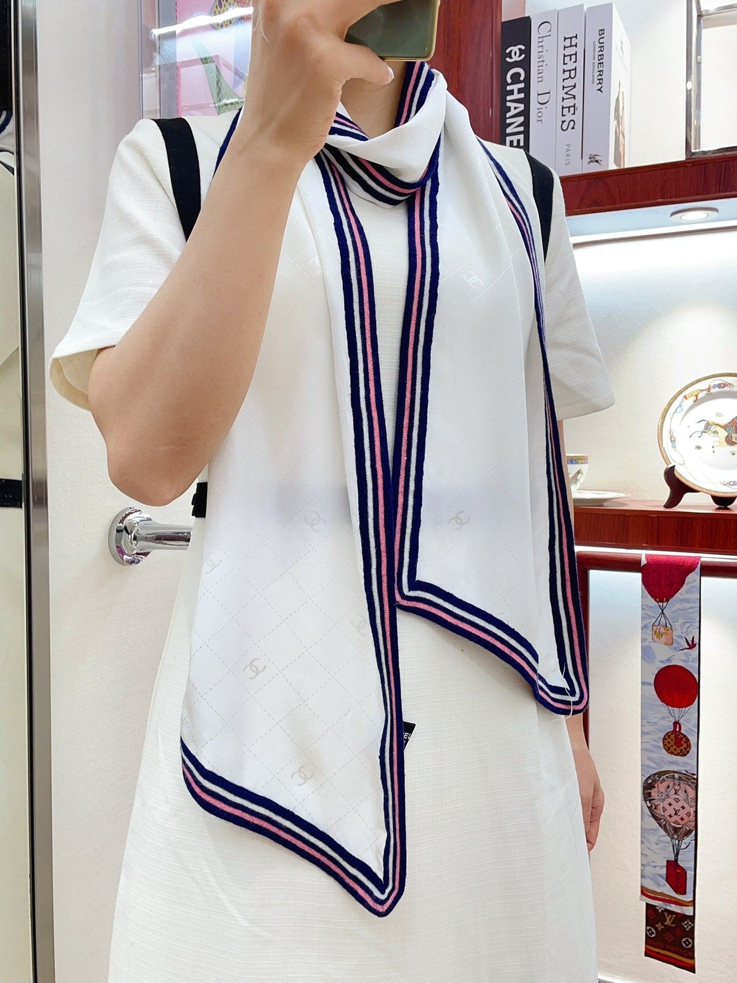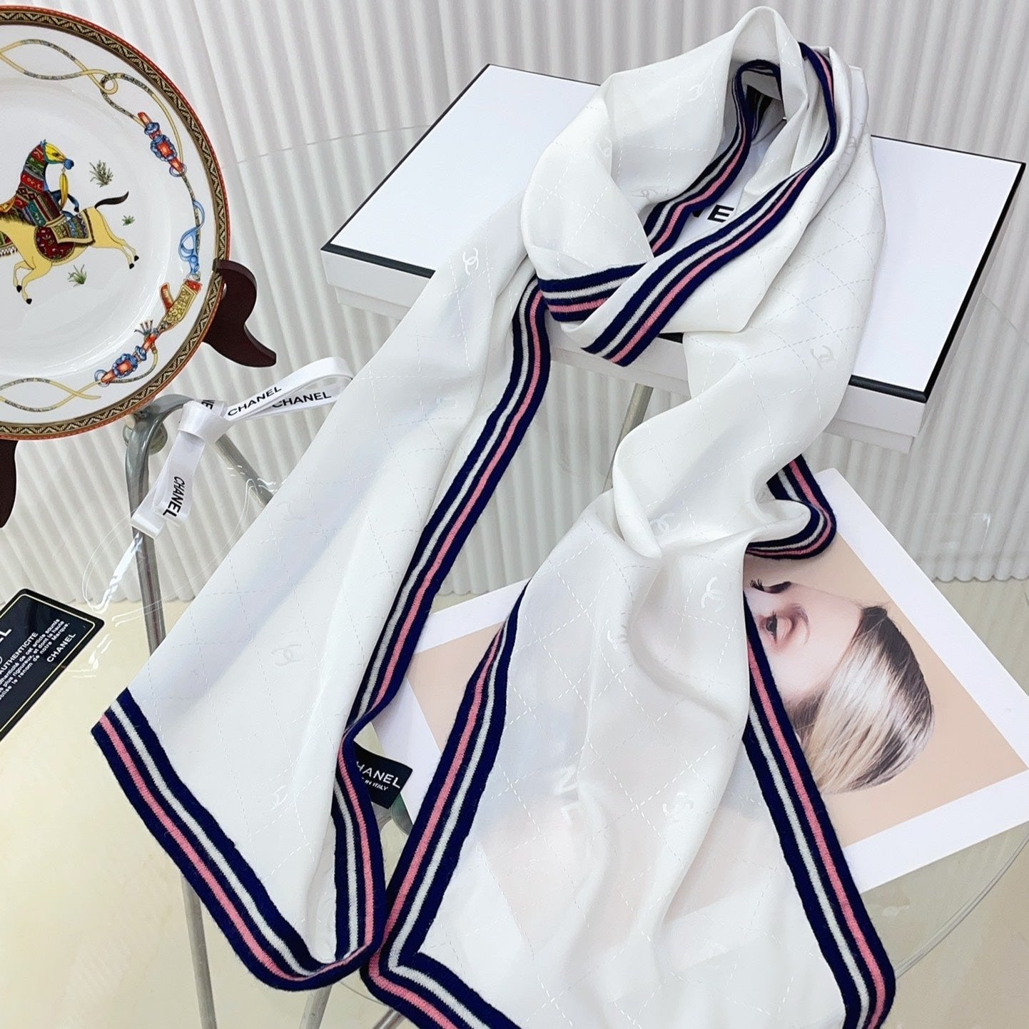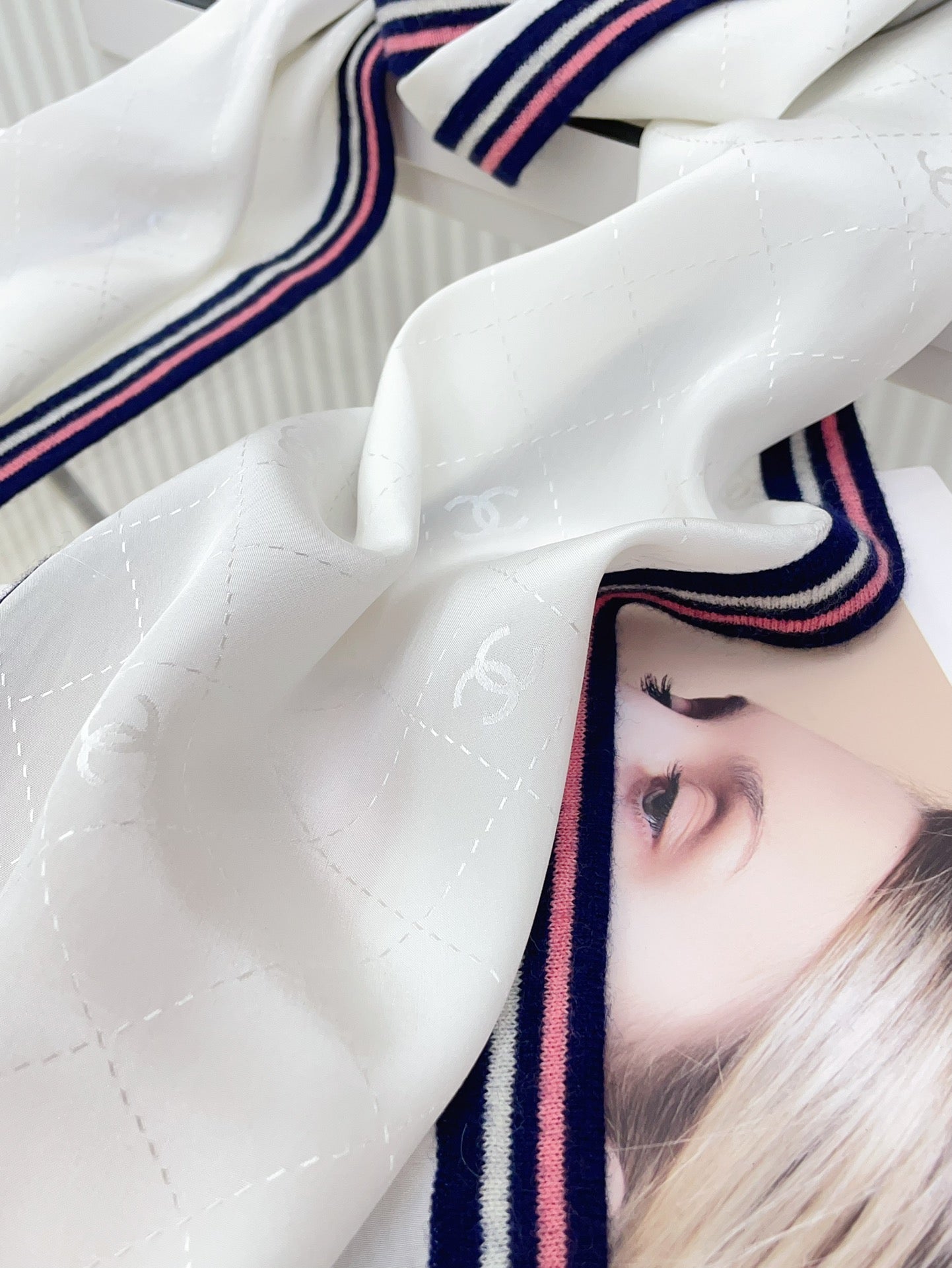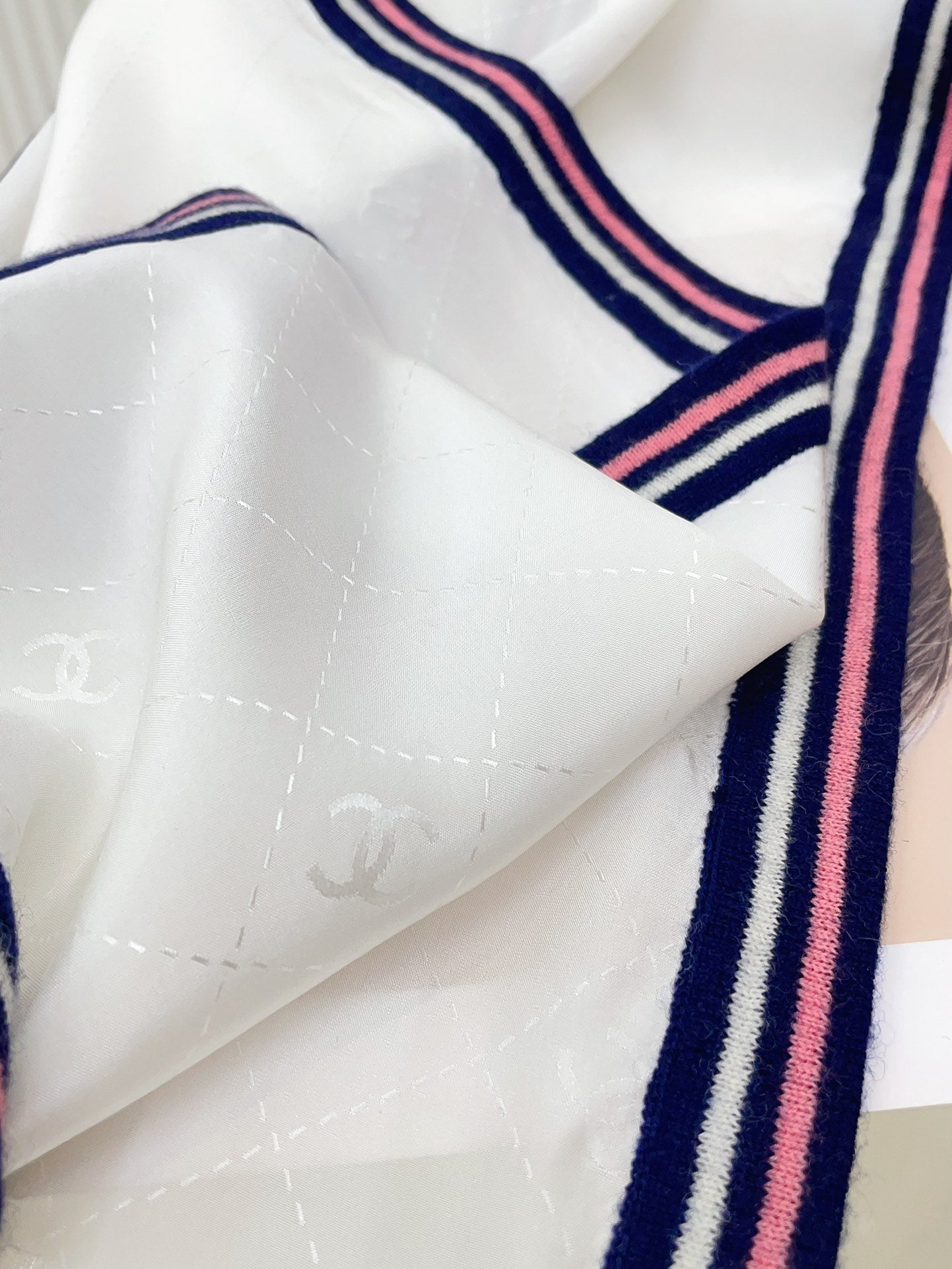 CC Scarf 200 CM In White Mix Darl Blue Silk 357900