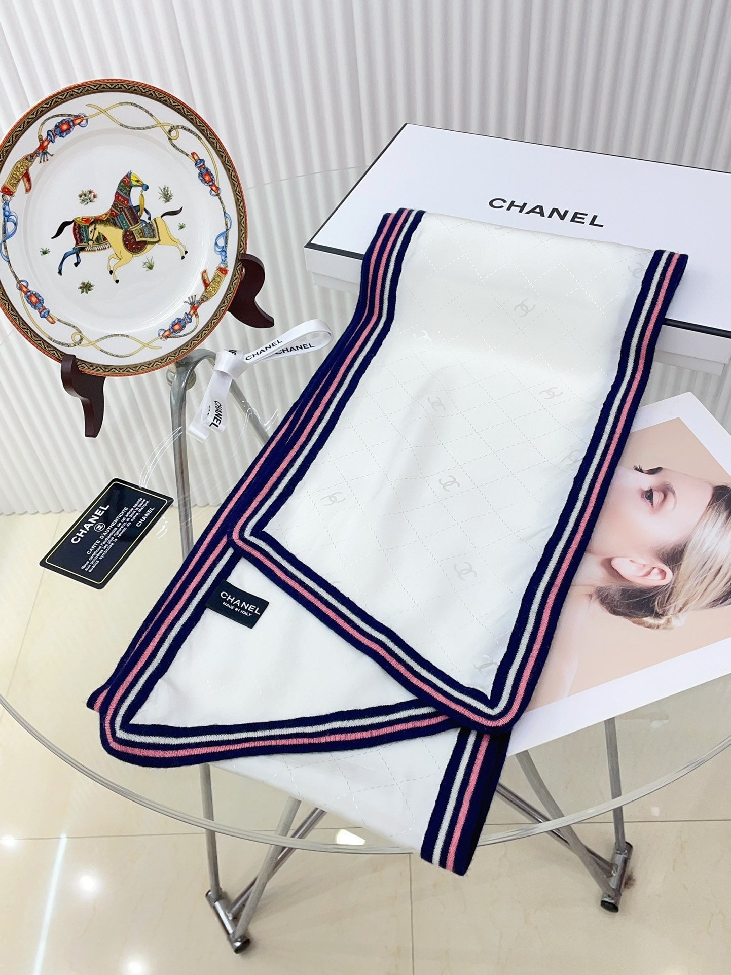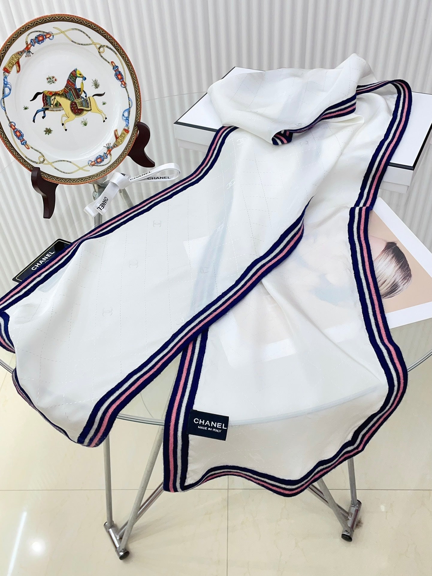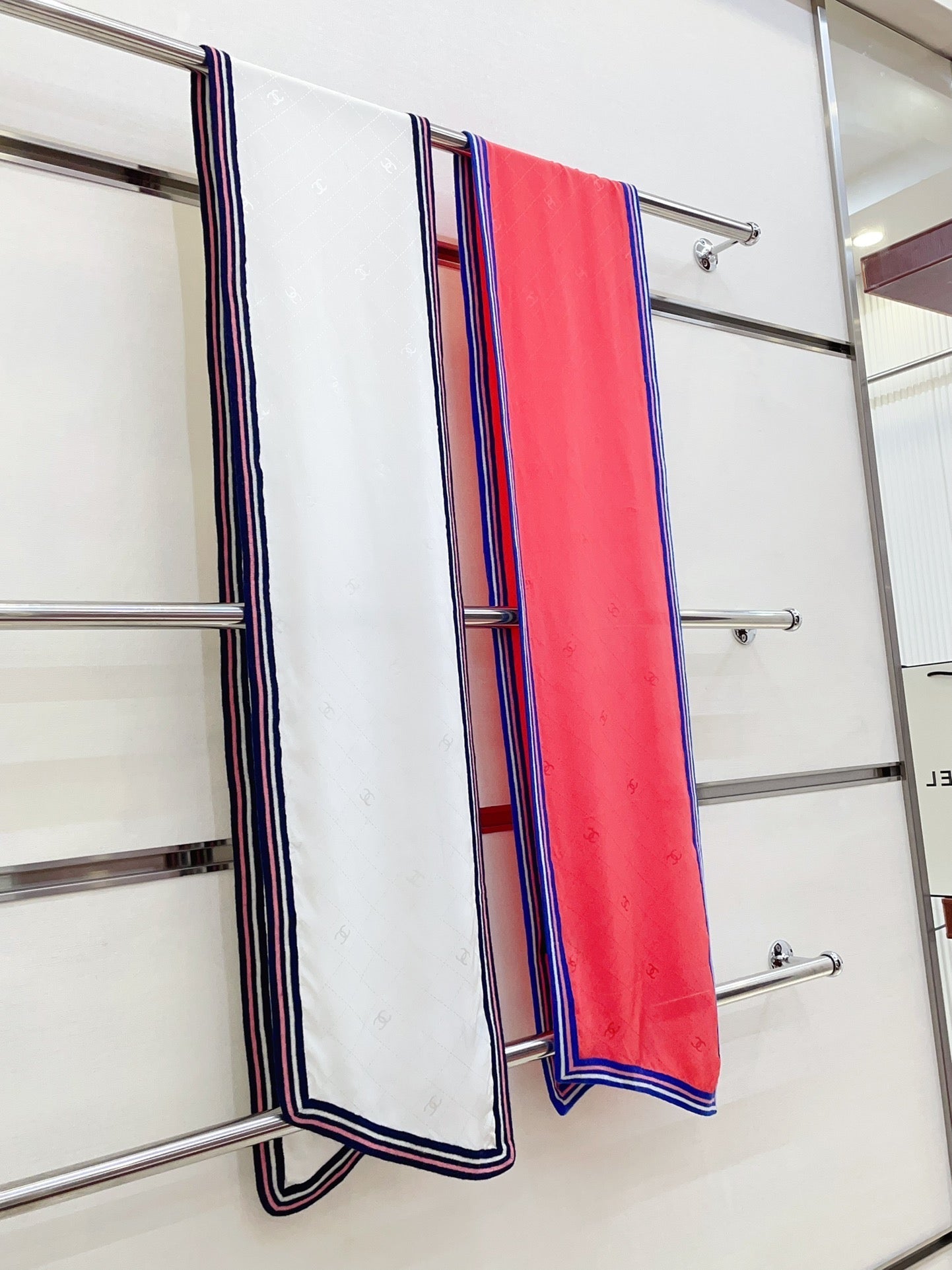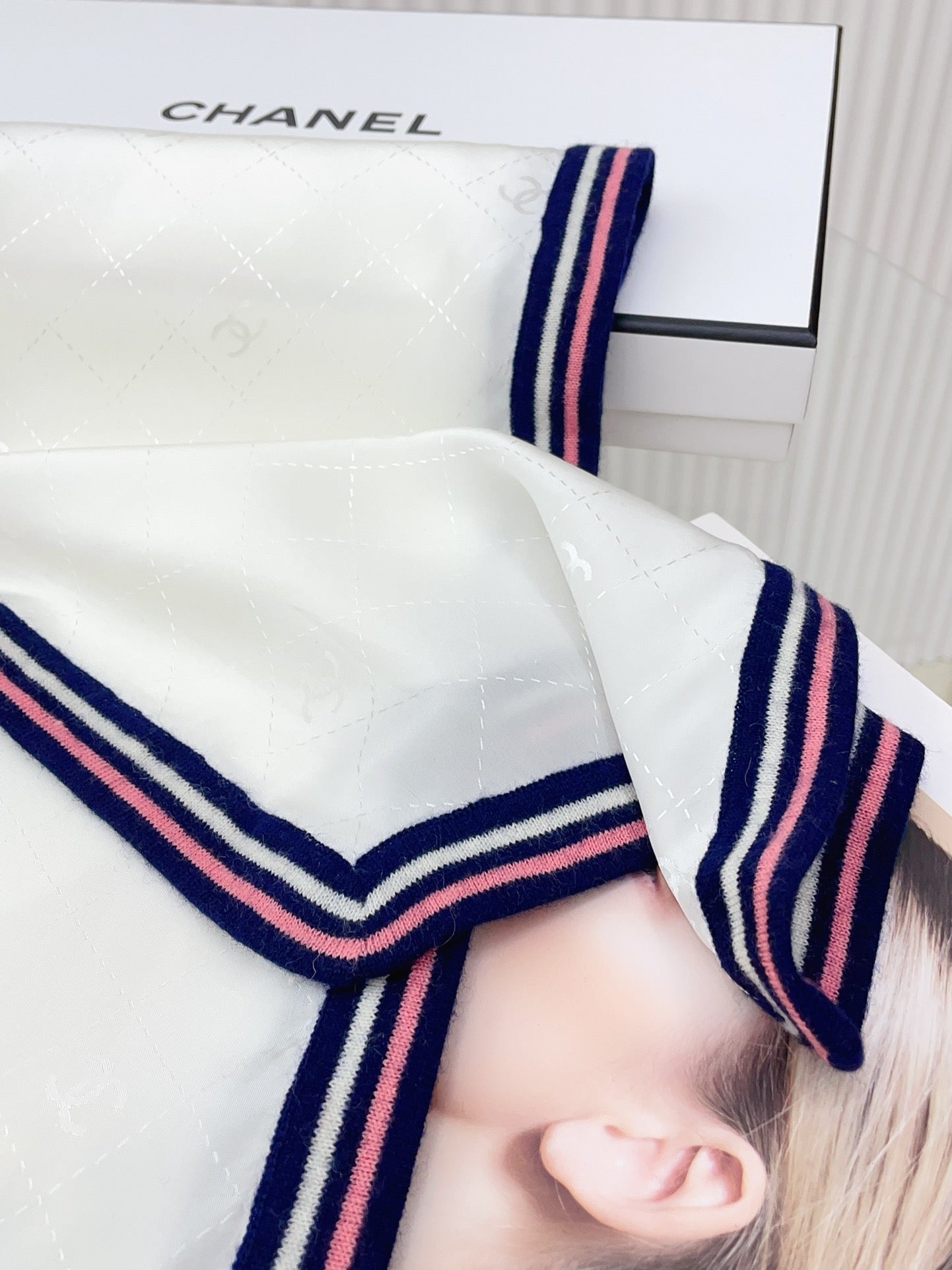 CC Scarf 200 CM In White Mix Darl Blue Silk 357900