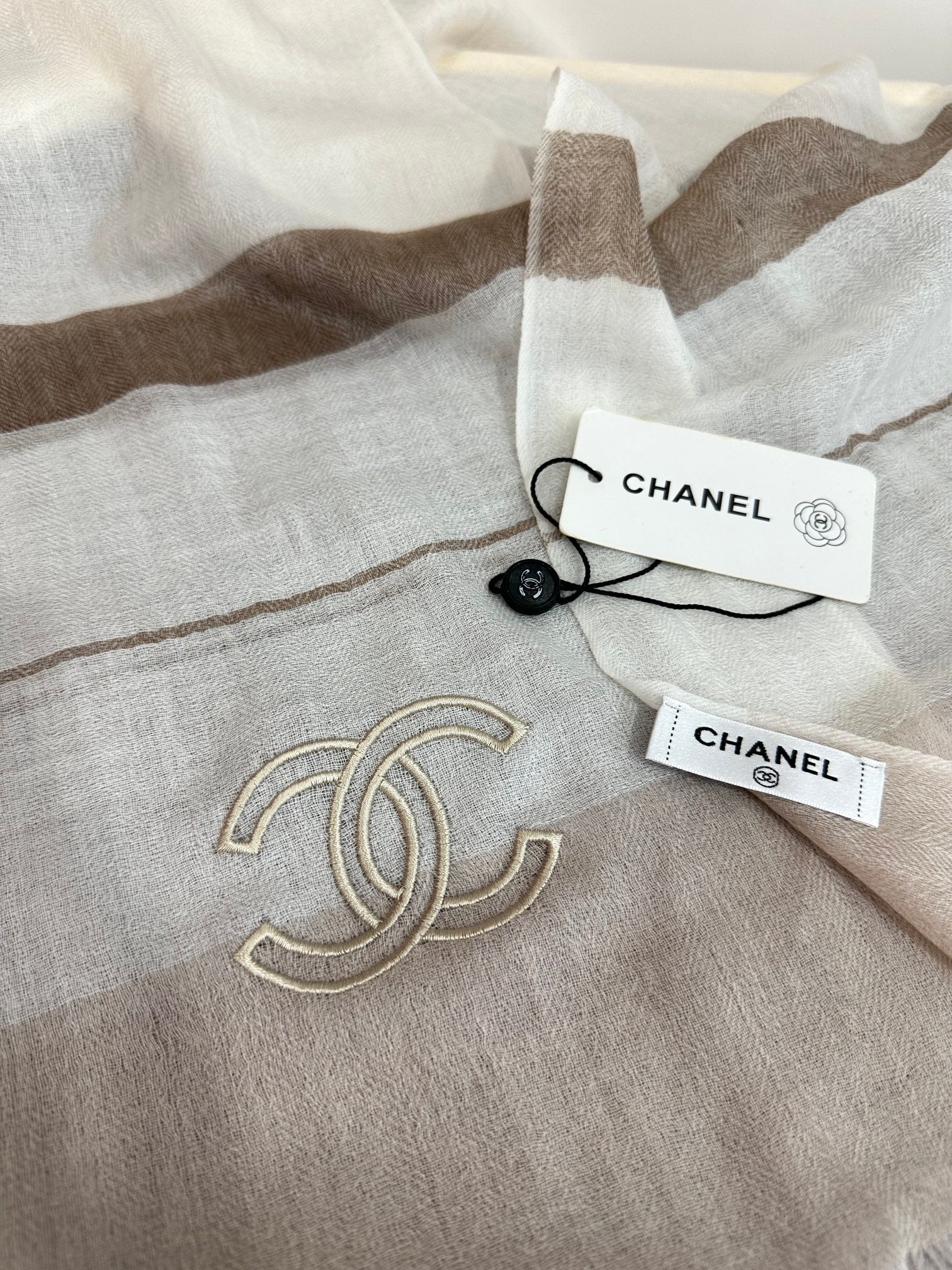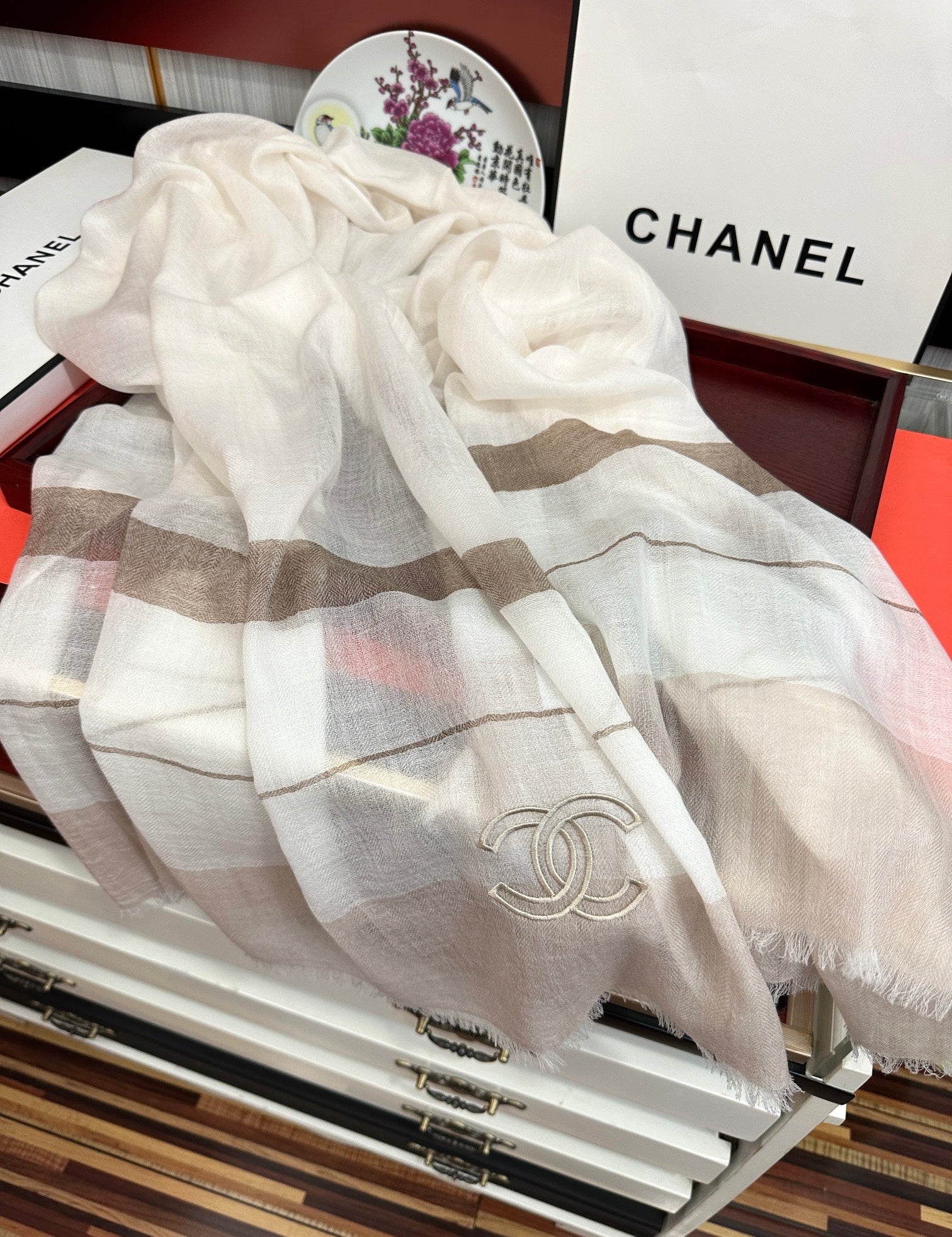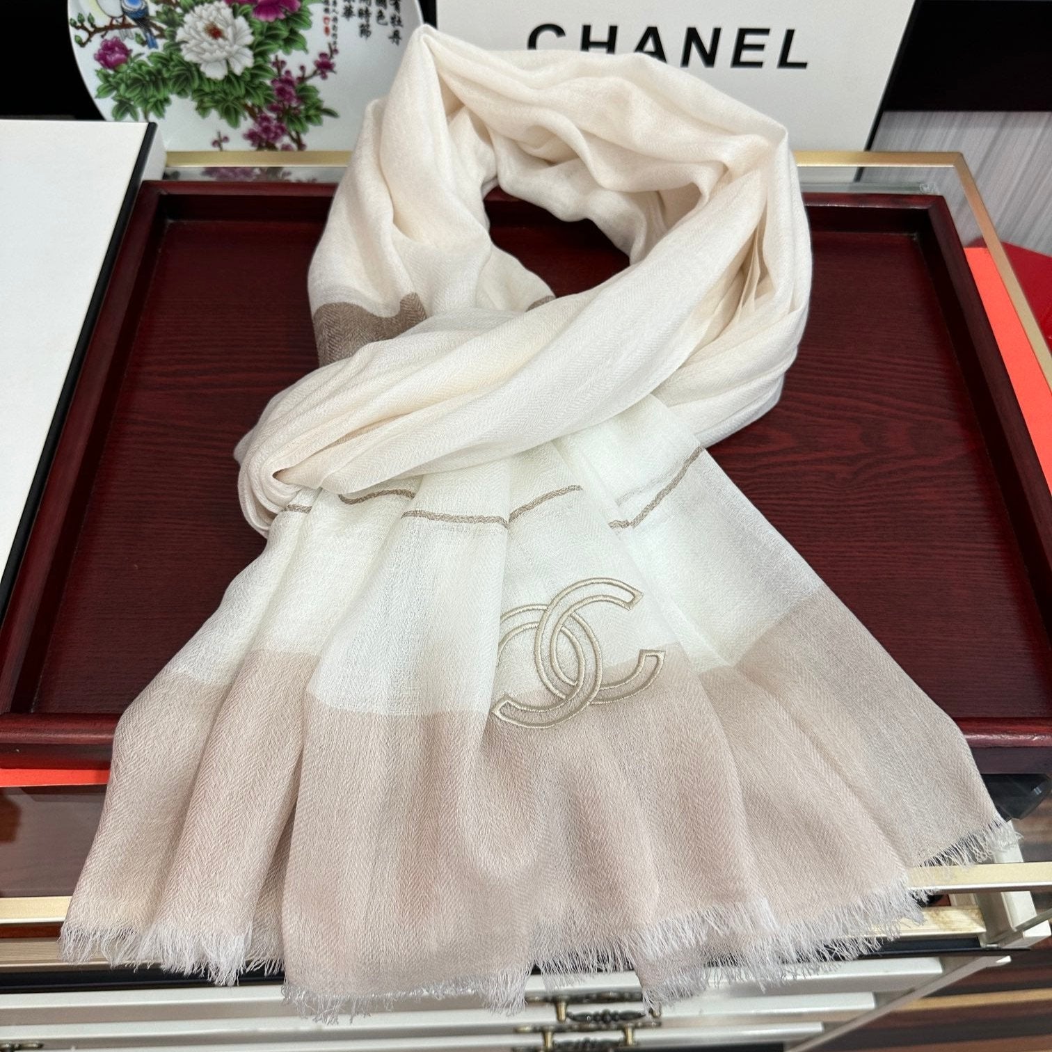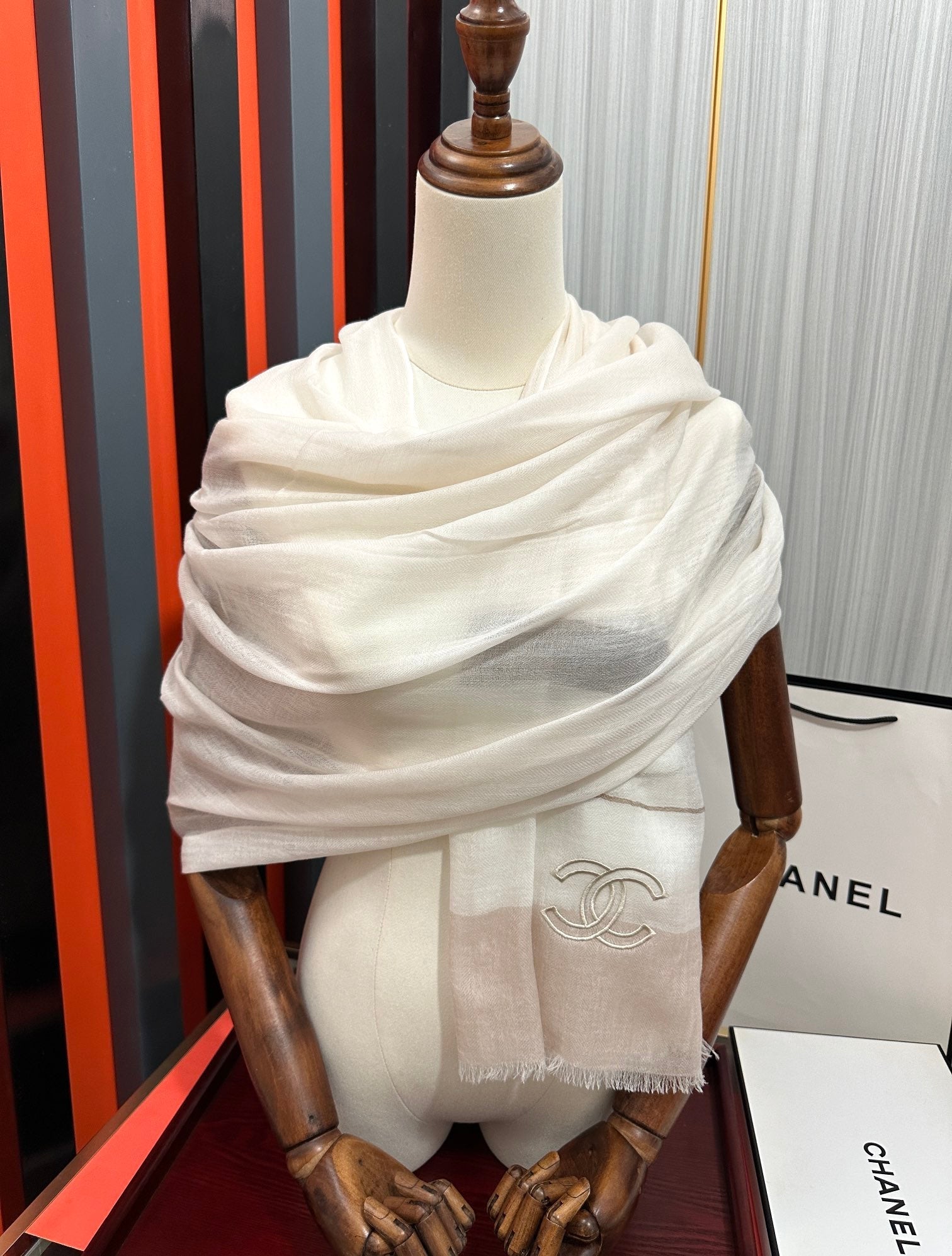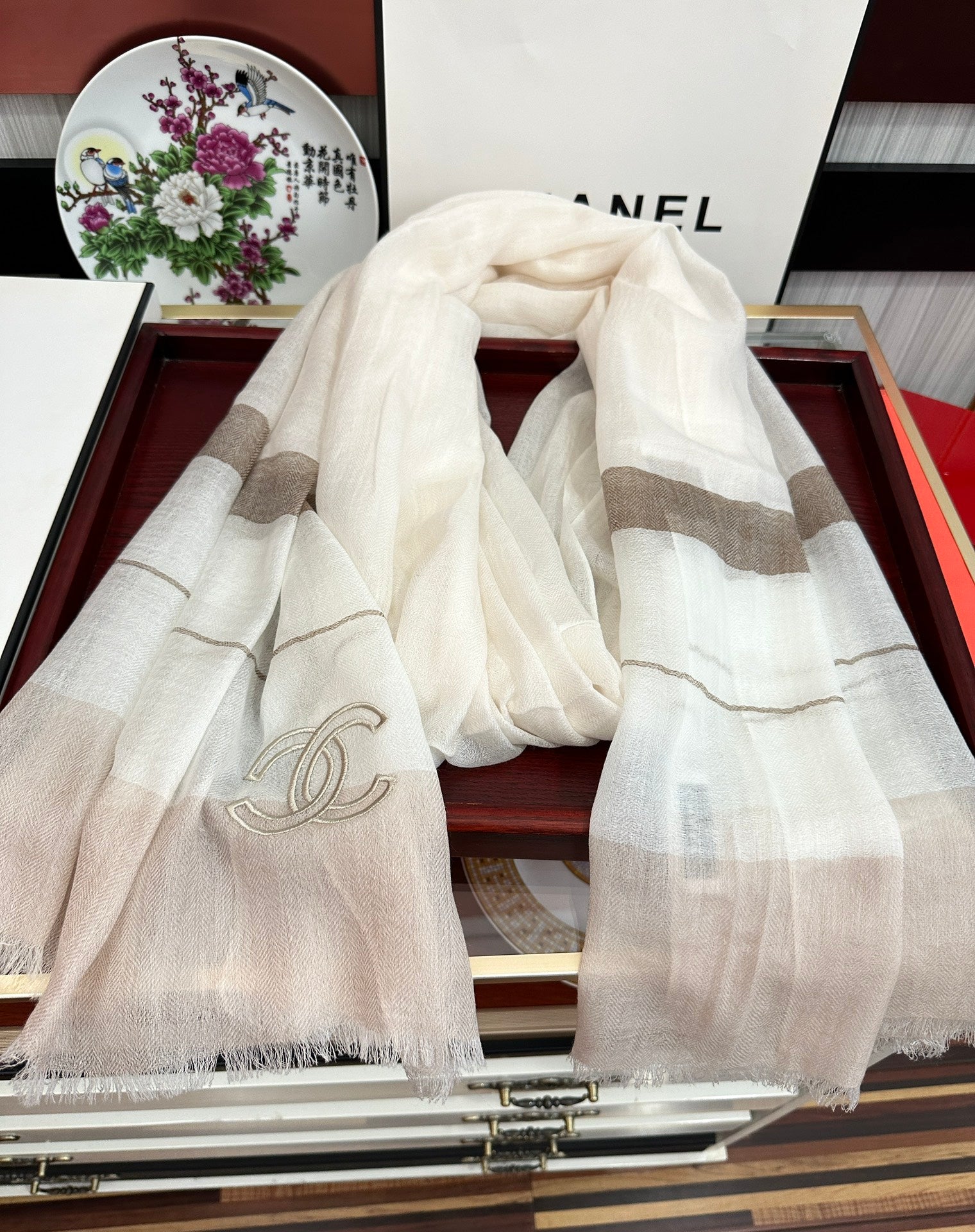 CC Scarf 200 CM In White Mix Light Brown Linen Fabric 423098