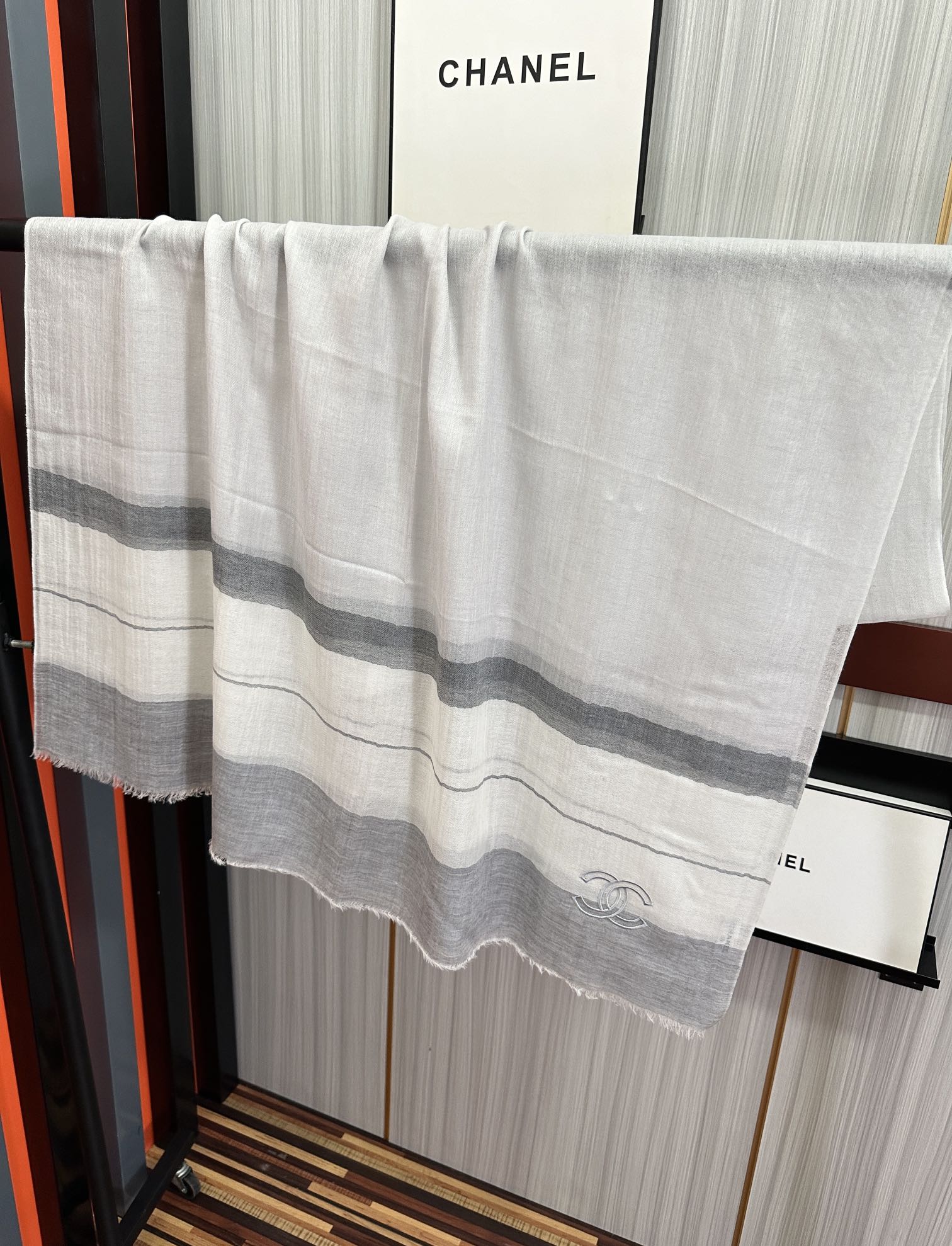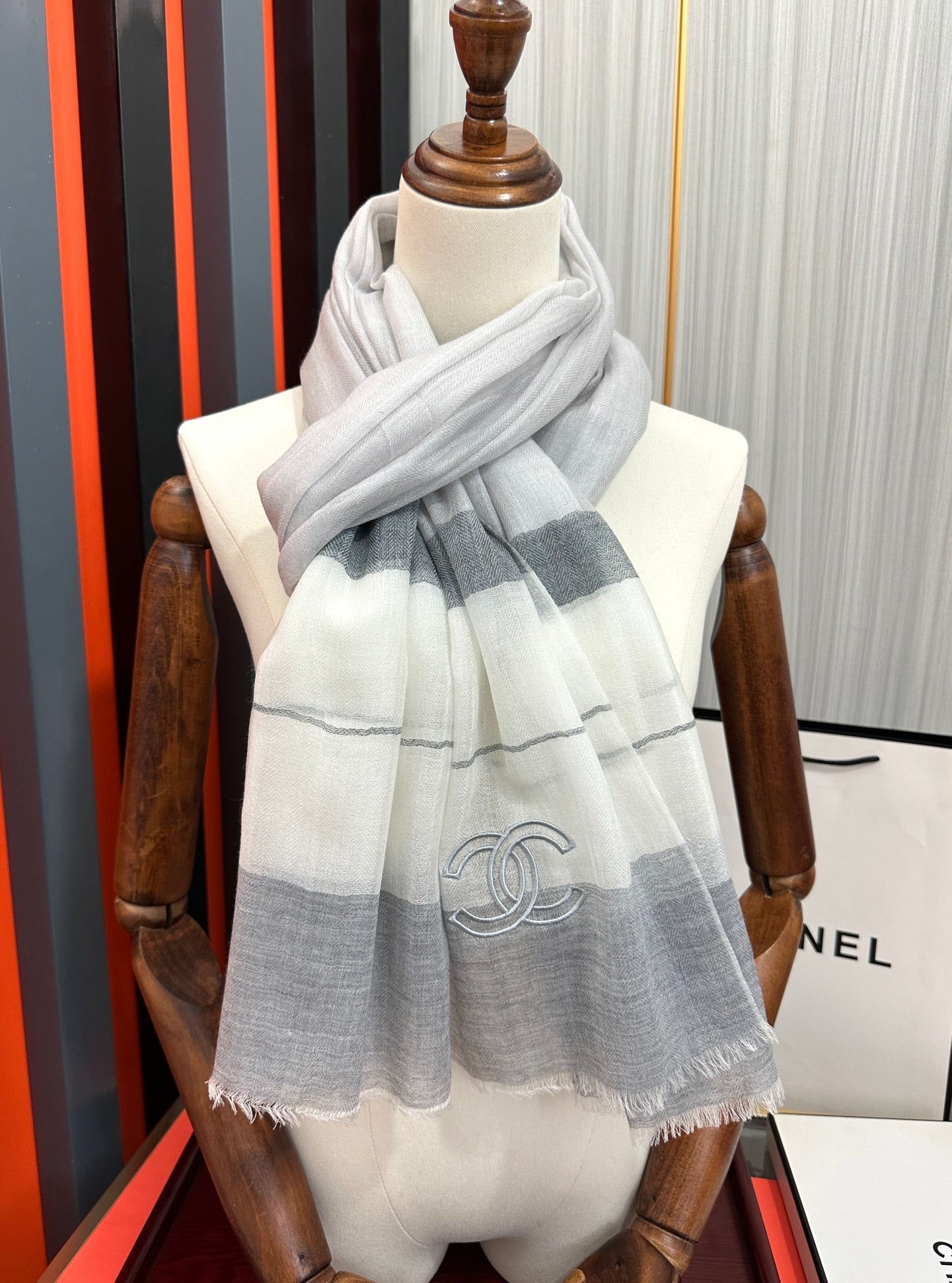CC Scarf 200 CM In White Mix Light Grey Linen Fabric 423097