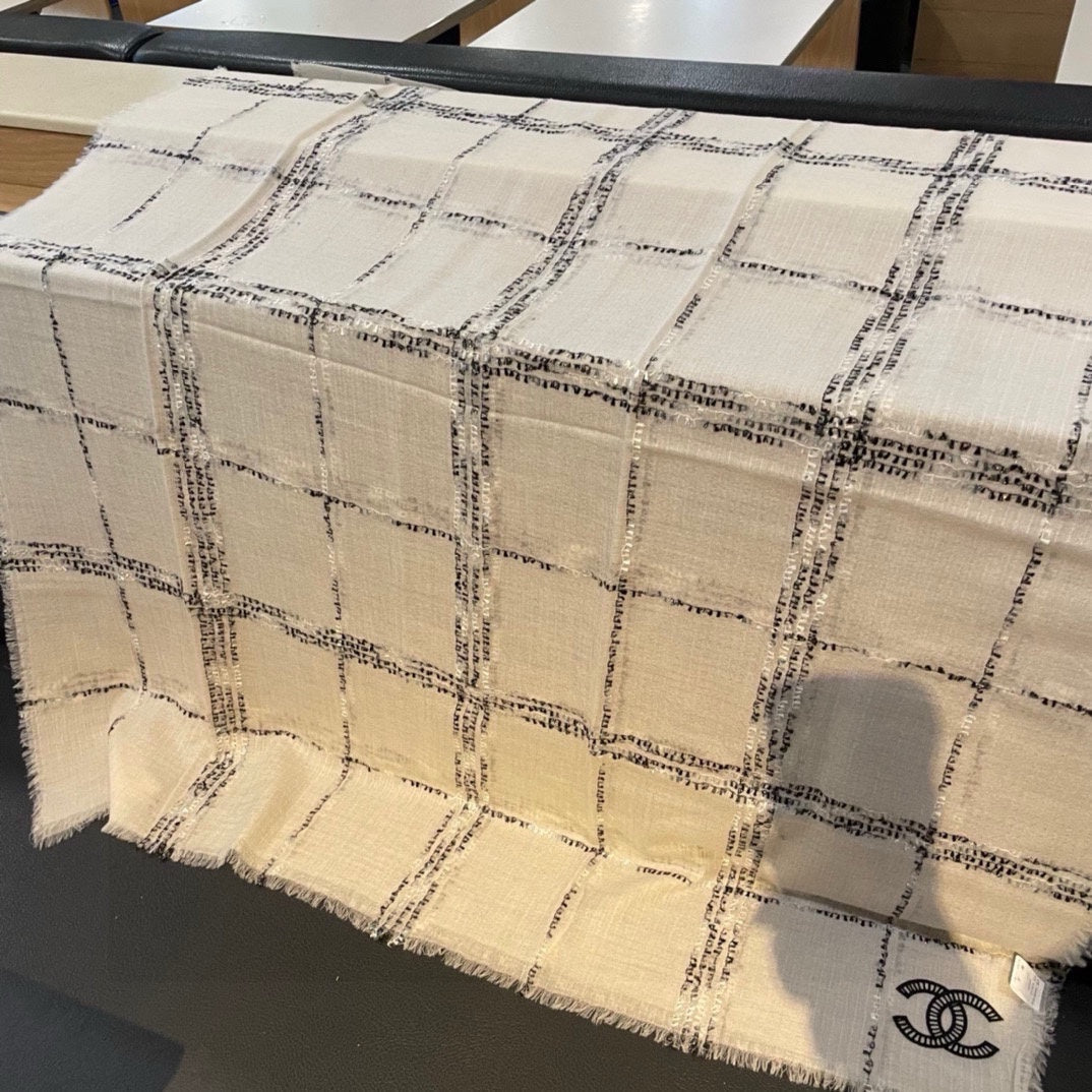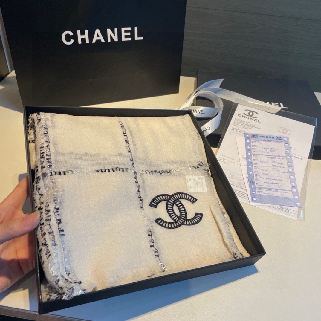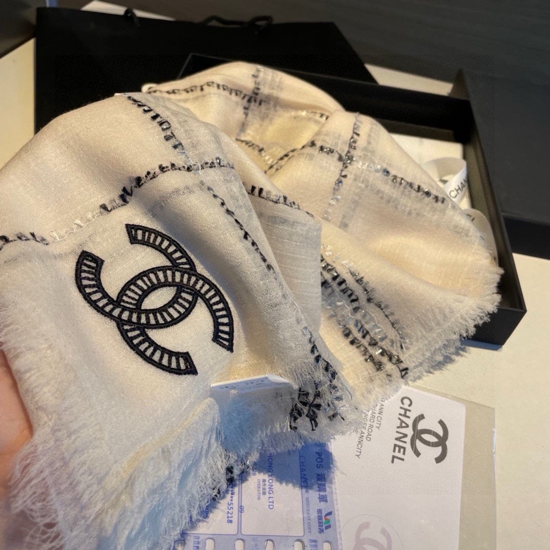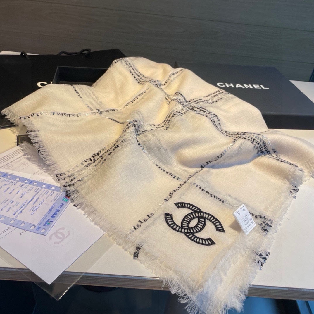 CC Scarf 200 CM In White With Black Stripes Cashmere 385515