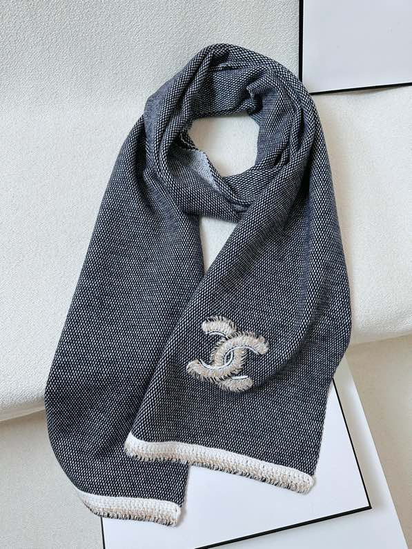 CC Scarf 220 CM In Black Grey Mix White Cashmere 389887