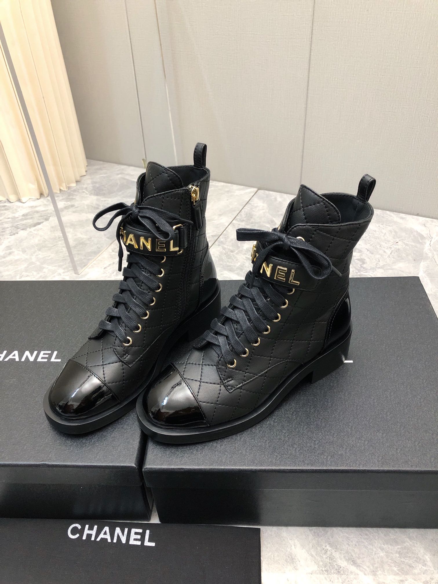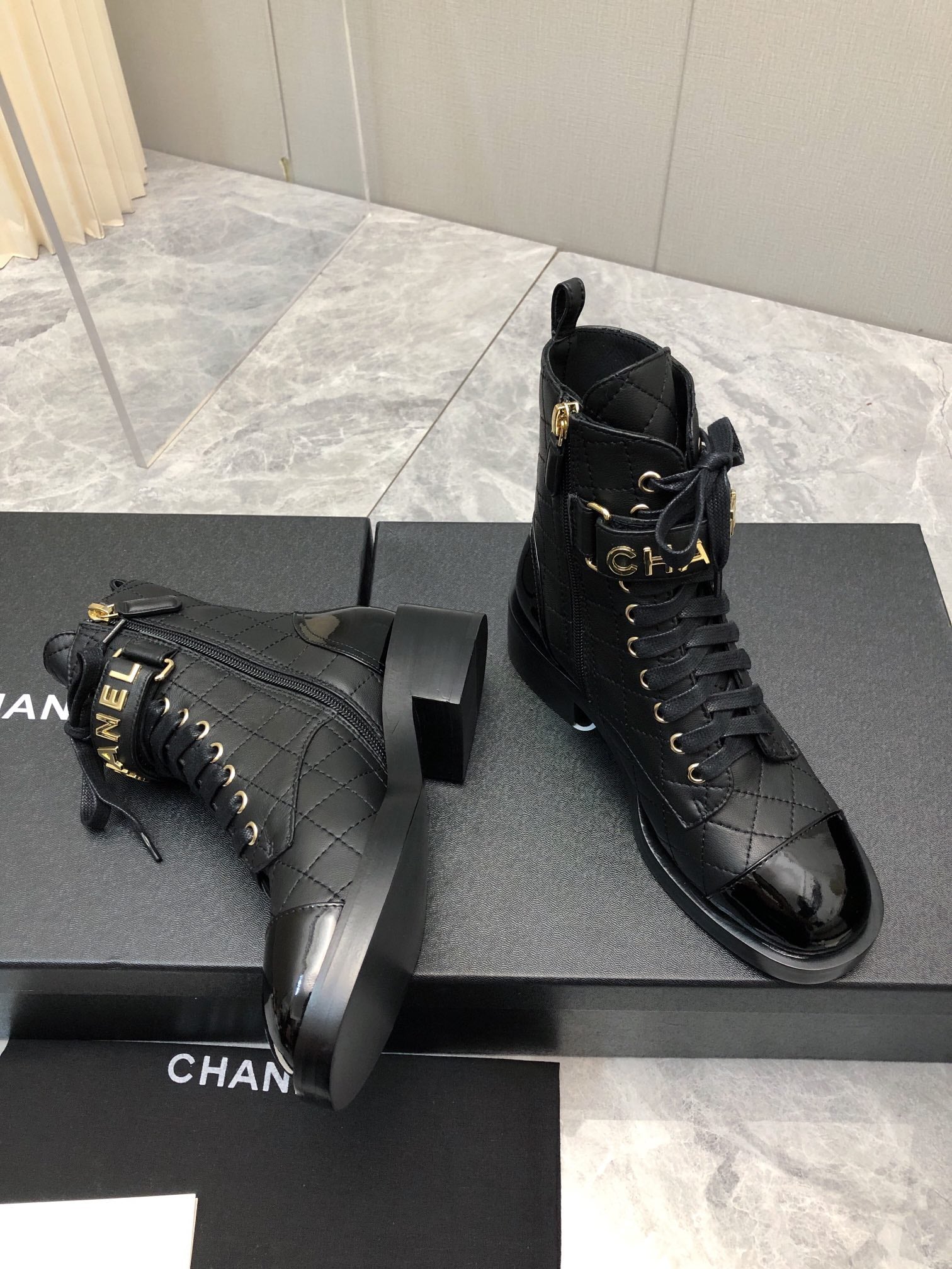 CC Short Boots 45mm In Black Quilted Lambskin And Glossy Cowhide 950042