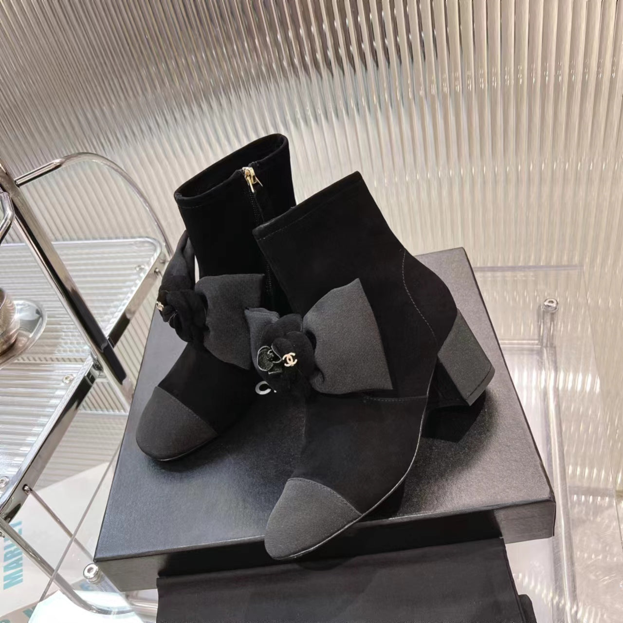 CC Short Boots 60mm Plain Black Camellia Suede