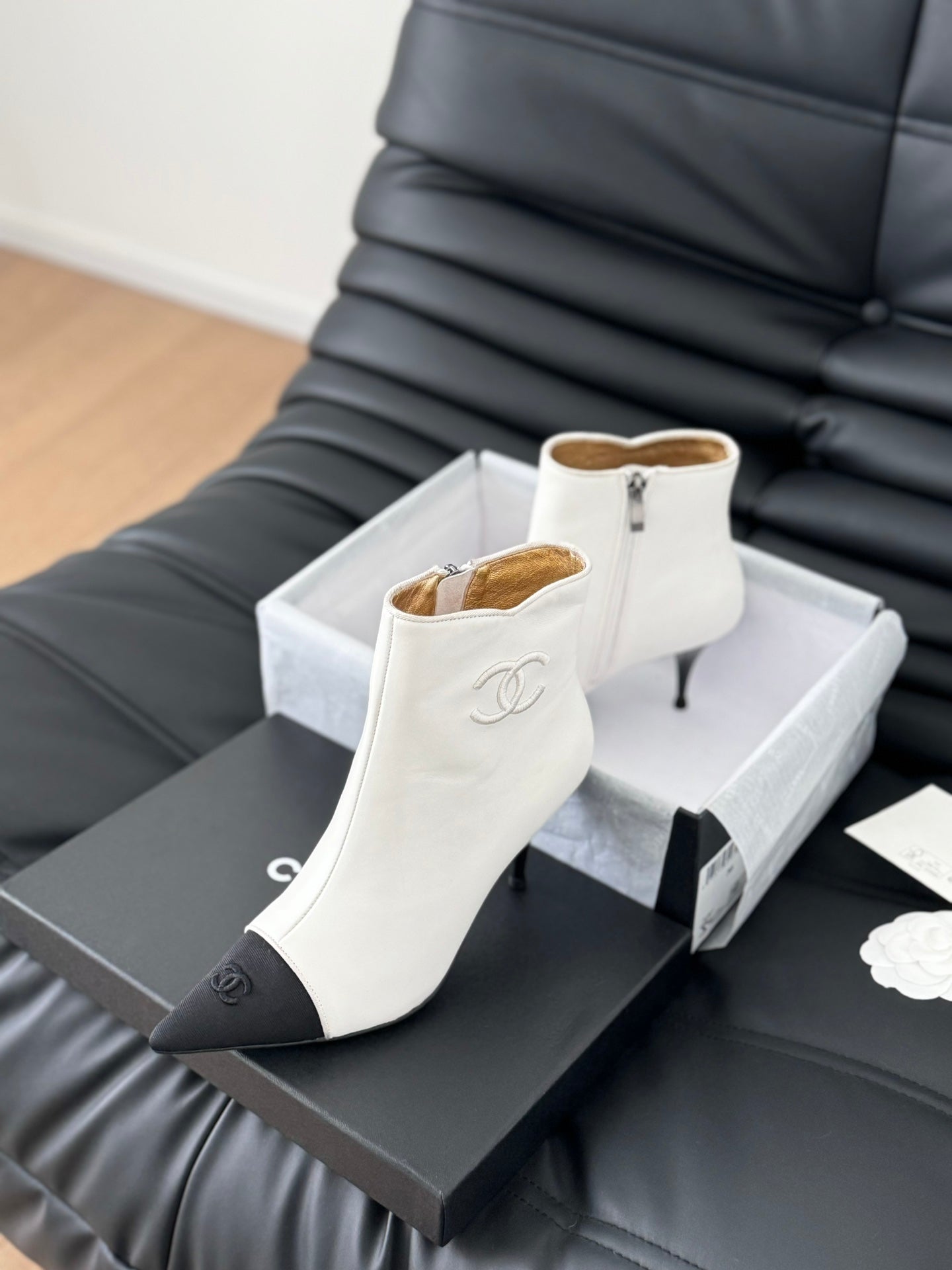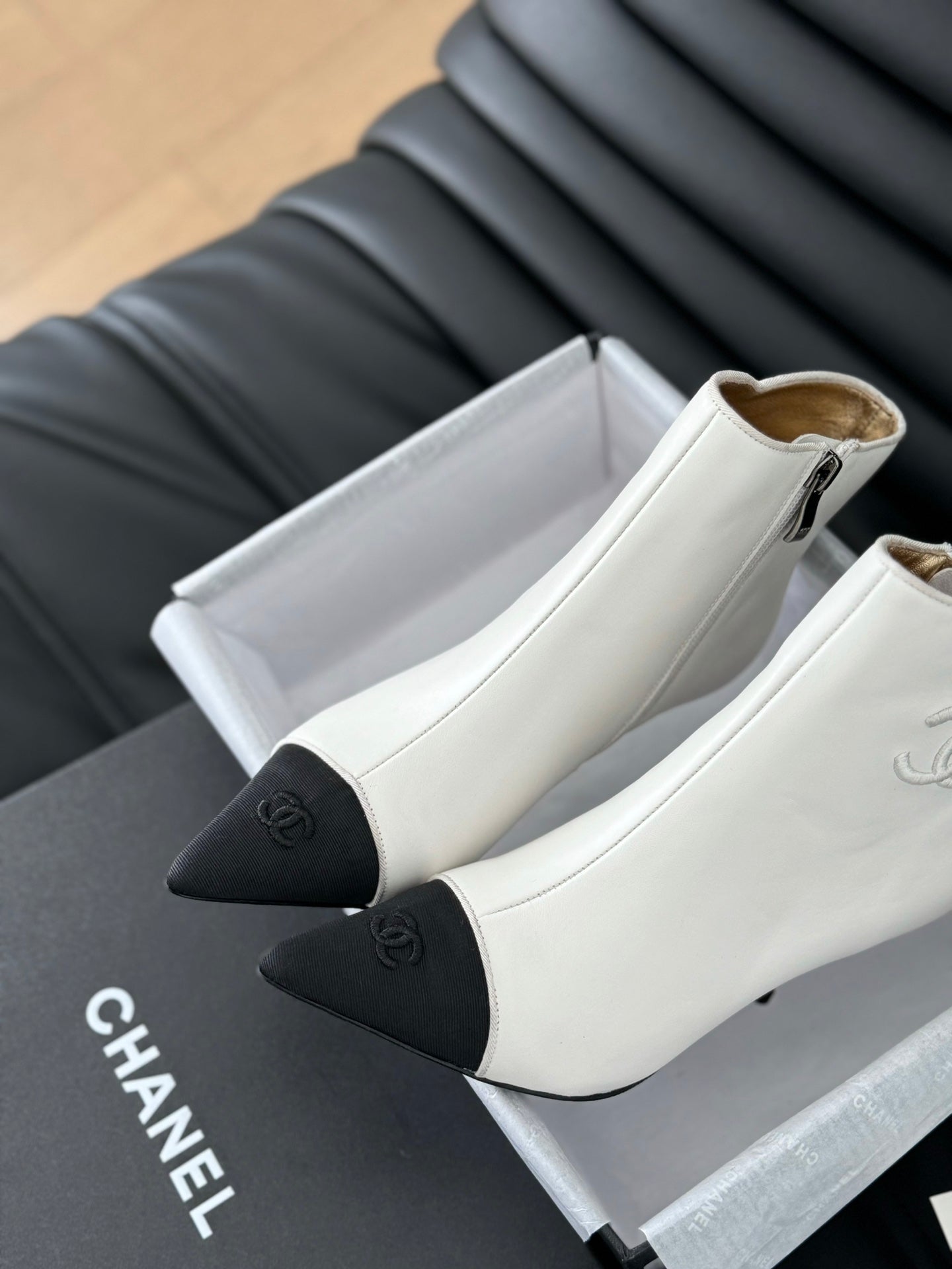 cc short boots 80 heel white calfskin