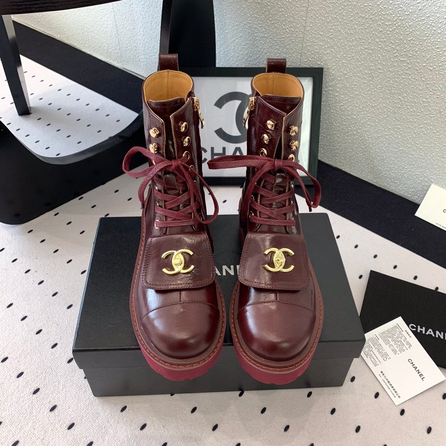 CC Short Boots In Burgundy Logo Print Lambskin 938058