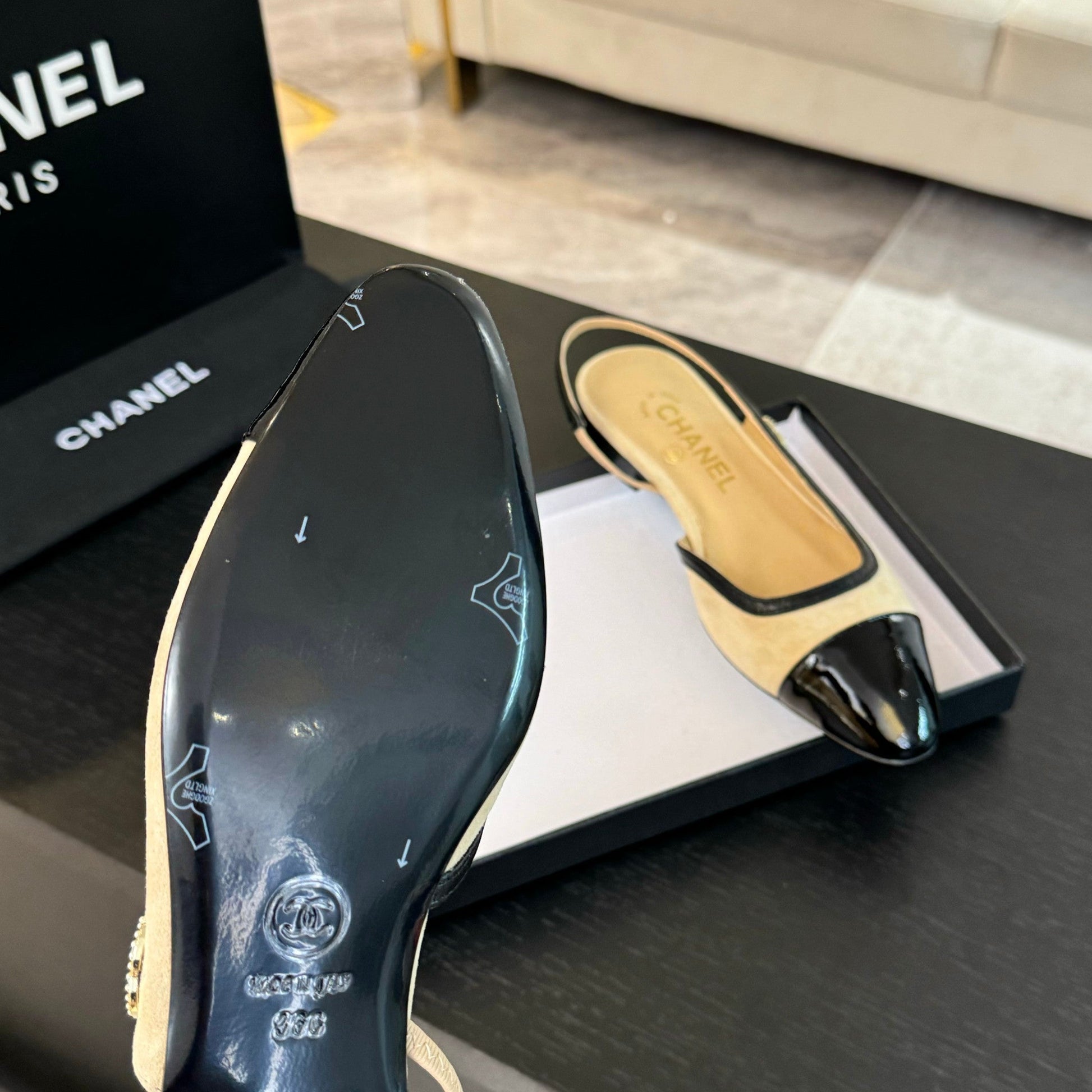 CC Slingback Black Beige Suede