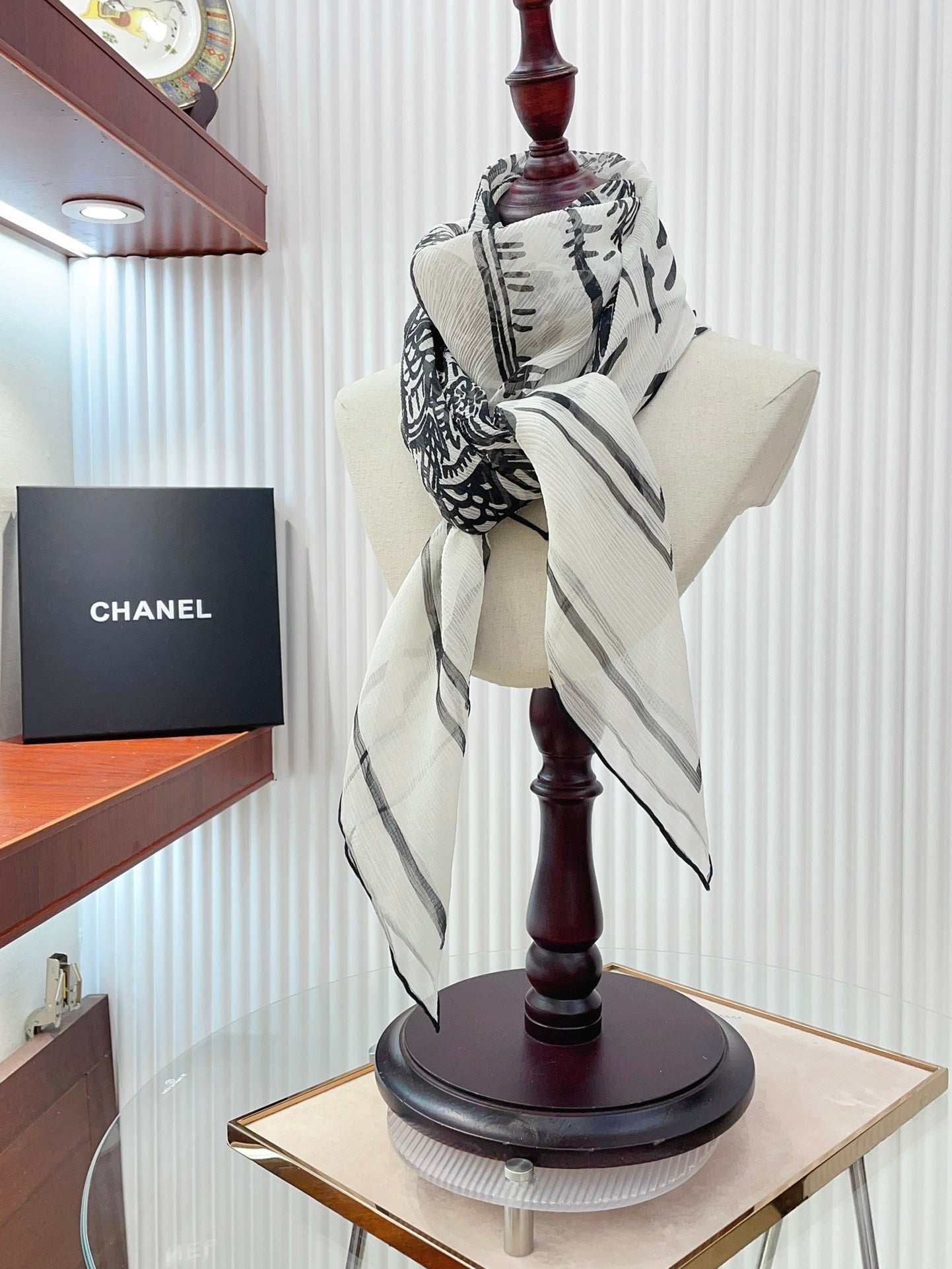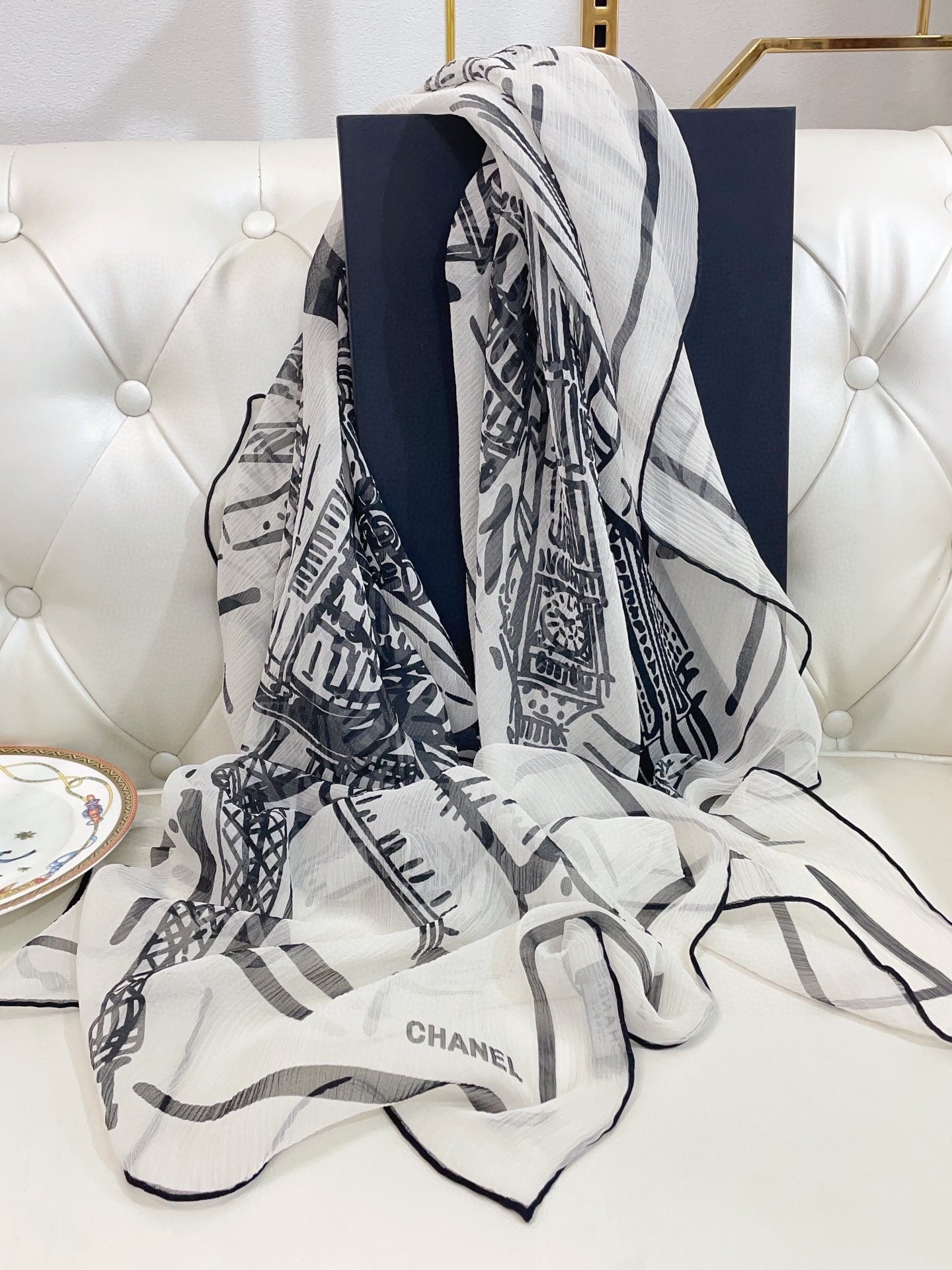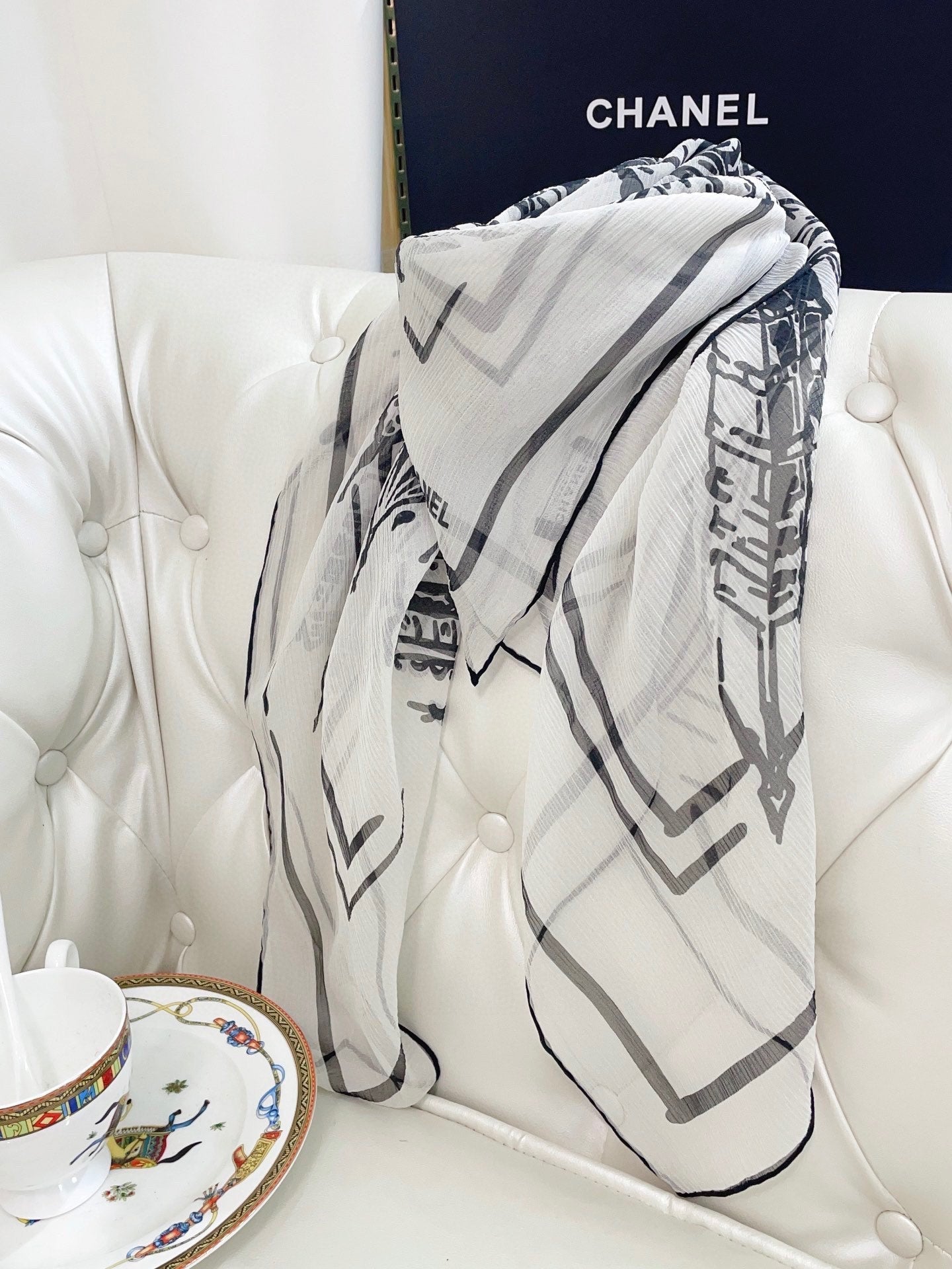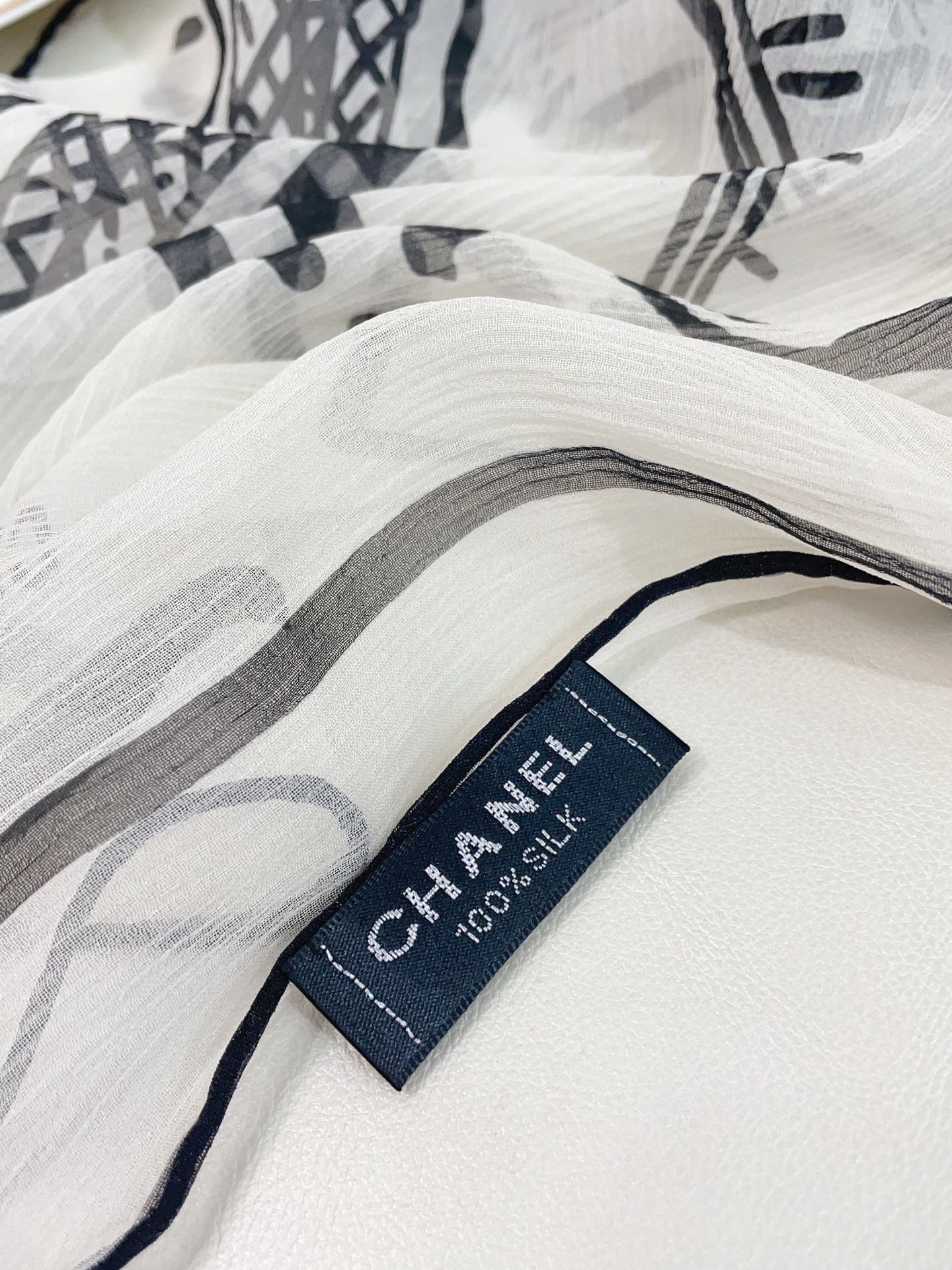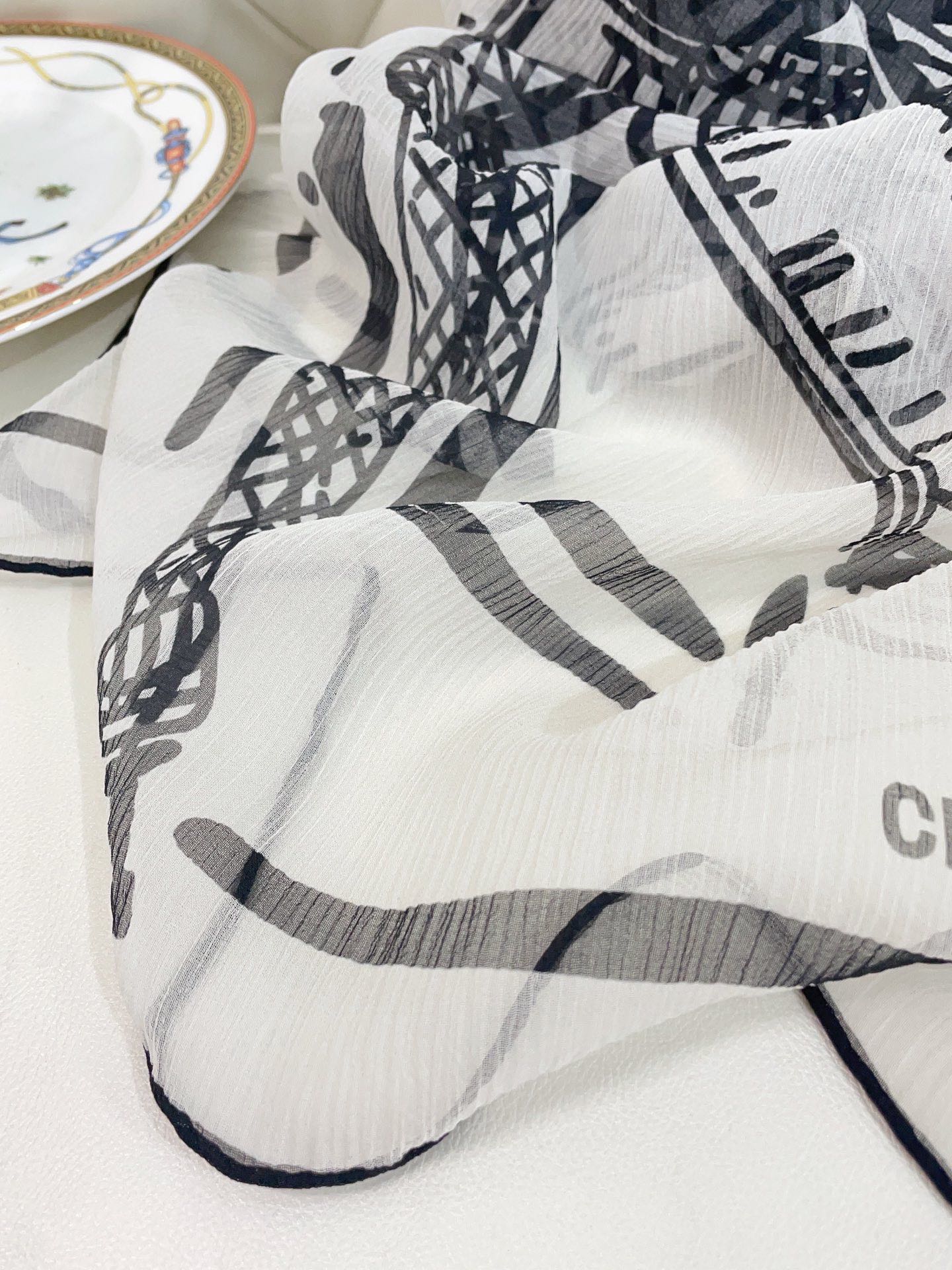CC Square Scarf 110 CM In White Black Shunyu Georgette Silk 196210