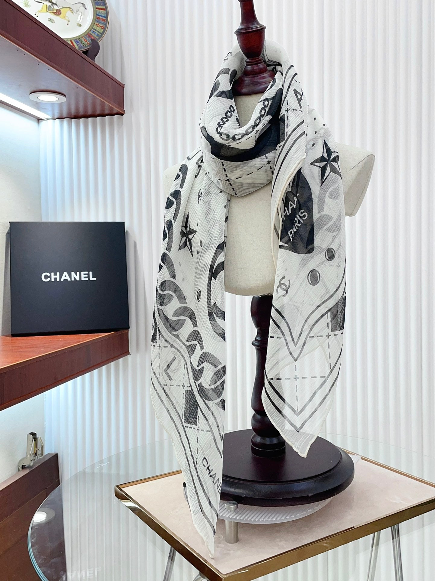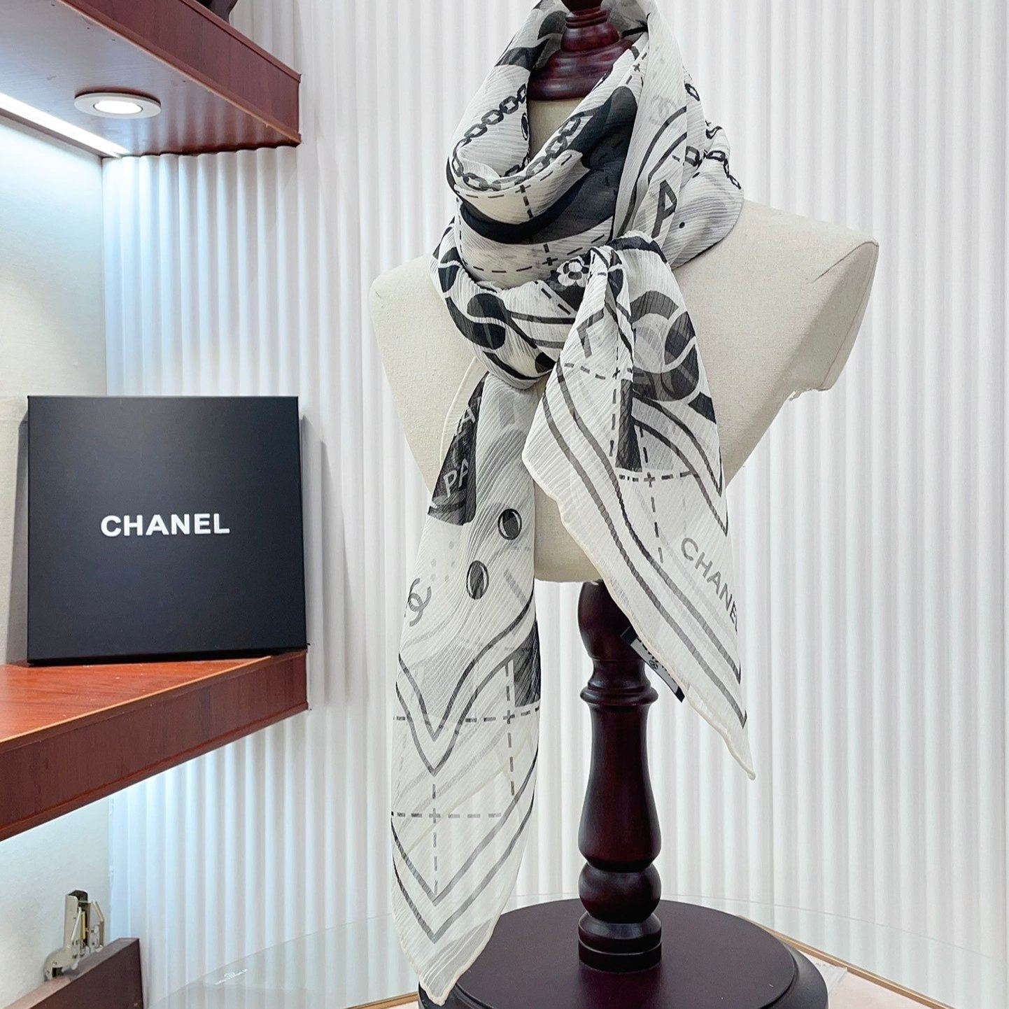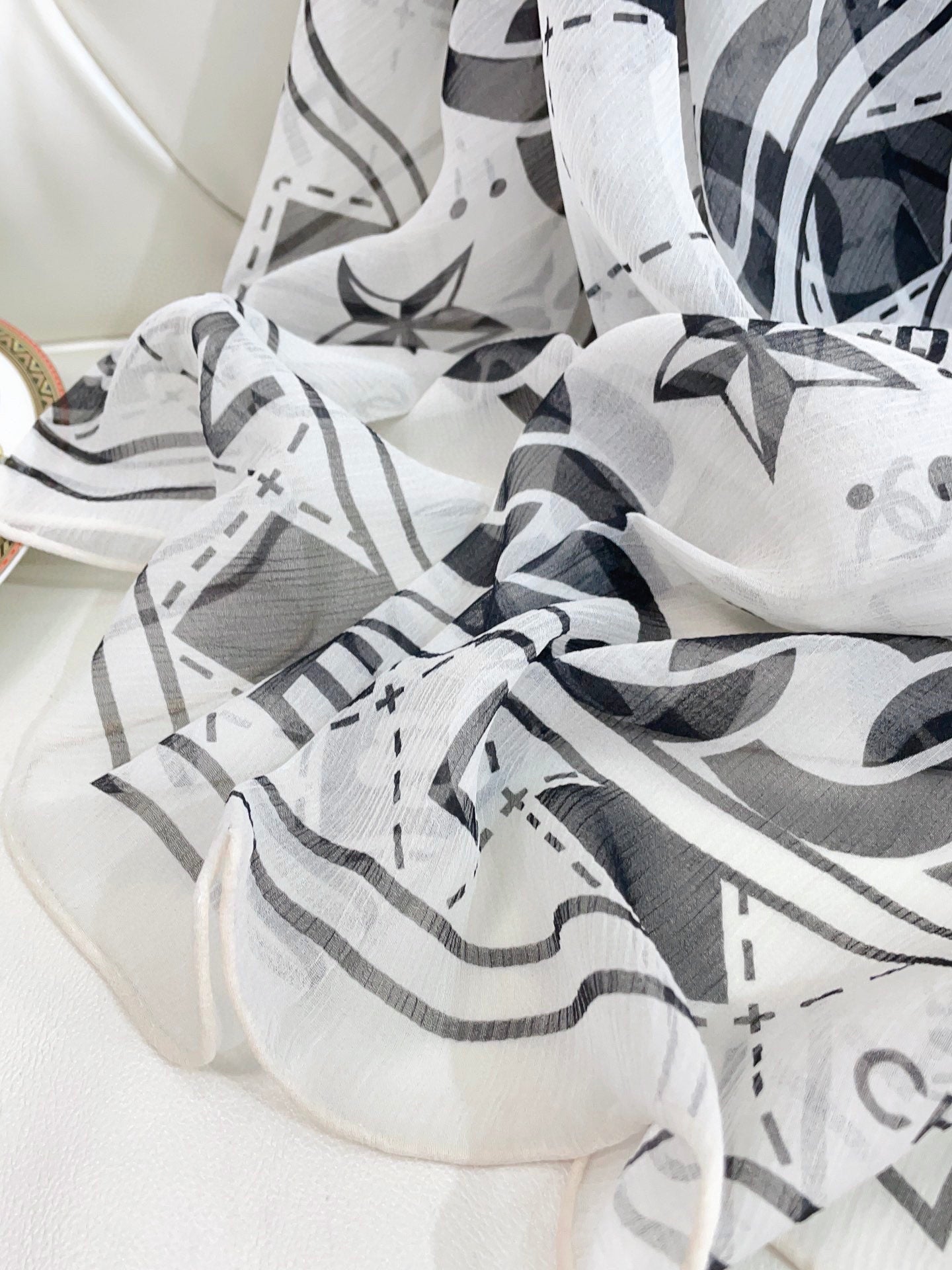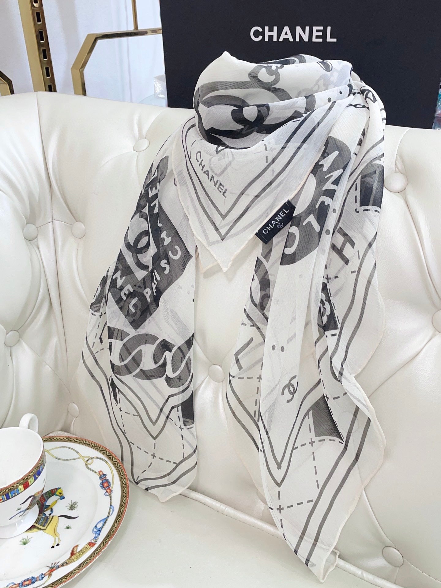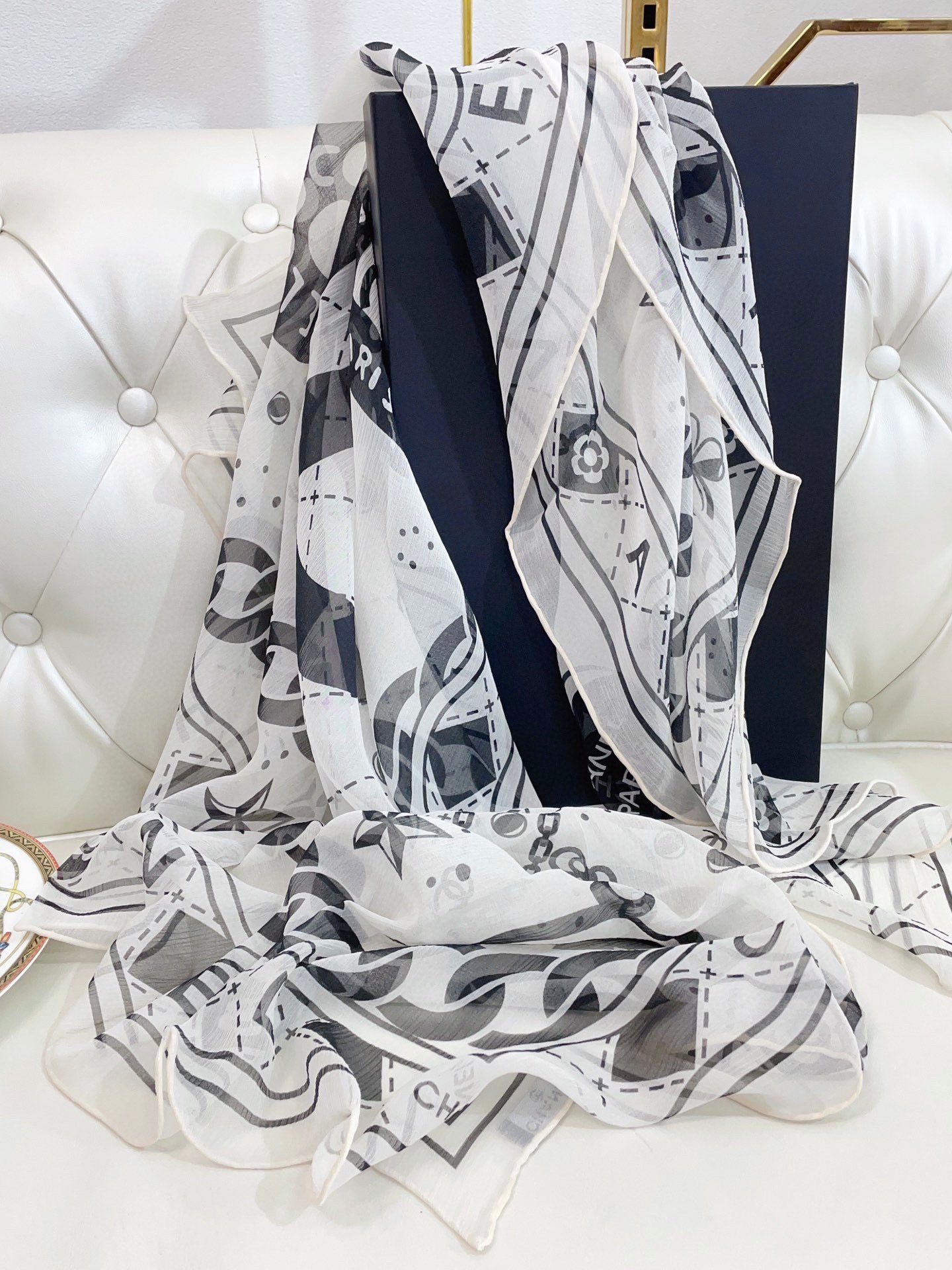 CC Square Scarf 110 CM In White Black Shunyu Qiao Silk 193840