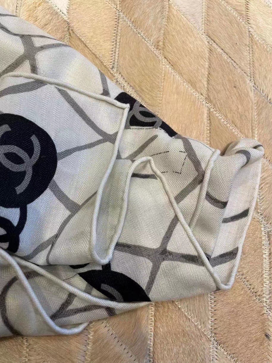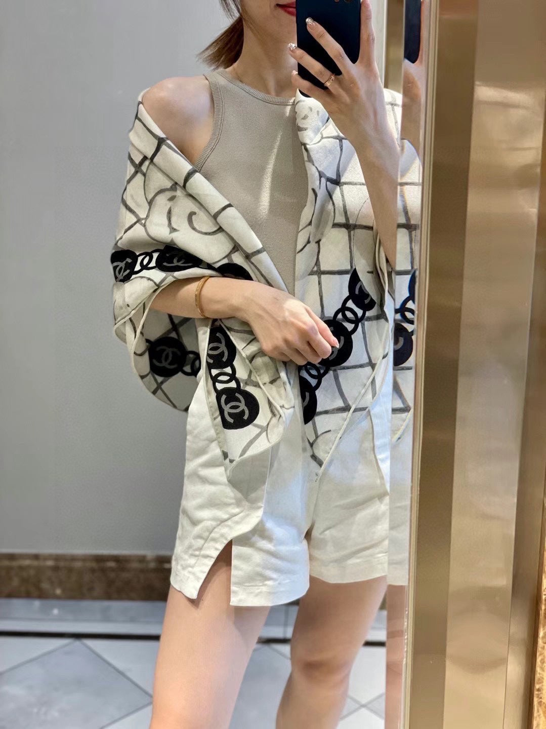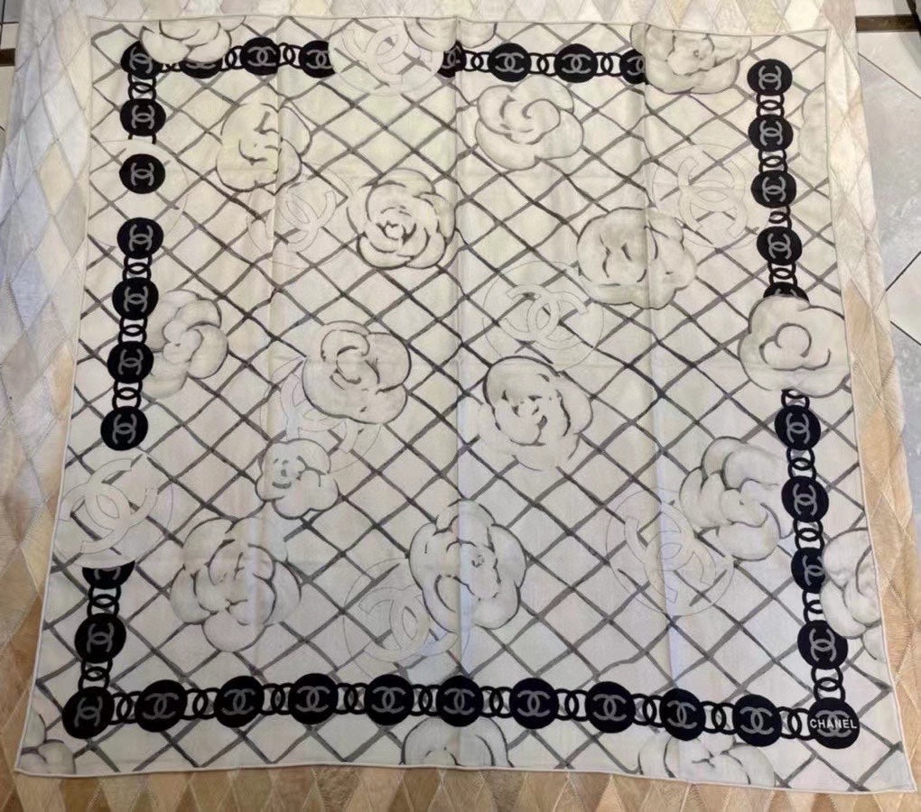 CC Square Scarf 110 CM In White Mix Black Camellia Print Cashmere Silk 296623
