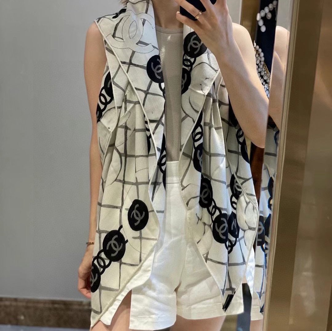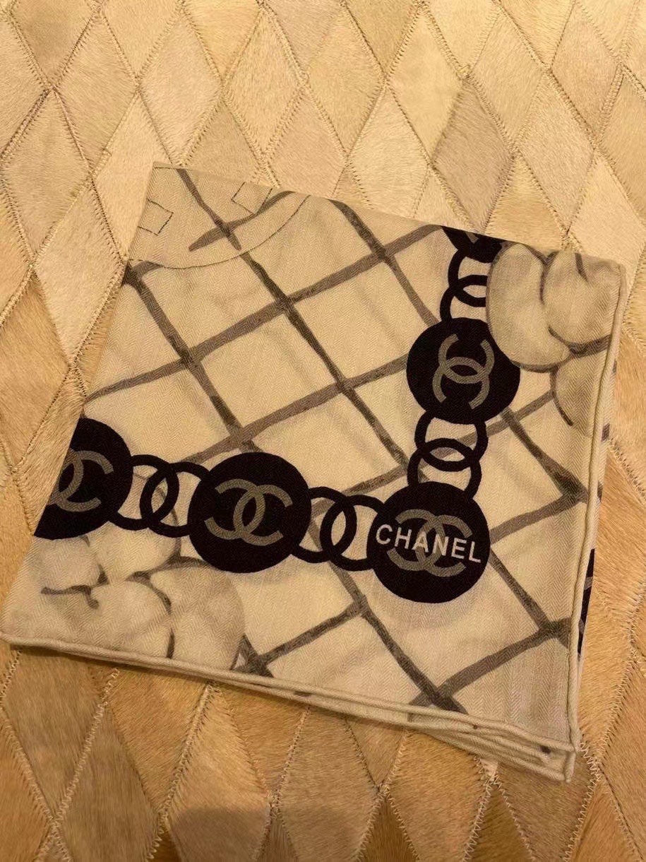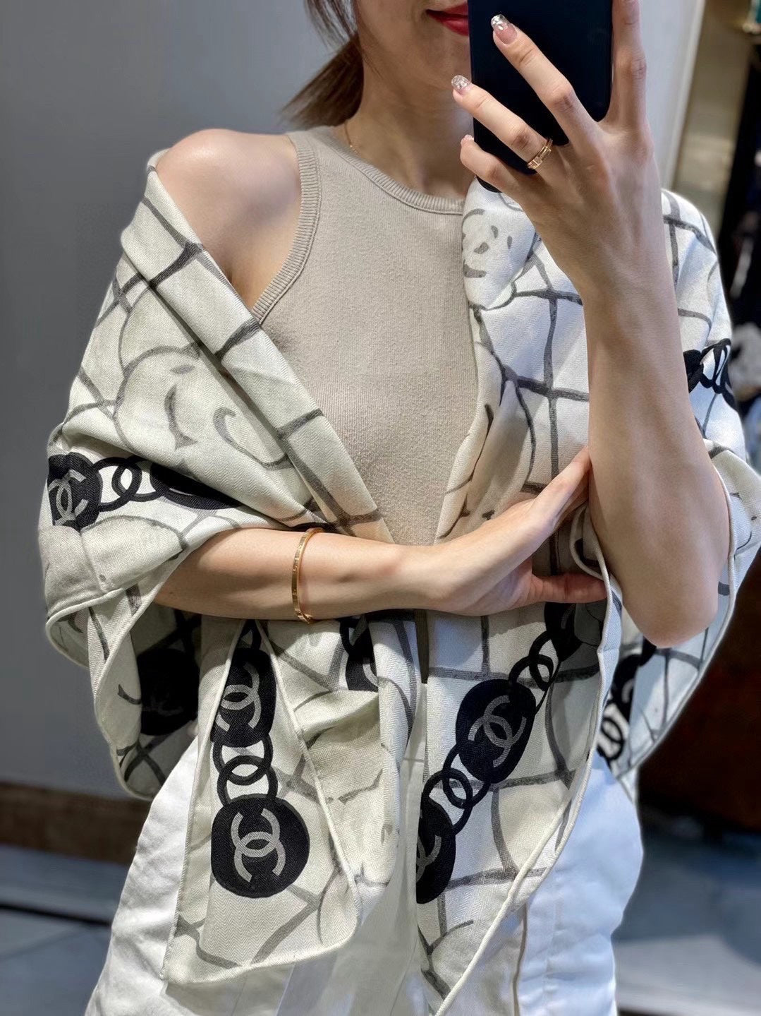 CC Square Scarf 110 CM In White Mix Black Camellia Print Cashmere Silk 296623