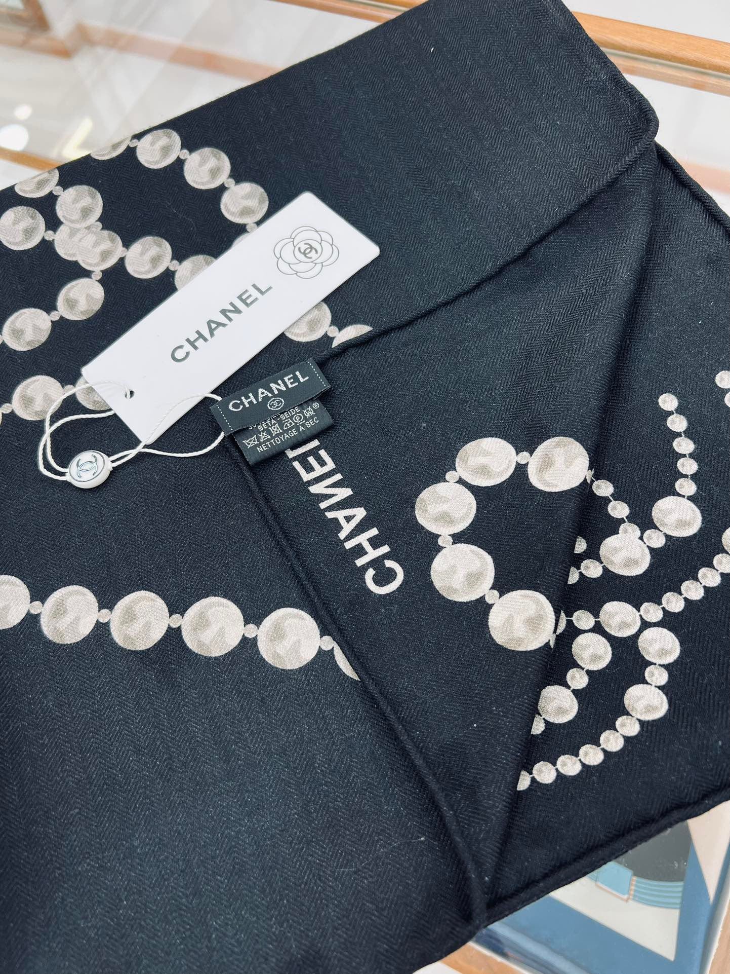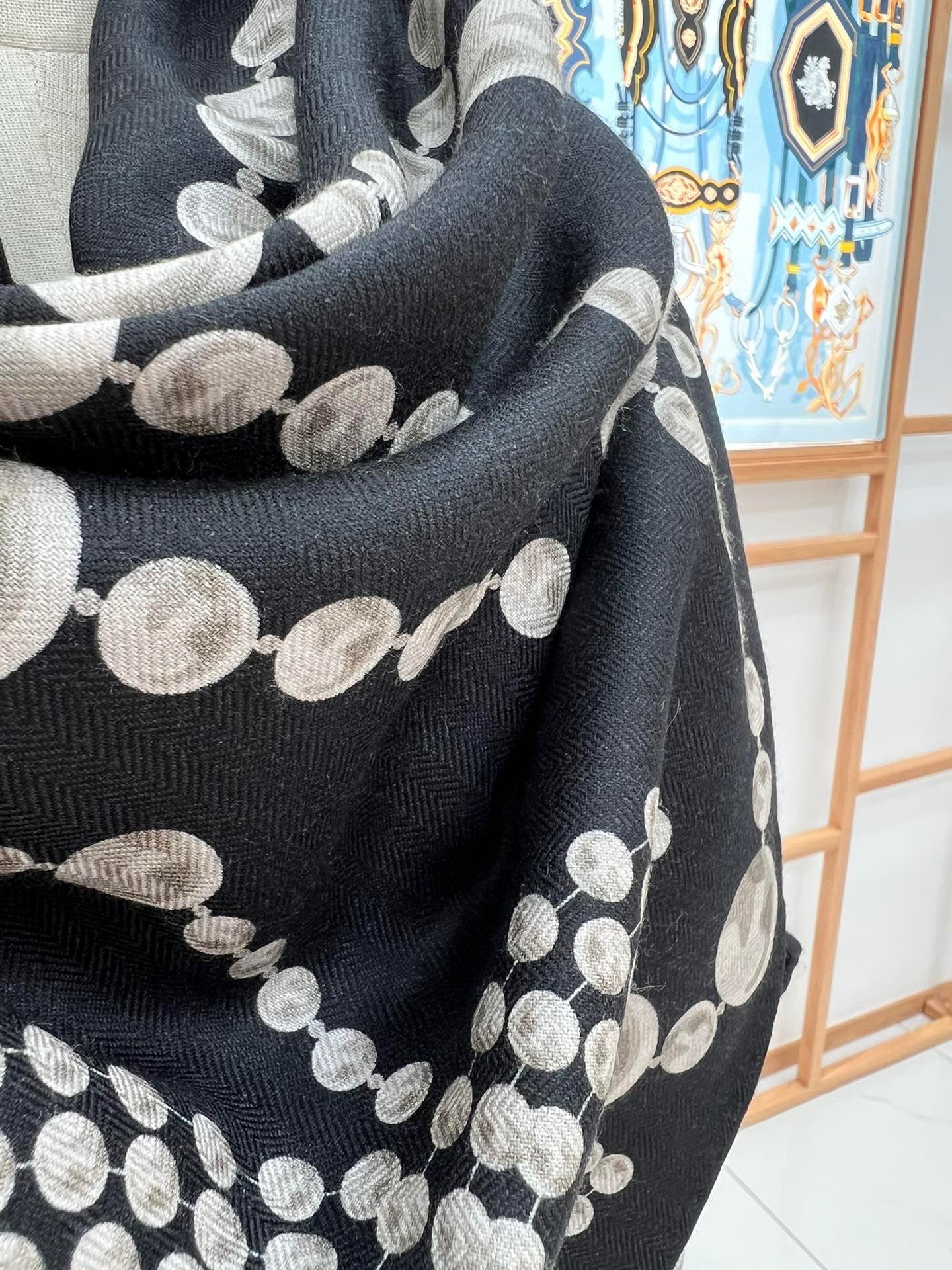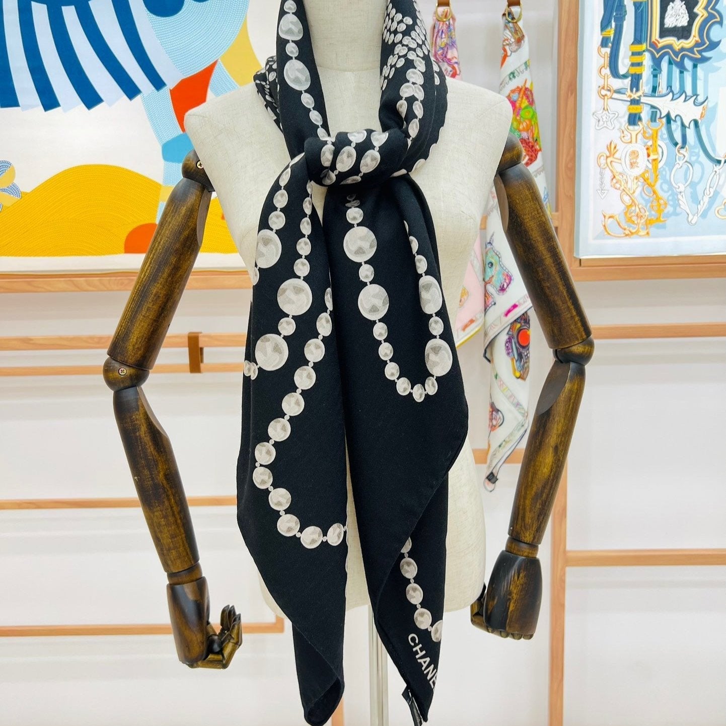 CC Square Scarf 140 CM In Black White Cashmere And Silk 264126