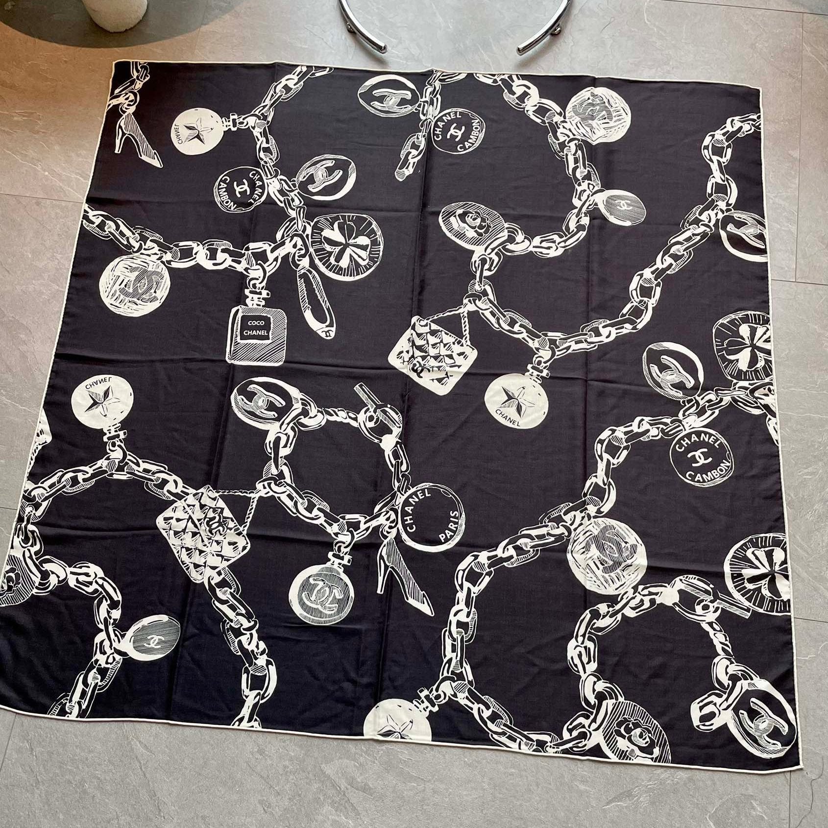 CC Square Scarf 140 CM In Black White Silk 421549