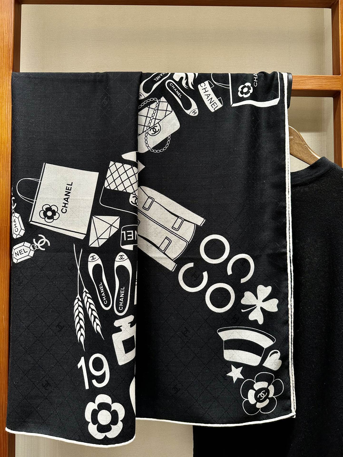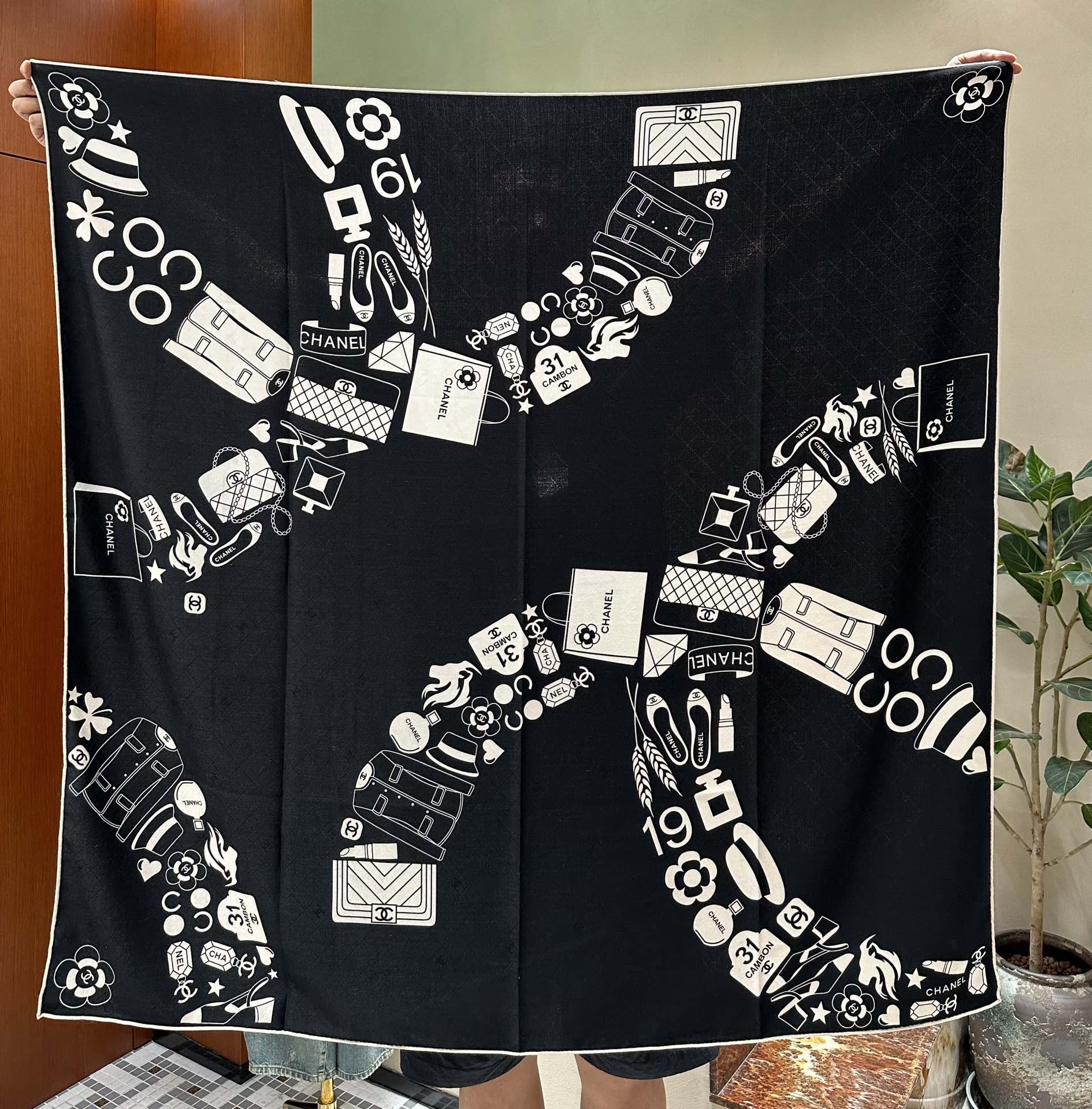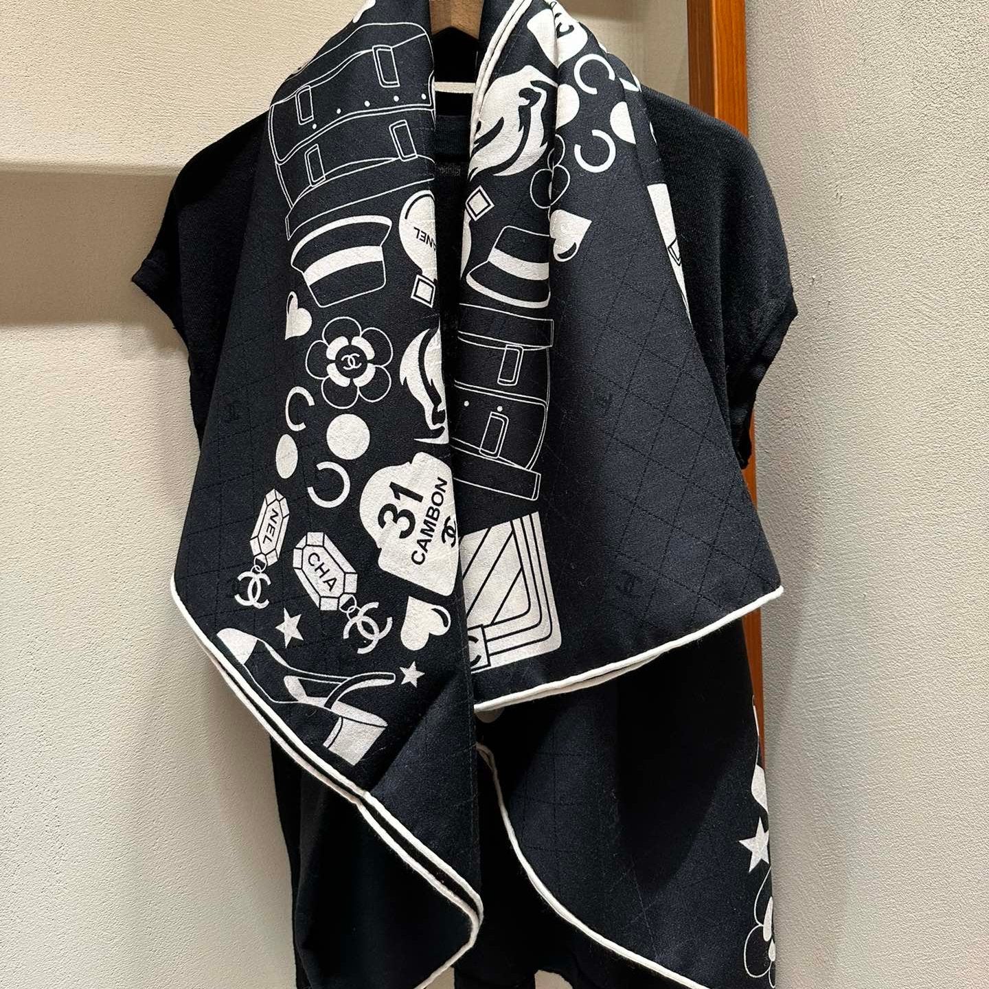 CC Square Scarf 140 CM In Black White Silk Cashmere 413675