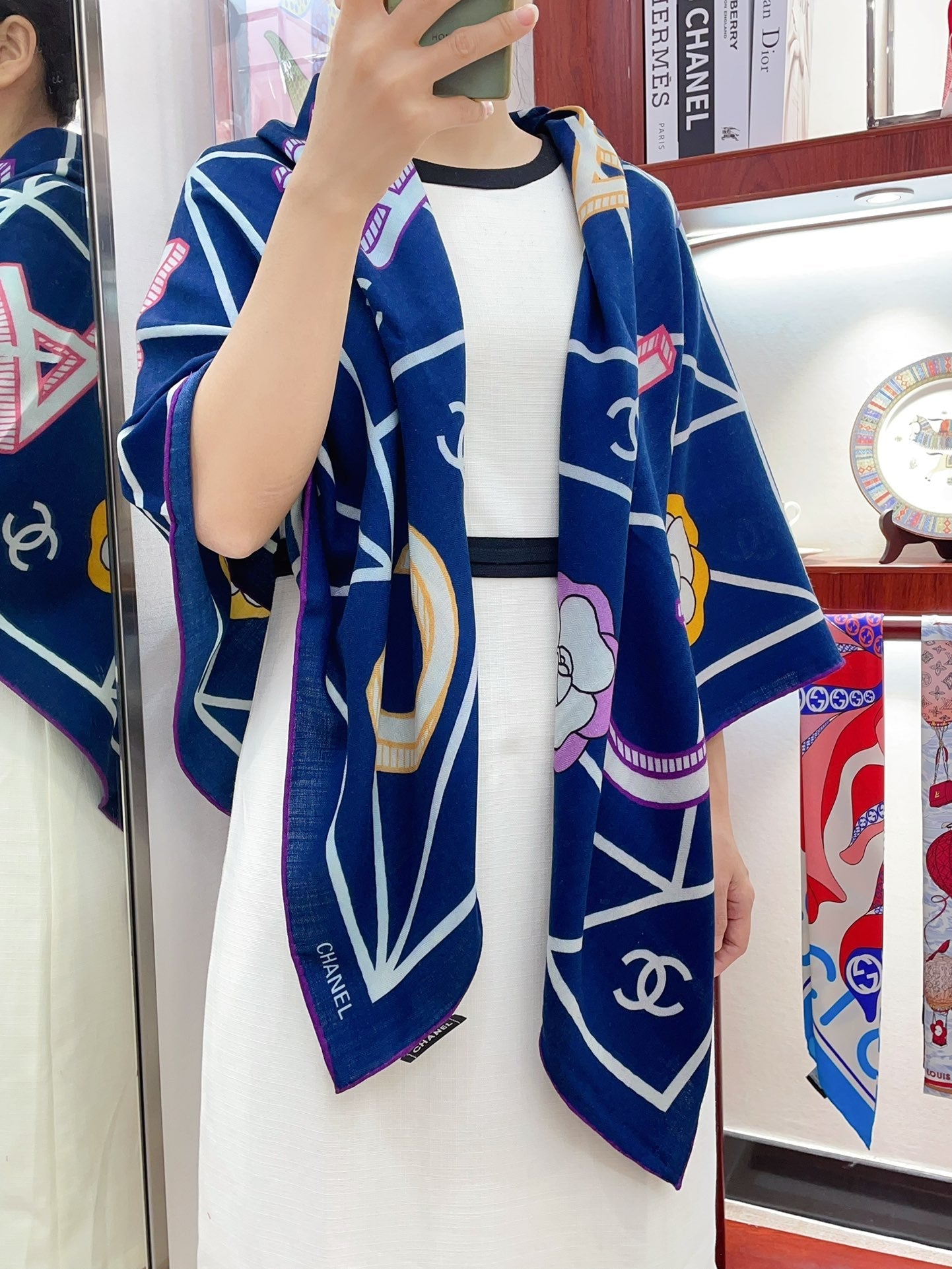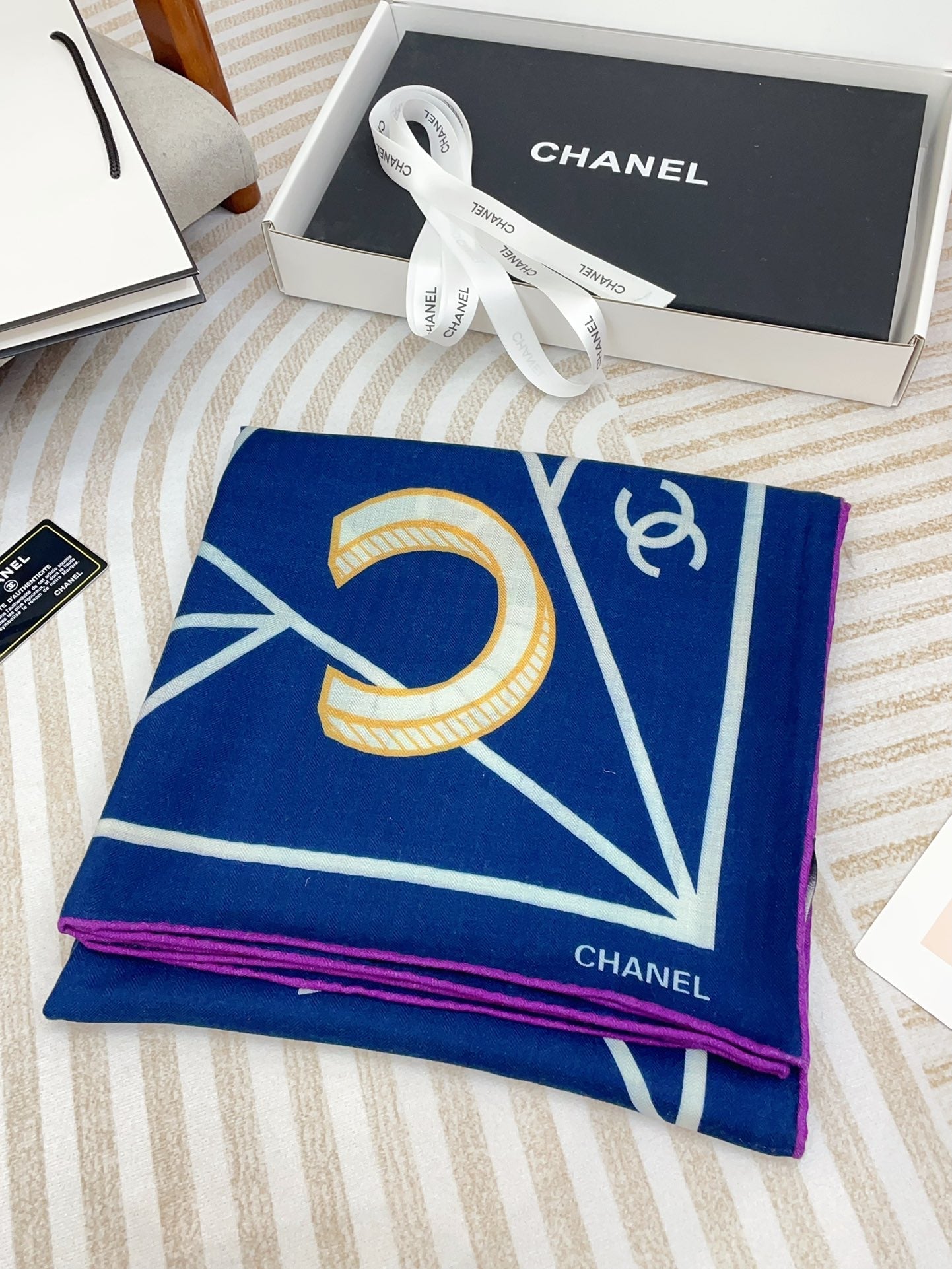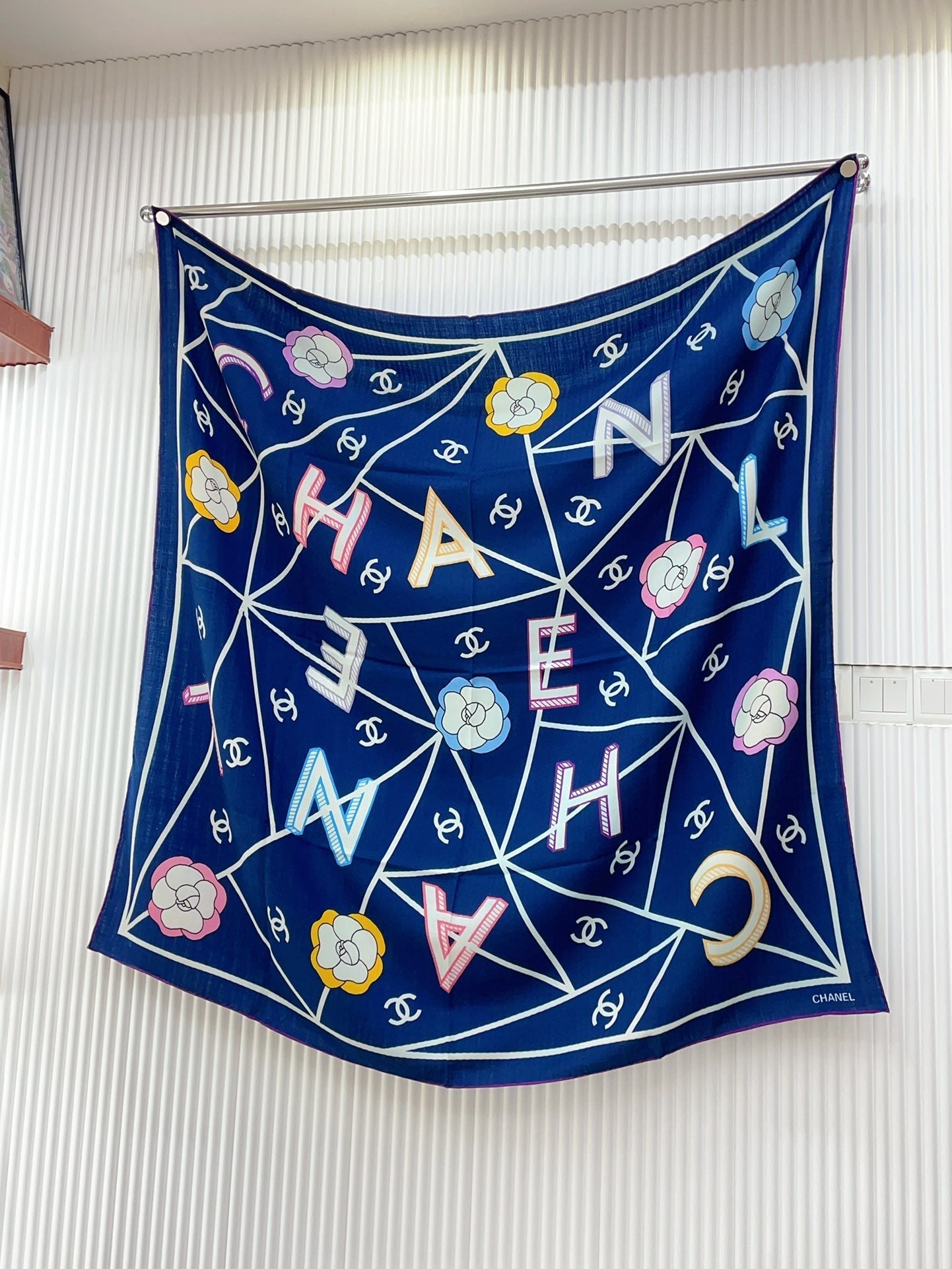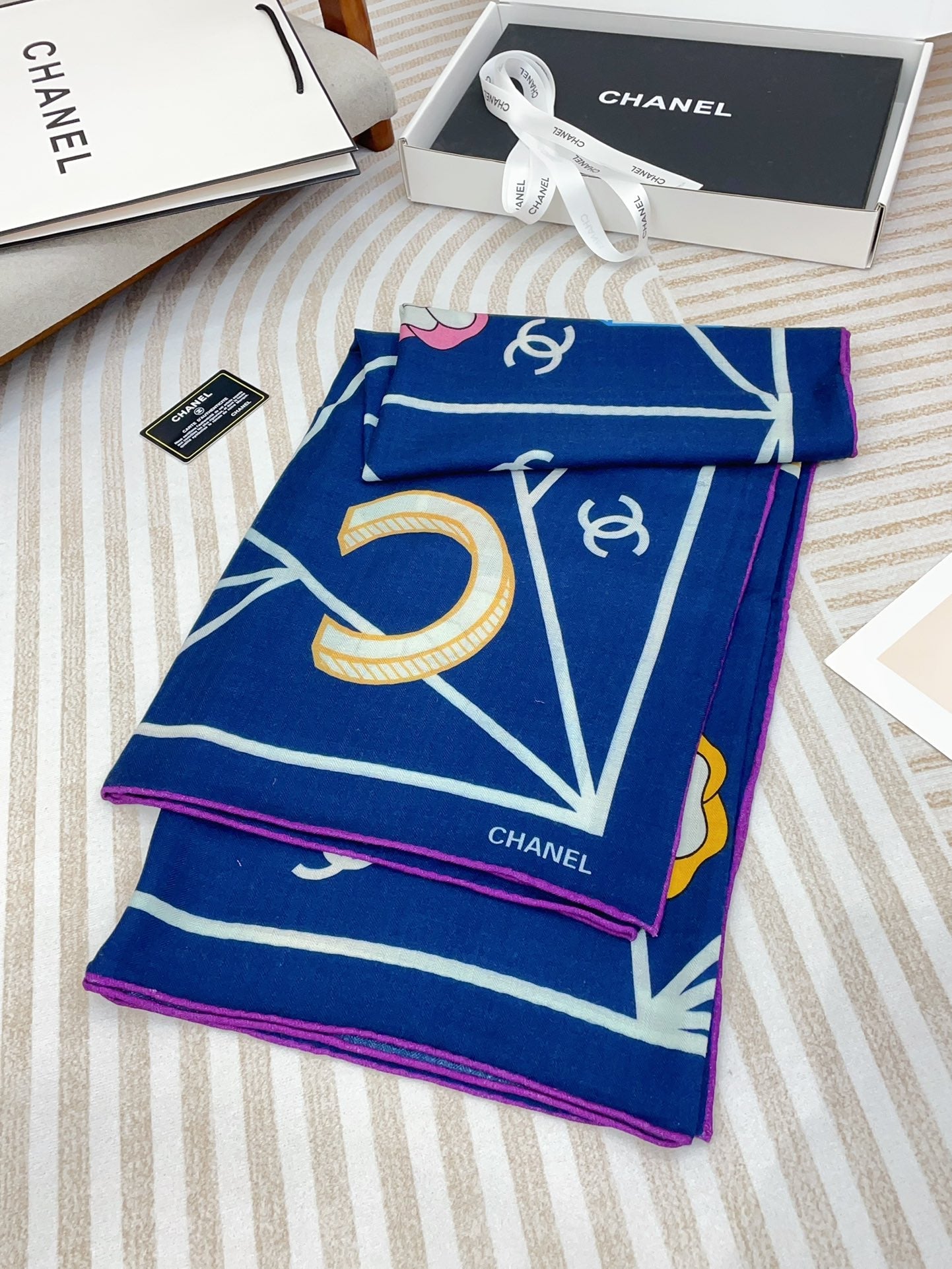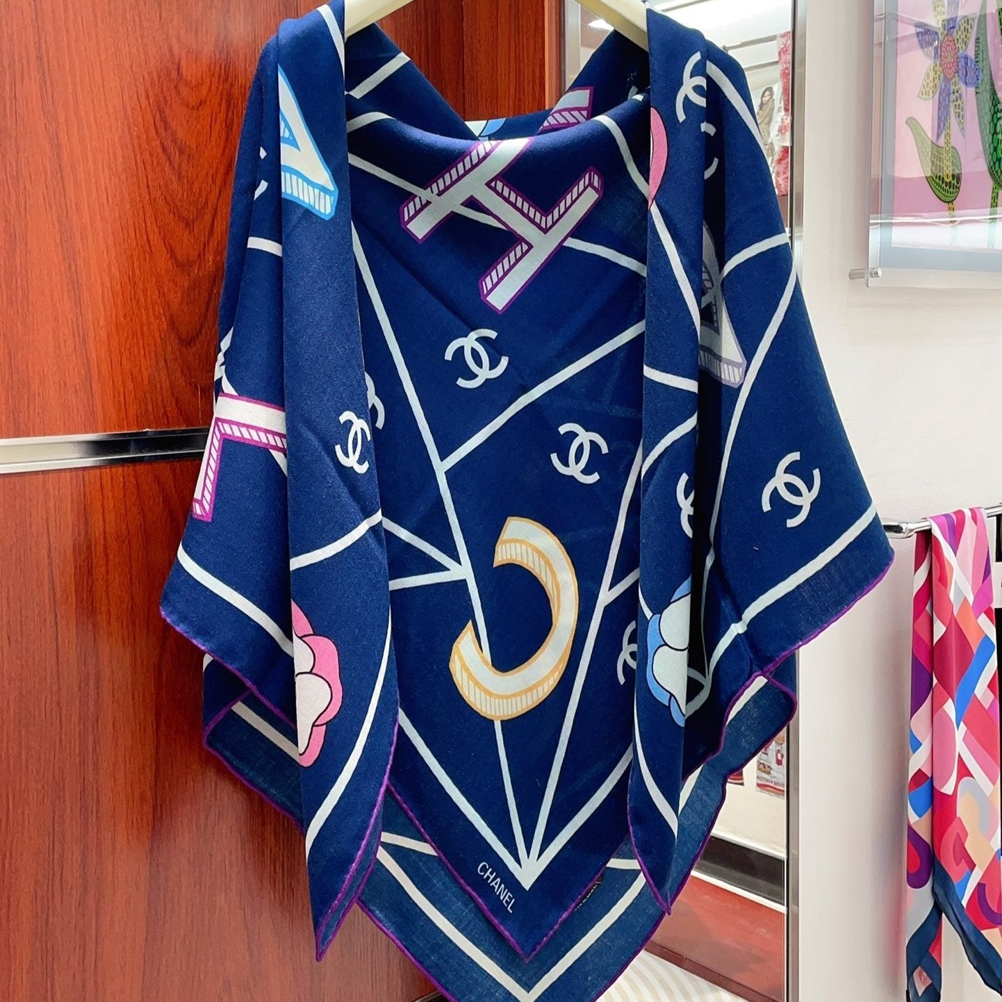 CC Square Scarf 140 CM In Dark Blue Colorful Cashmere Silk 418207