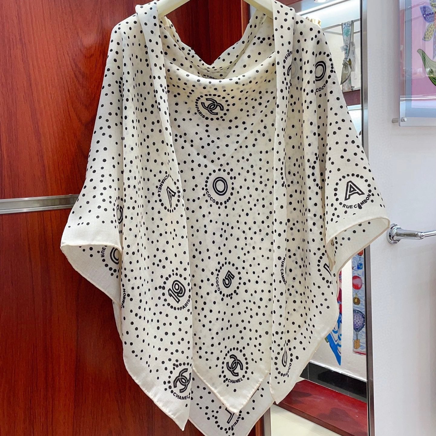 CC Square Scarf 140 CM In White Mix Black Cashmere And Silk 398279
