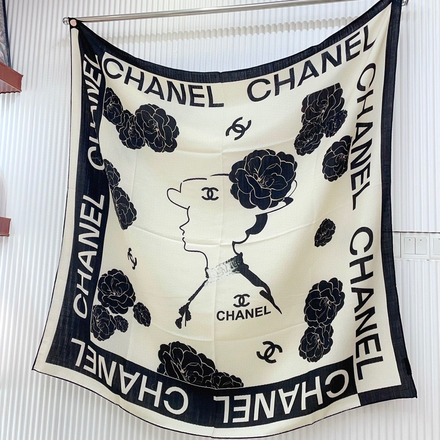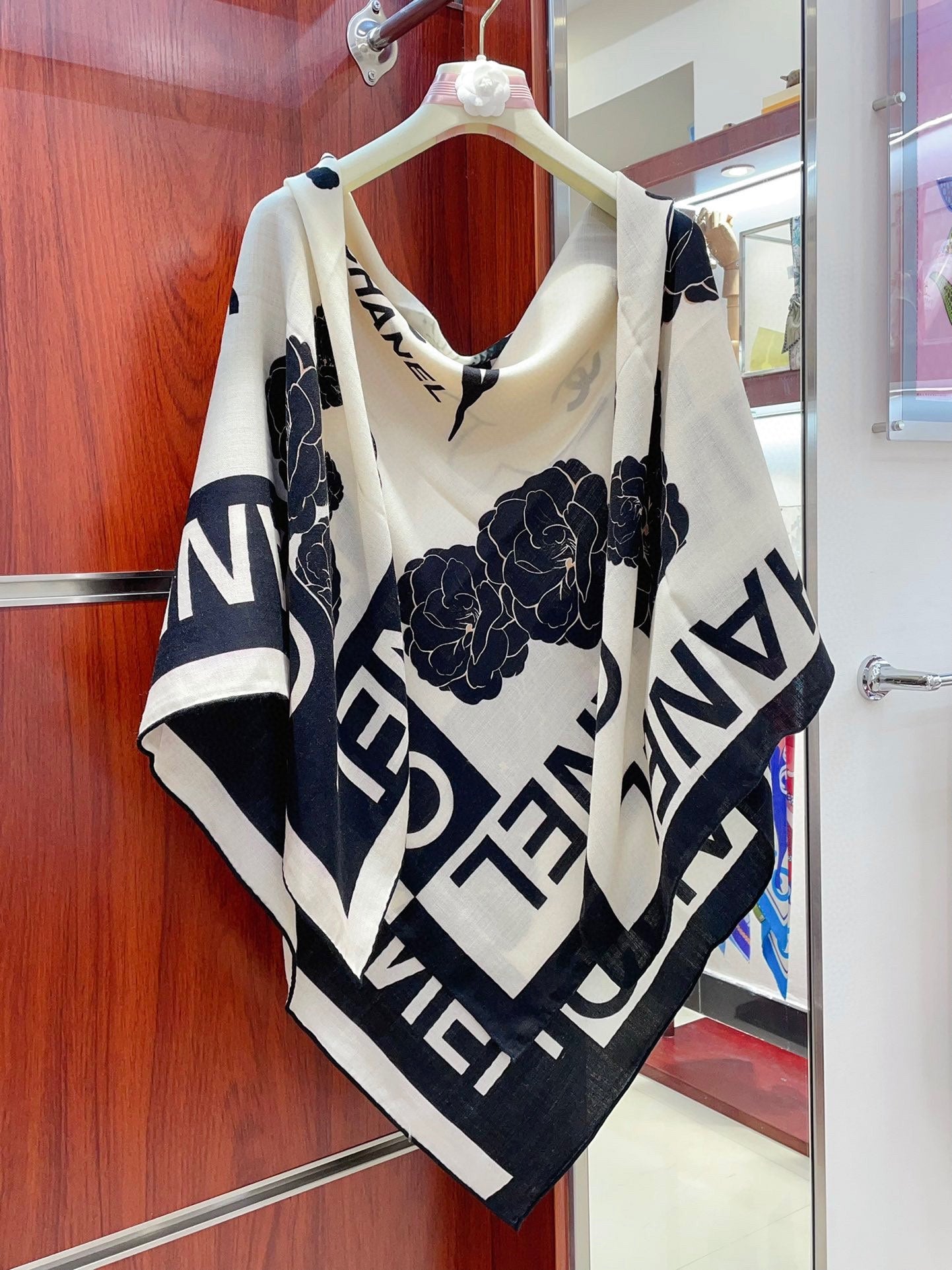 CC Square Scarf 140 CM In White Mix Black Cashmere Silk 389993