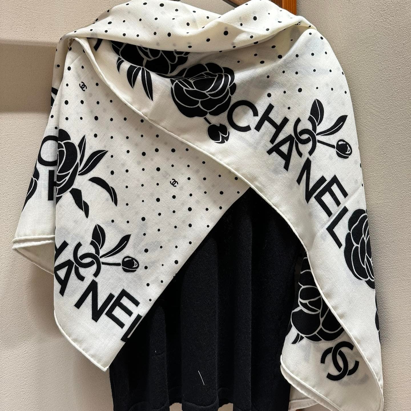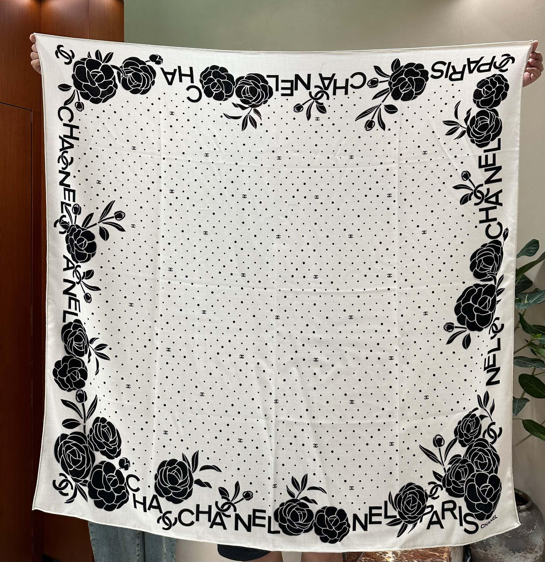 CC Square Scarf 140 CM In White Mix Black Silk 396374