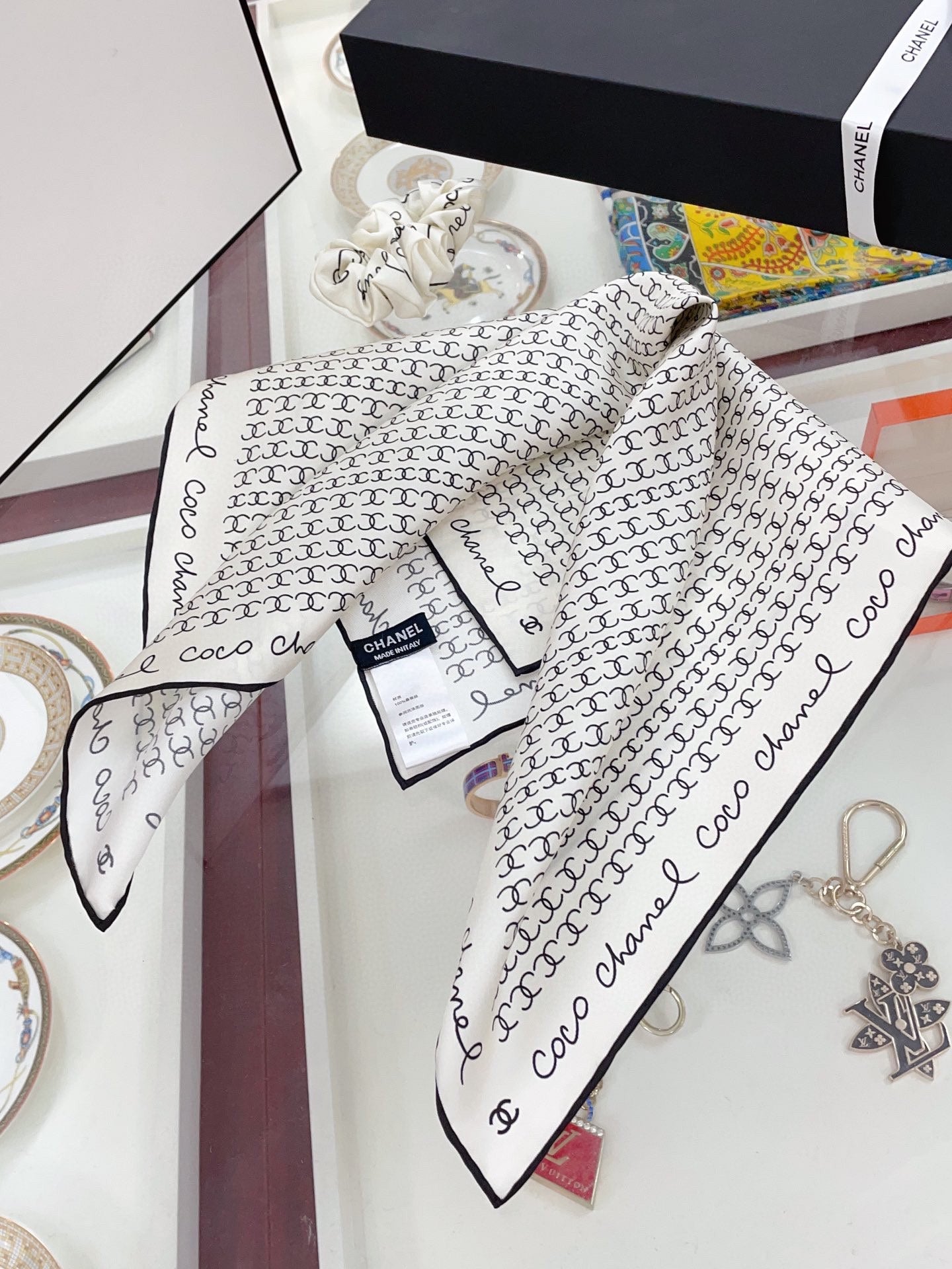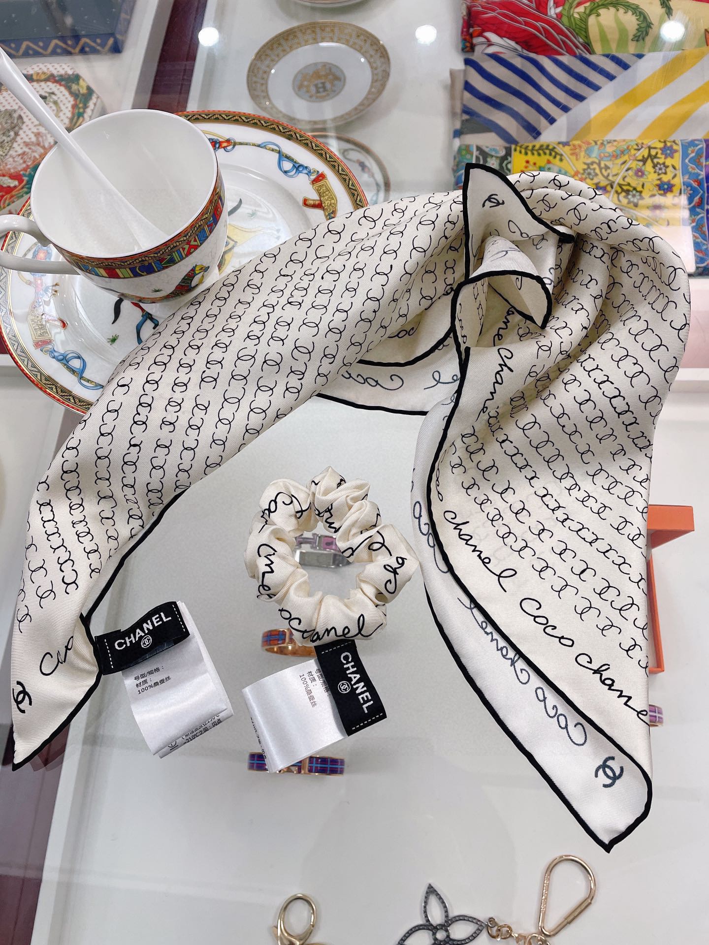CC Square Scarf 50 CM In White Silk Twill 196205