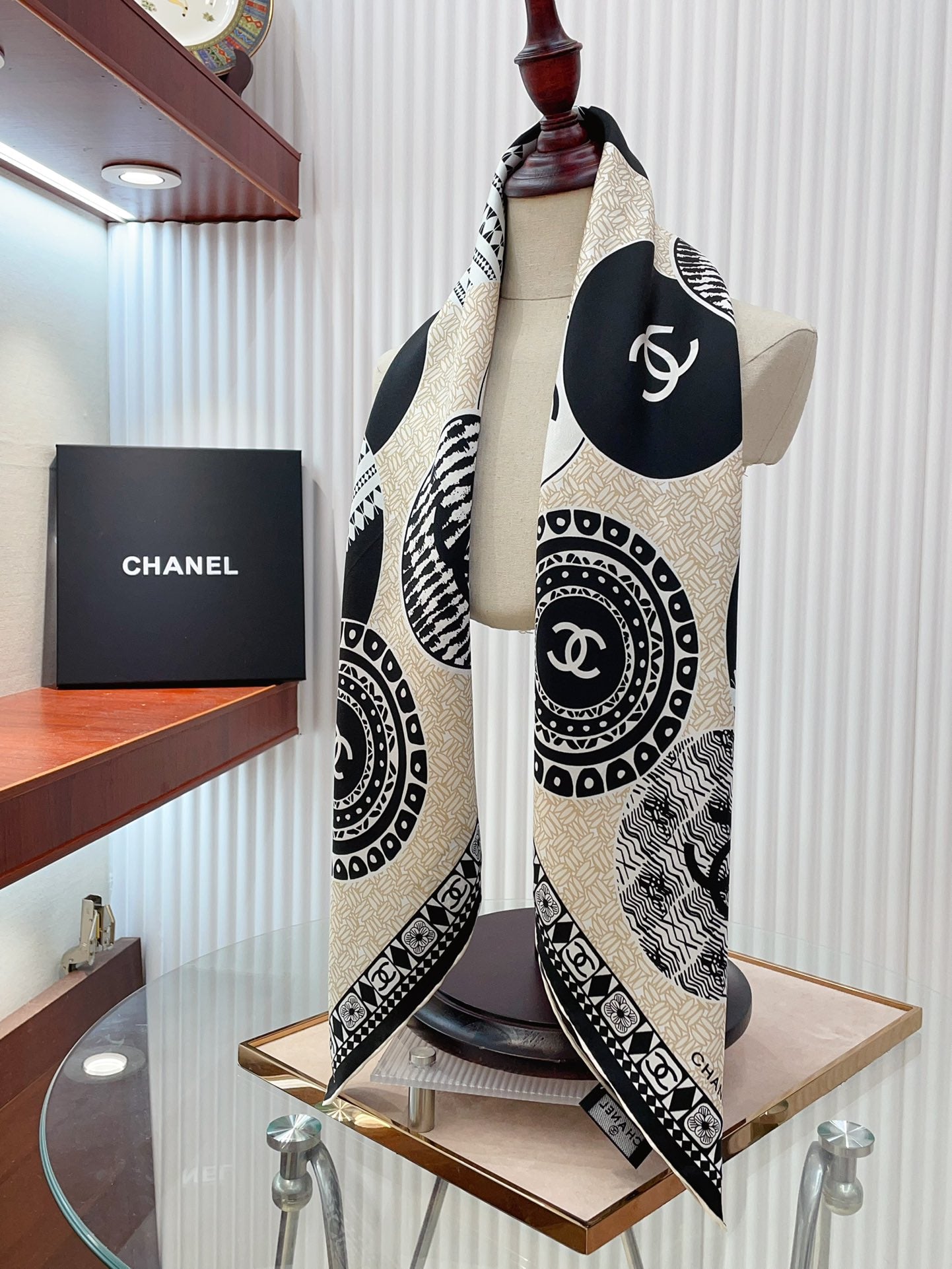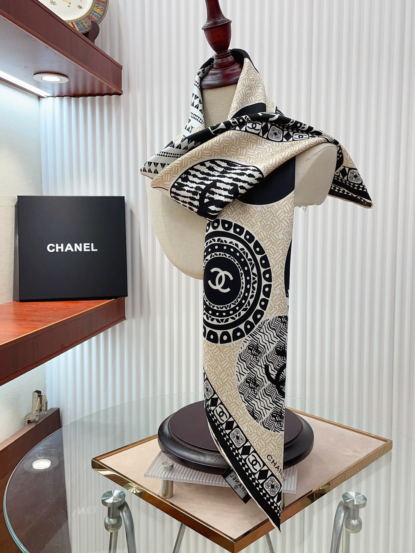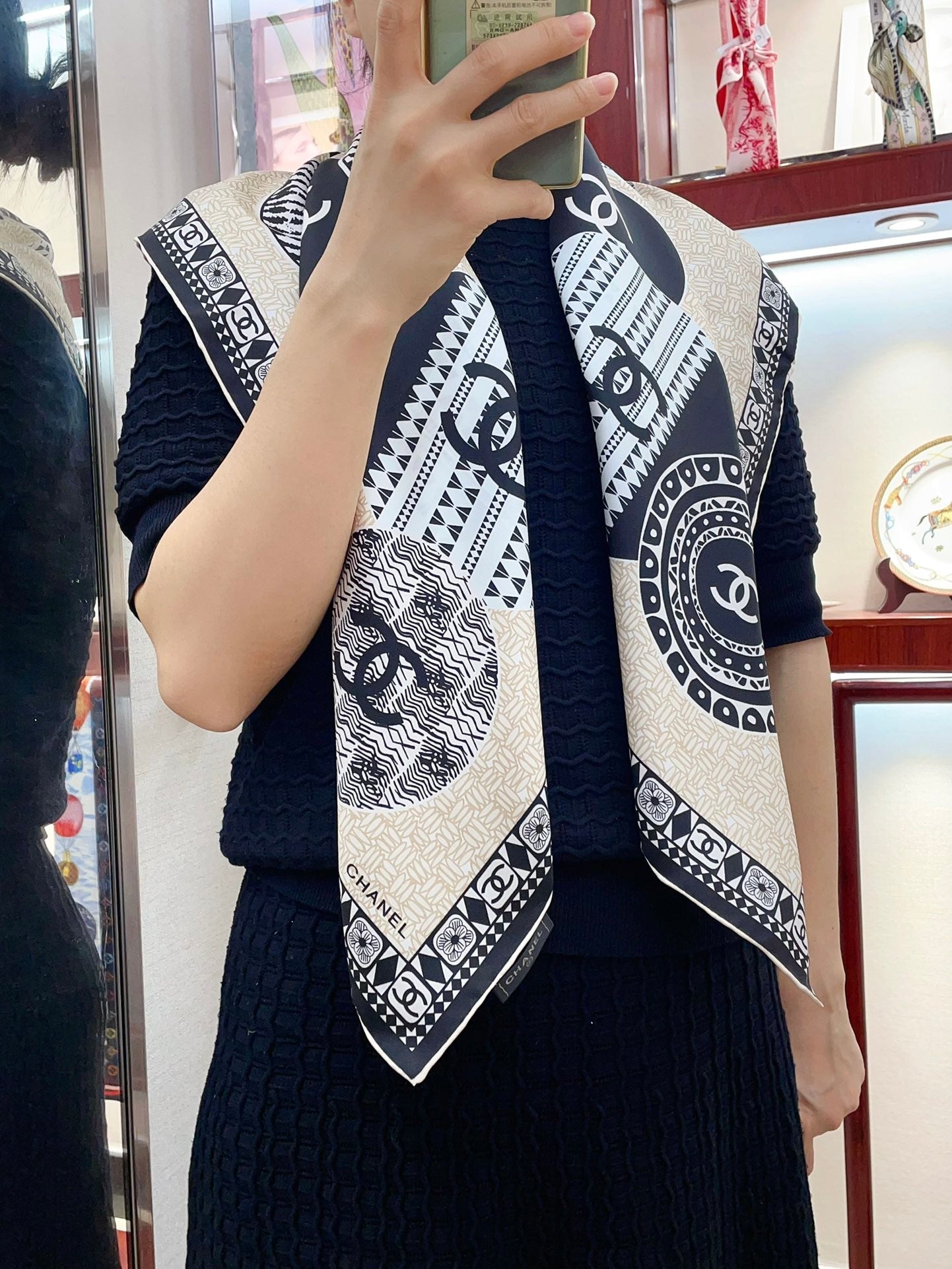 CC Square Scarf 90 CM In Beige Multi-Pattern Silk Twill 231847