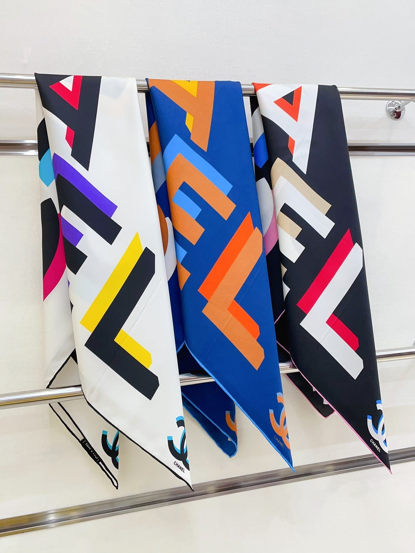 CC Square Scarf 90 CM In Black Colorful Silk Twill 206468